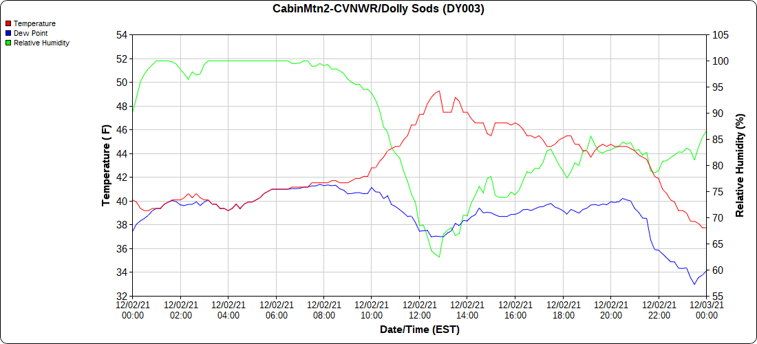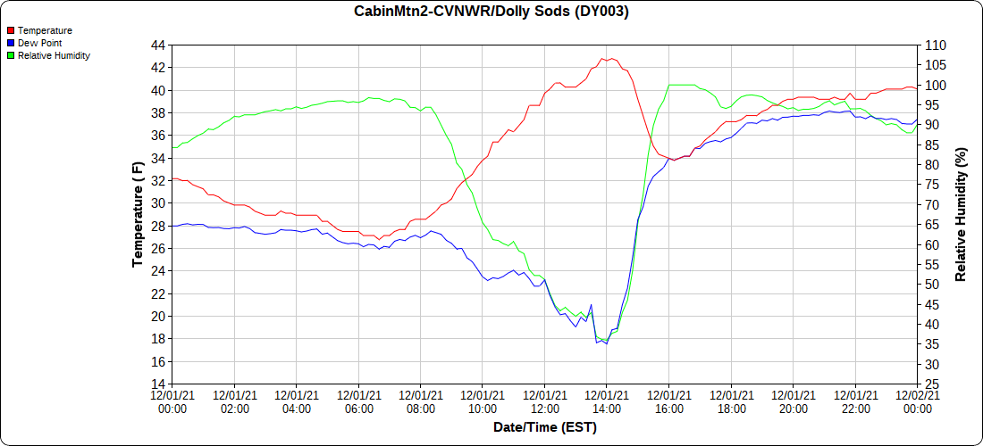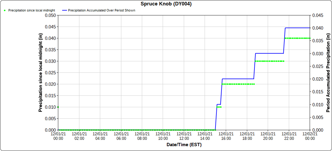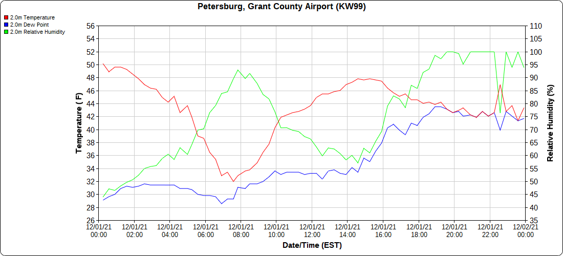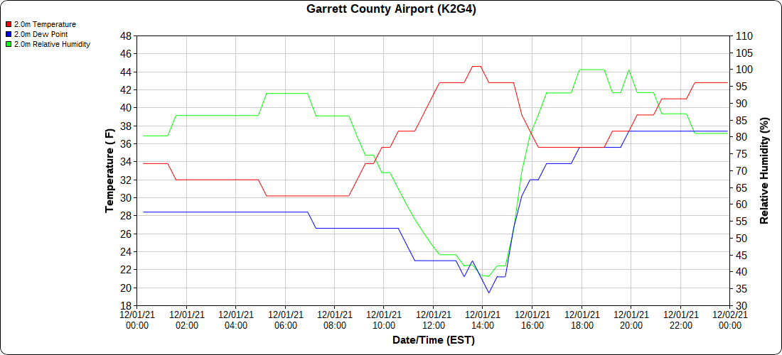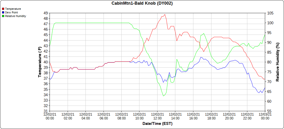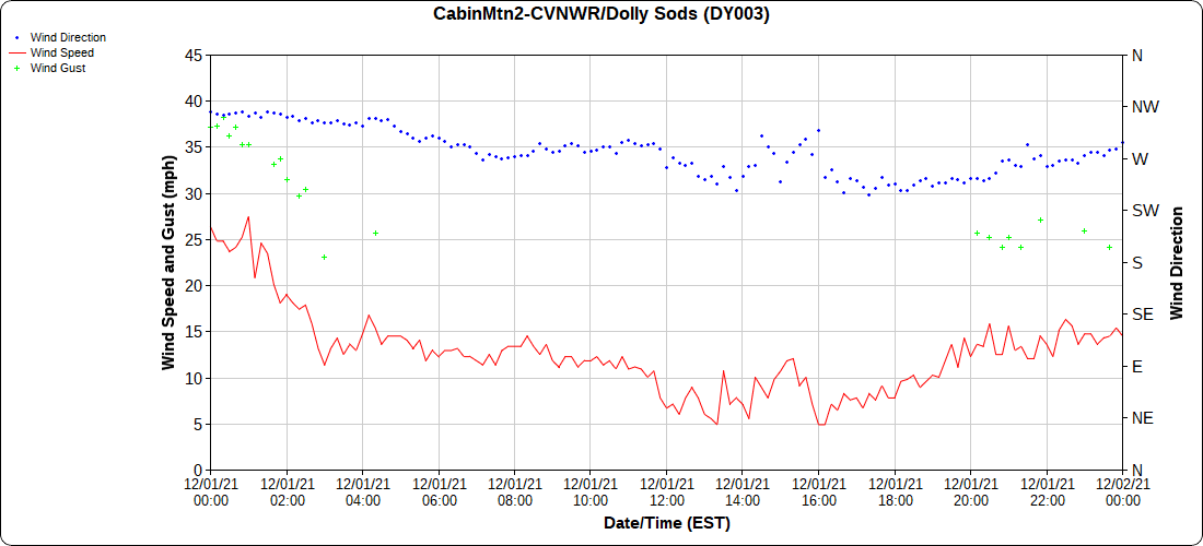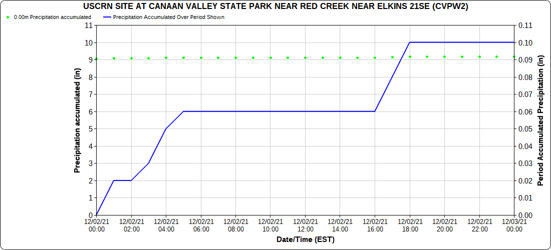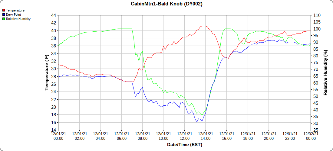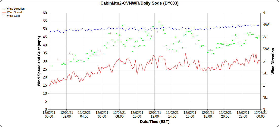Dy007-Canaan Valley Refuge 3150′, Dy002-Cabin Mt at Bald Knob 4350′, Dy003-Cabin Mt-Western Sods 4035′, Dy004-Spruce Knob 4820′, Cvpw2-Climate Reference Network Canaan 3380′, KW99-Petersburg Grant County Airport 961′, K2G4 Garrett County Airport 2933′, KCBE Cumberland Airport 774′, KEKN Elkins Airport 1985′, KMGW Morgantown Airport