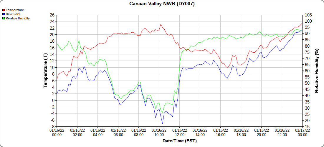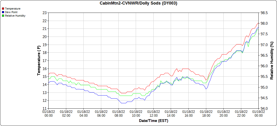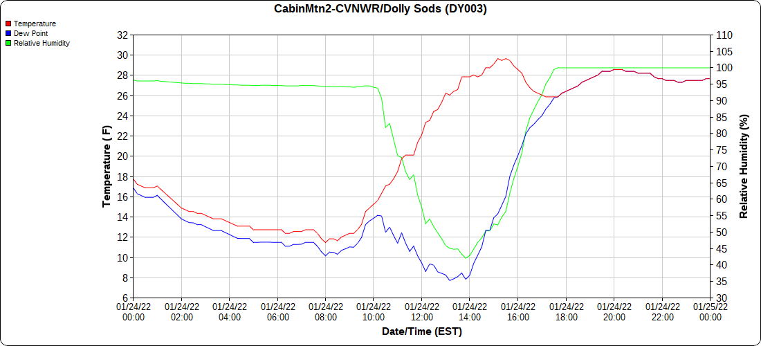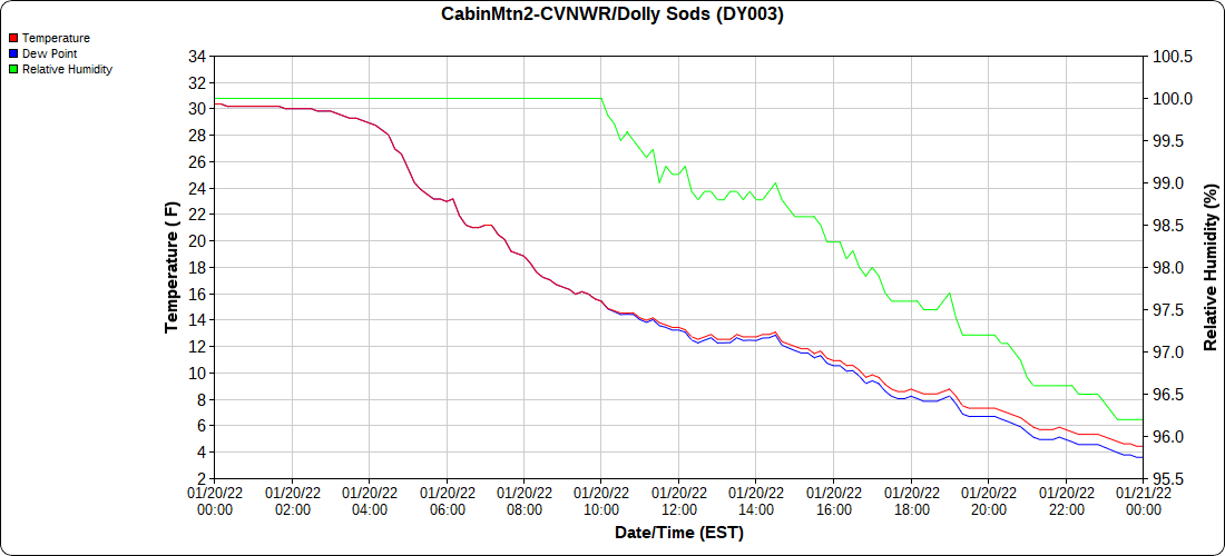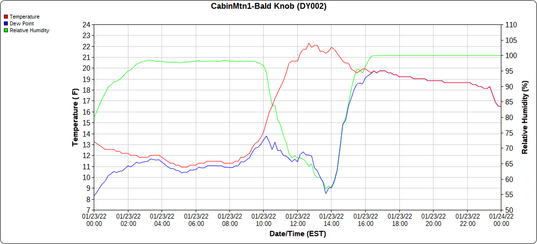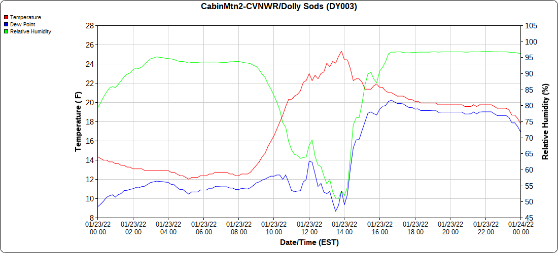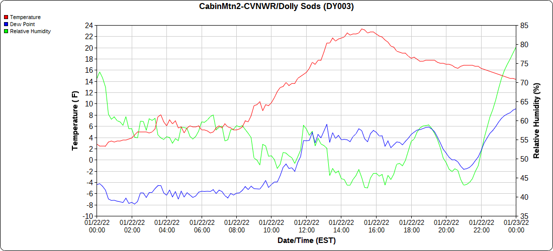 Temp had fell to -22 around midnight when the battery succumb to the cold. As I got there after 7am , 7:22 to be exact I reset the logger and was able to catch the current temp of -23.45. The actual min will remain unknown