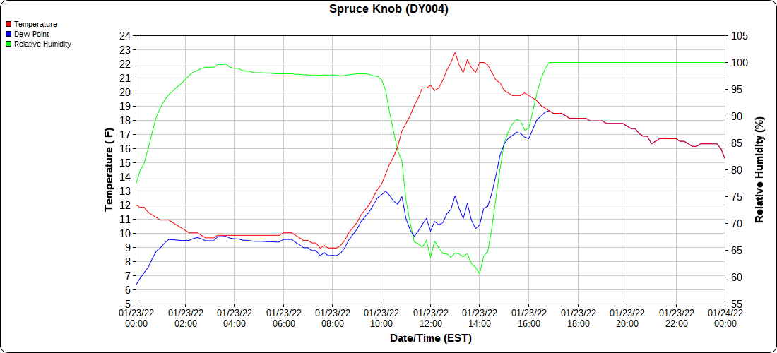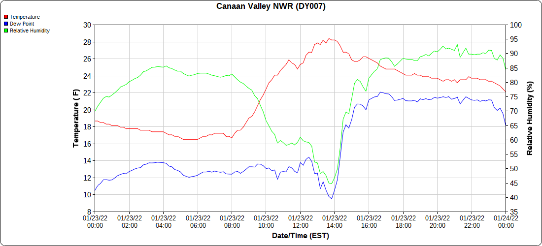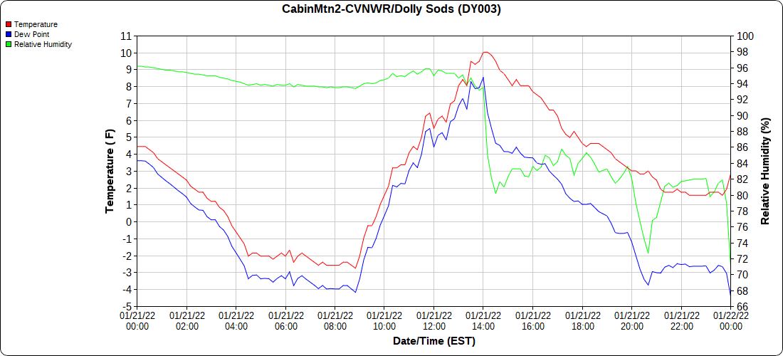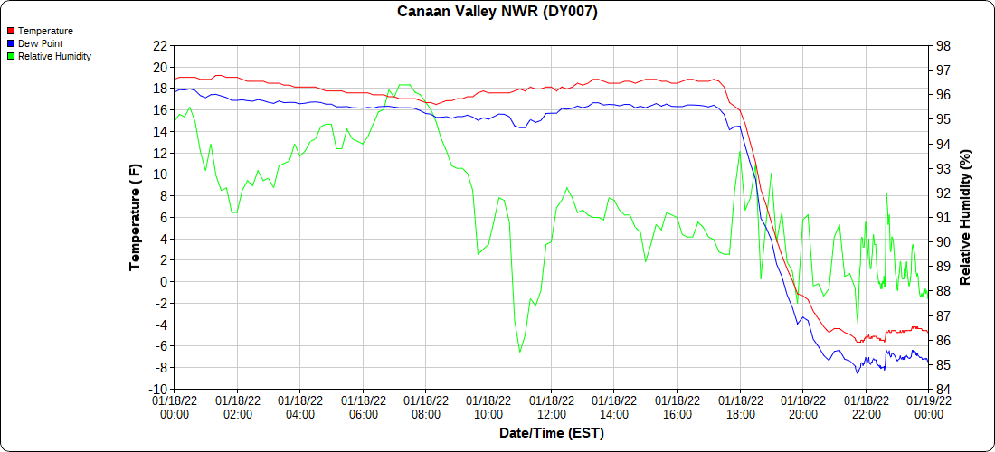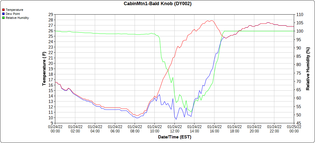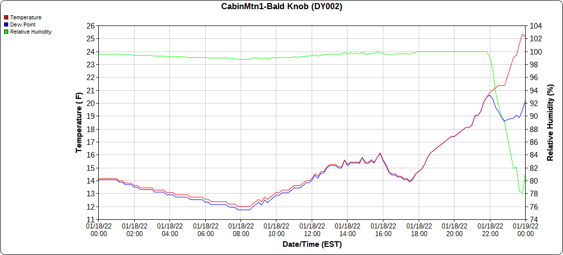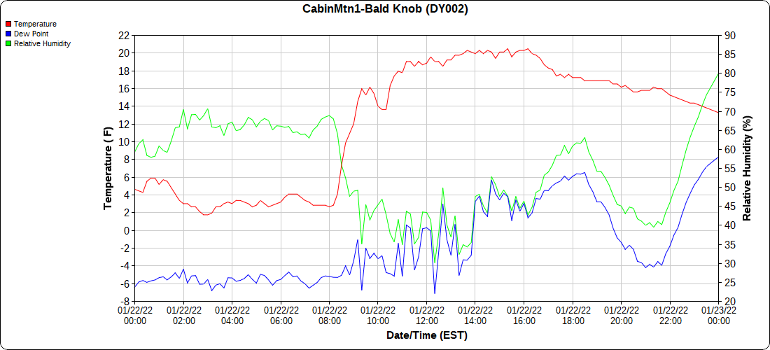 Temp had fell to -22 around midnight when the battery succumb to the cold. As I got there after 7am , 7:22 to be exact I reset the logger and was able to catch the current temp of -23.45. The actual min will remain unknown