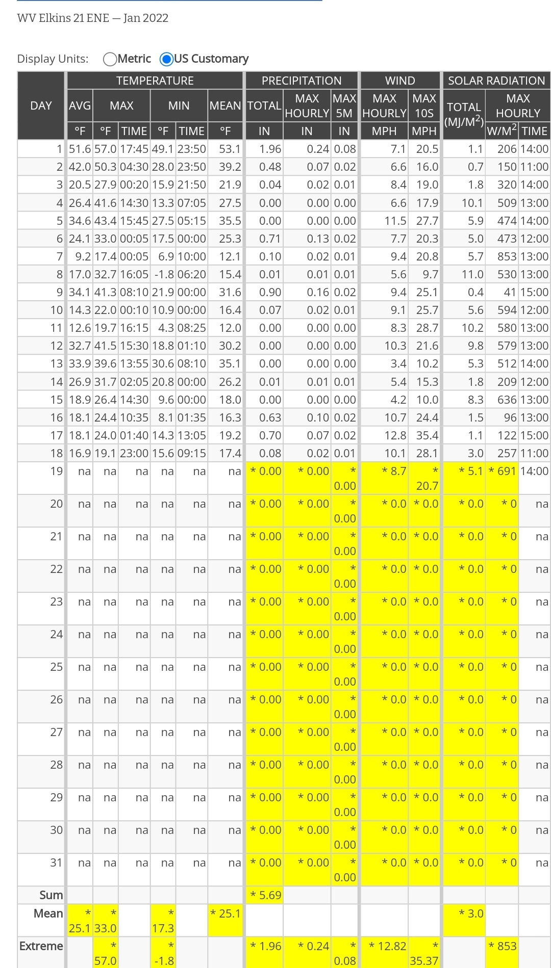 (7am to 7am data MMTS COOP, midnight to midnight data Dyacon)