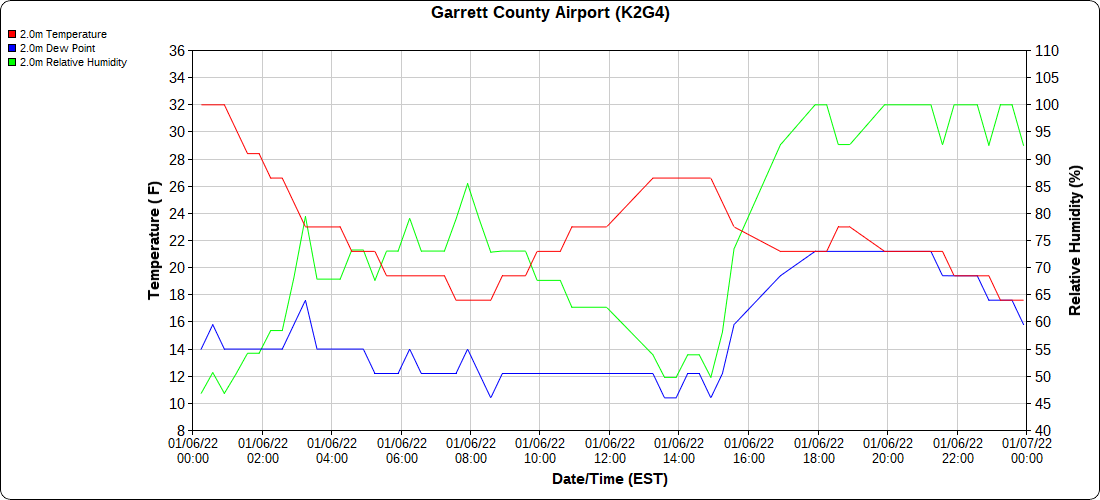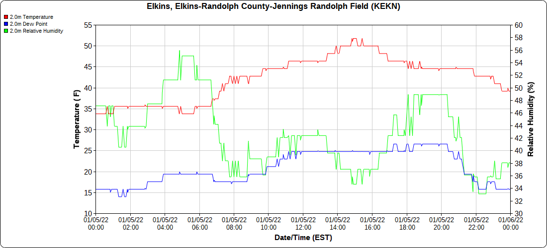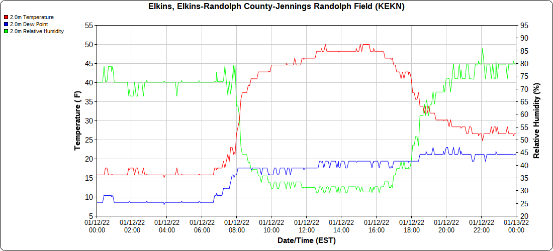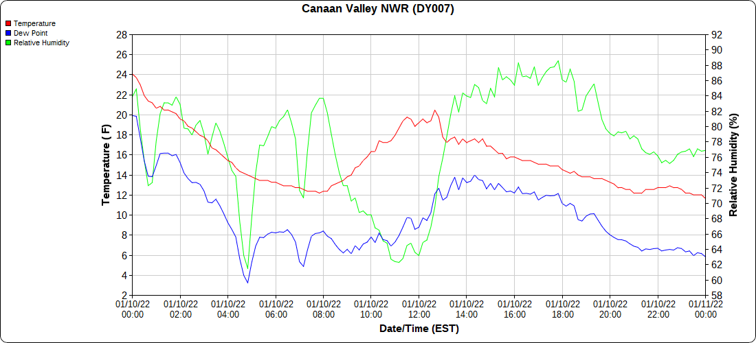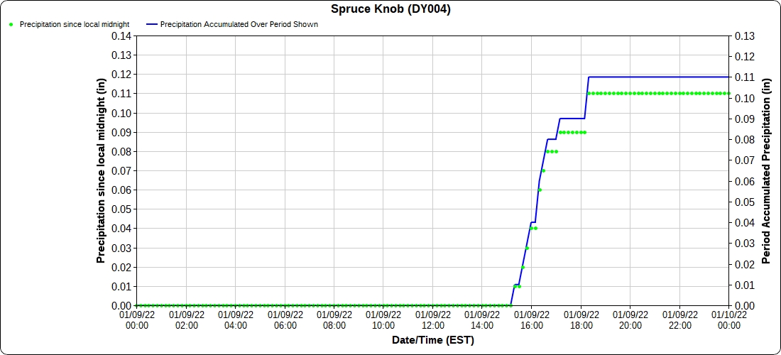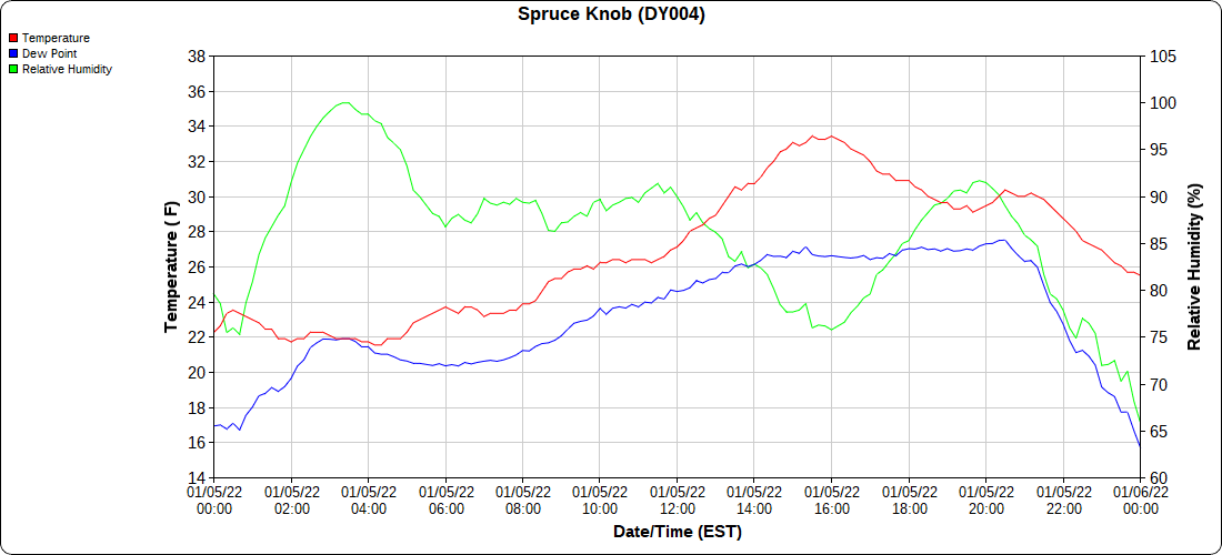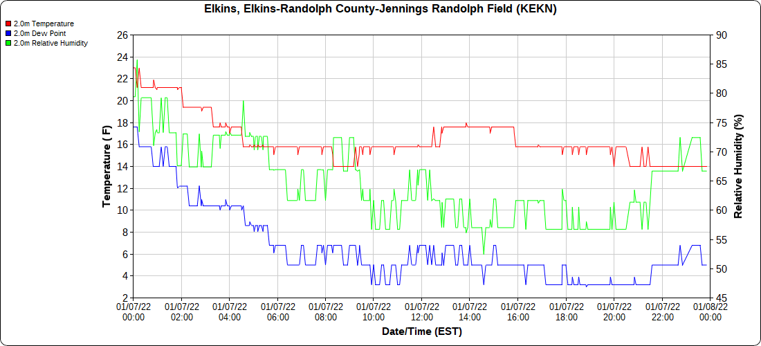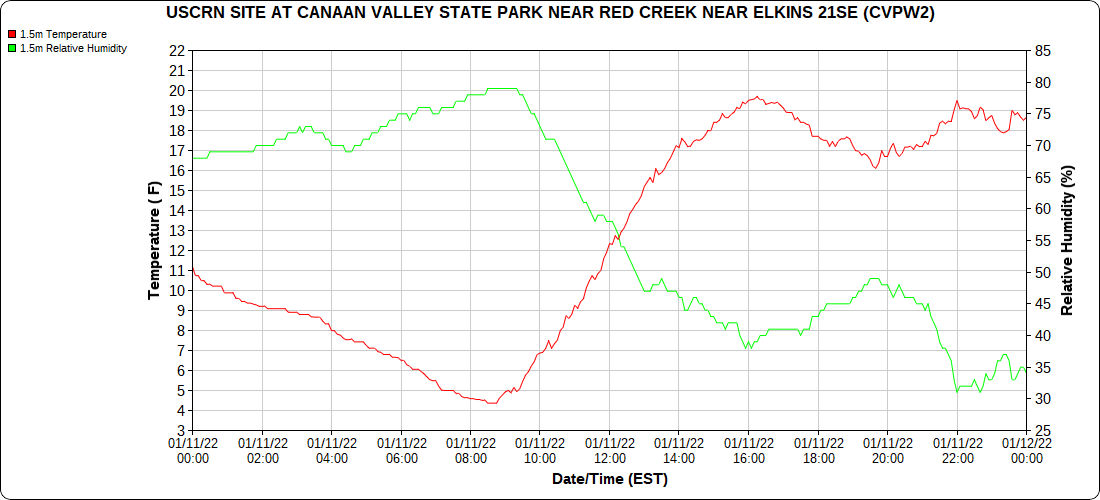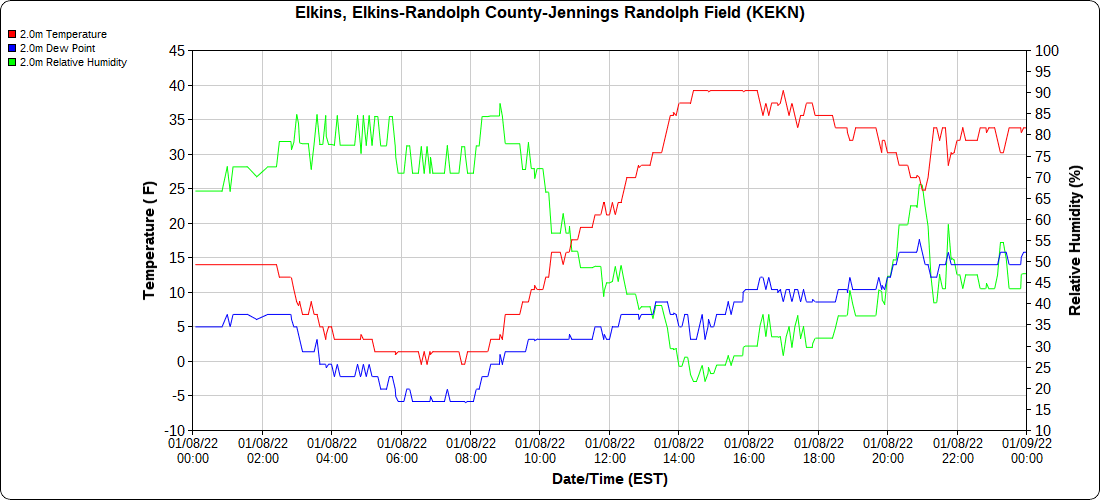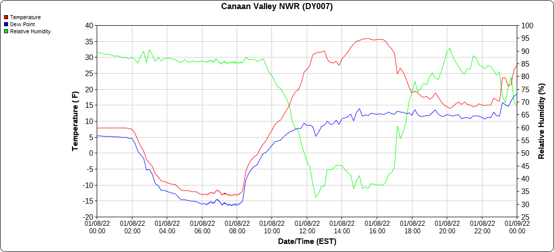 Dy007-Canaan Valley Refuge 3150′, Dy002-Cabin Mt at Bald Knob 4350′, Dy003-Cabin Mt-Western Sods 4035′, Dy004-Spruce Knob 4820′, Cvpw2-Climate Reference Network Canaan 3380′, KW99-Petersburg Grant County Airport 961′, K2G4 Garrett County Airport 2933′, KCBE Cumberland Airport 774′, KEKN Elkins Airport 1985′, KMGW Morgantown Airport 1227′