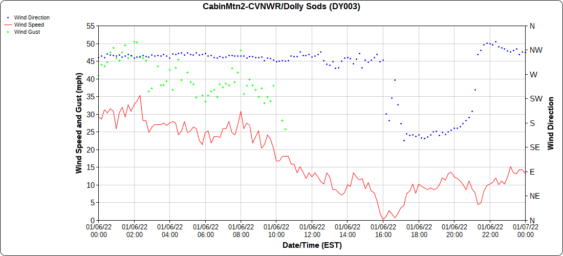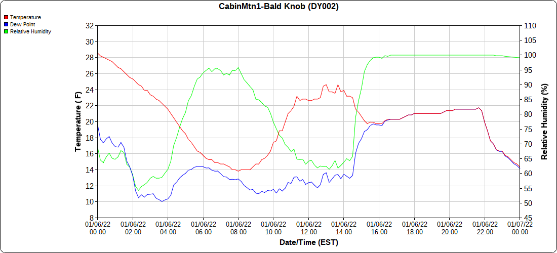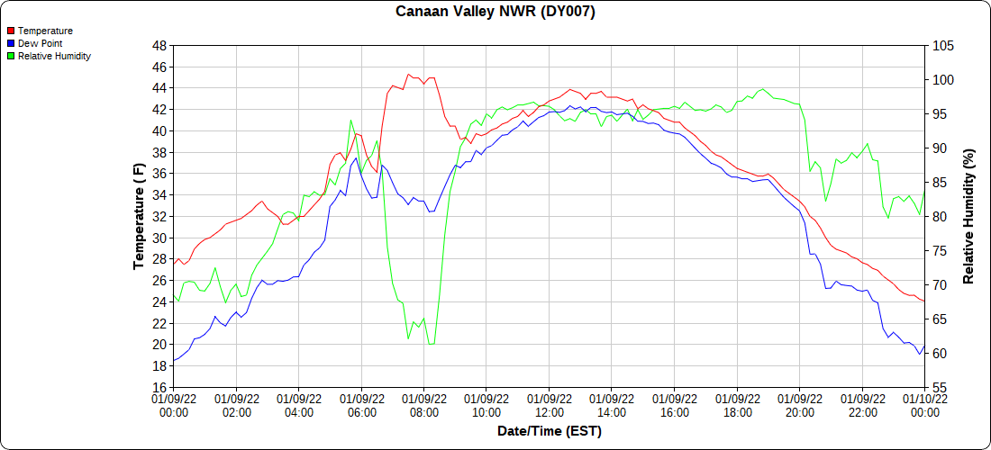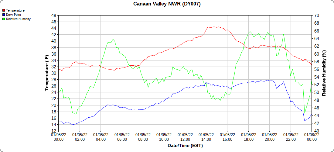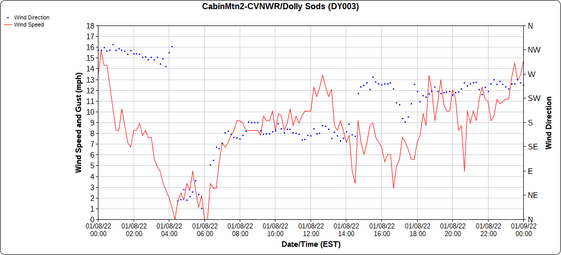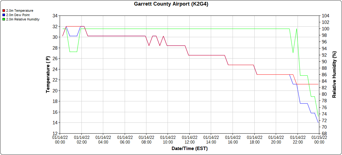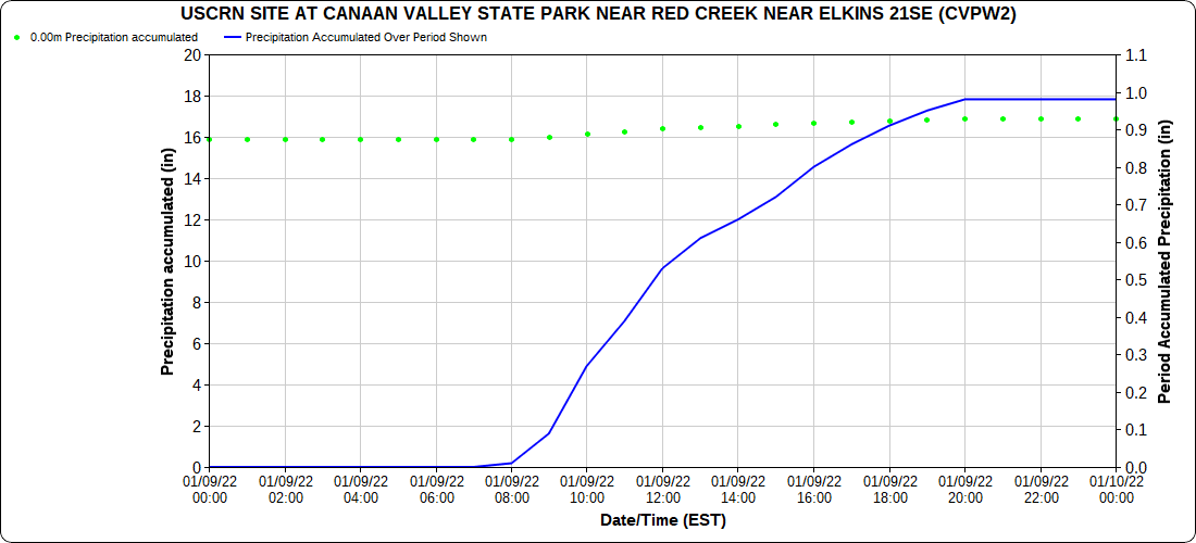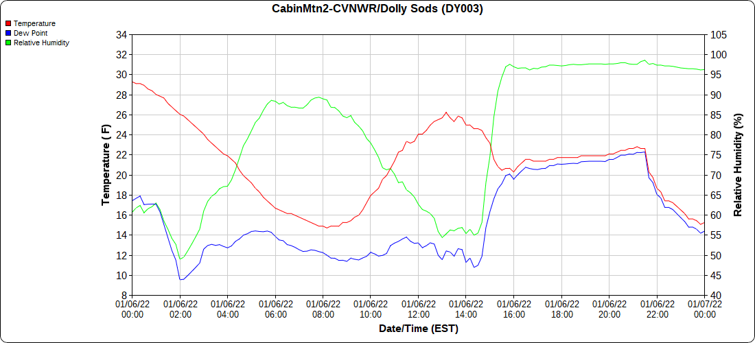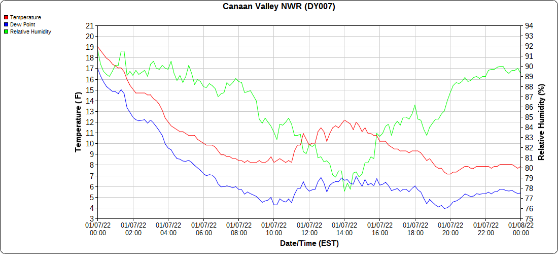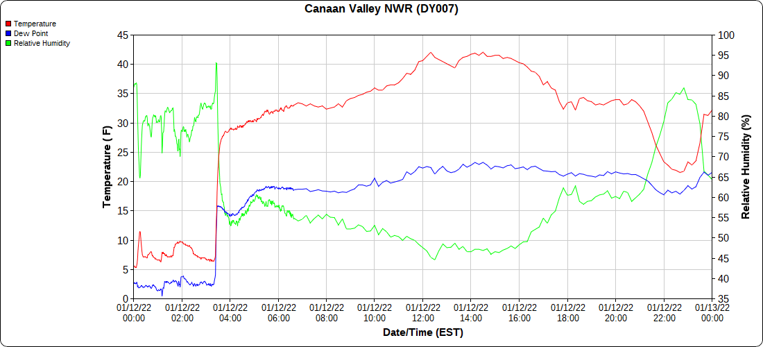 Dy007-Canaan Valley Refuge 3150′, Dy002-Cabin Mt at Bald Knob 4350′, Dy003-Cabin Mt-Western Sods 4035′, Dy004-Spruce Knob 4820′, Cvpw2-Climate Reference Network Canaan 3380′, KW99-Petersburg Grant County Airport 961′, K2G4 Garrett County Airport 2933′, KCBE Cumberland Airport 774′, KEKN Elkins Airport 1985′, KMGW Morgantown Airport 1227′