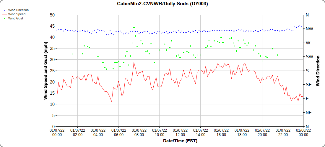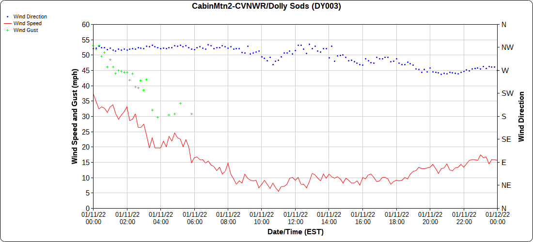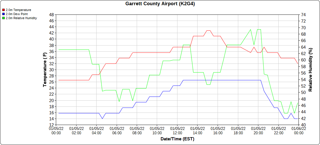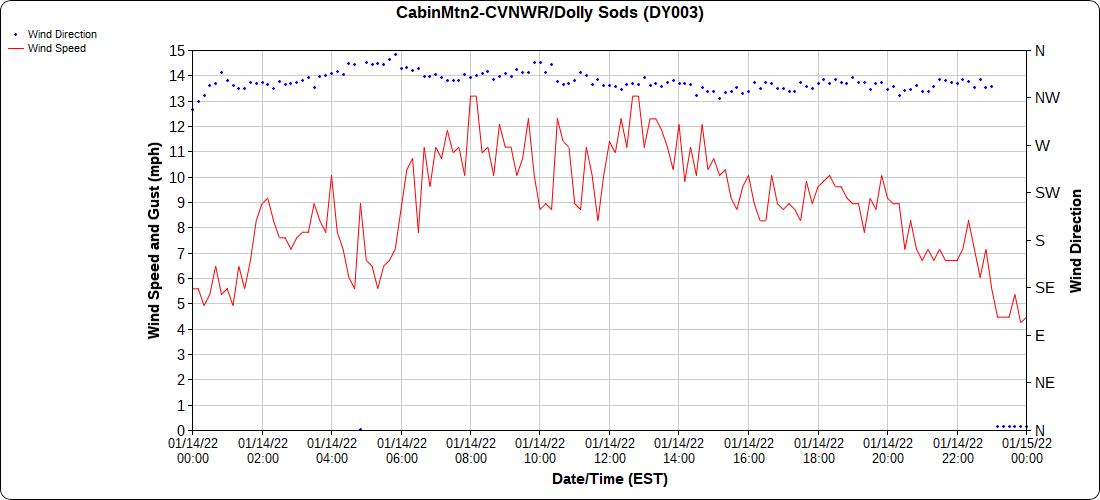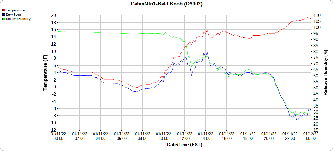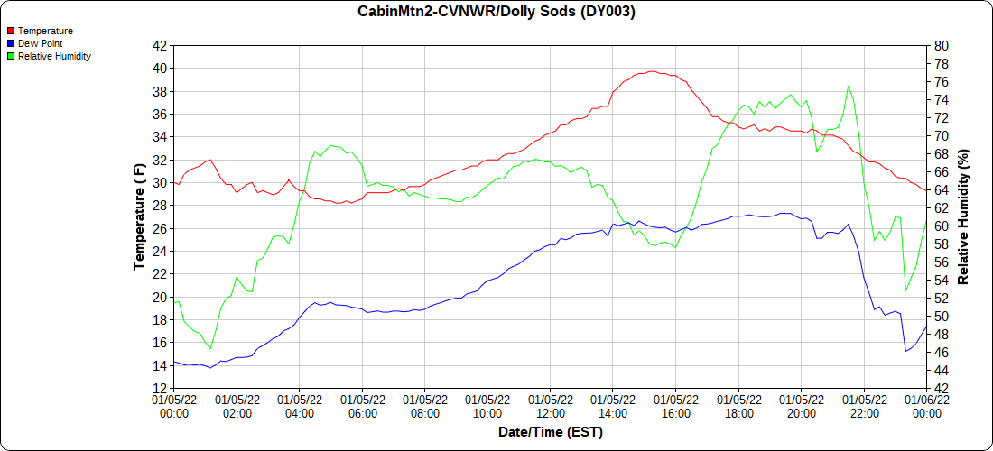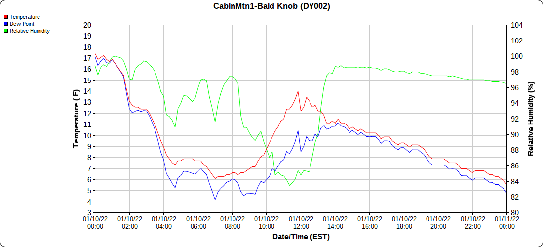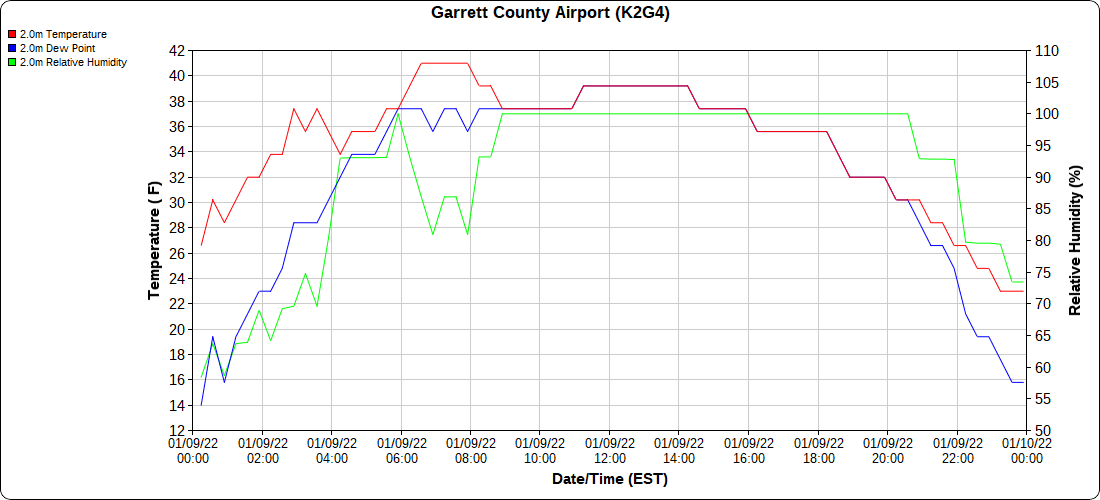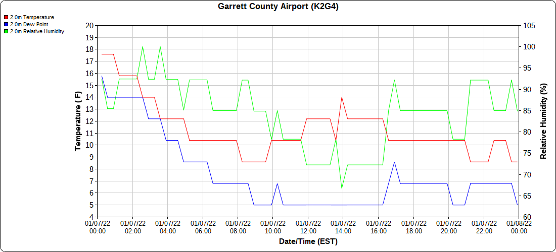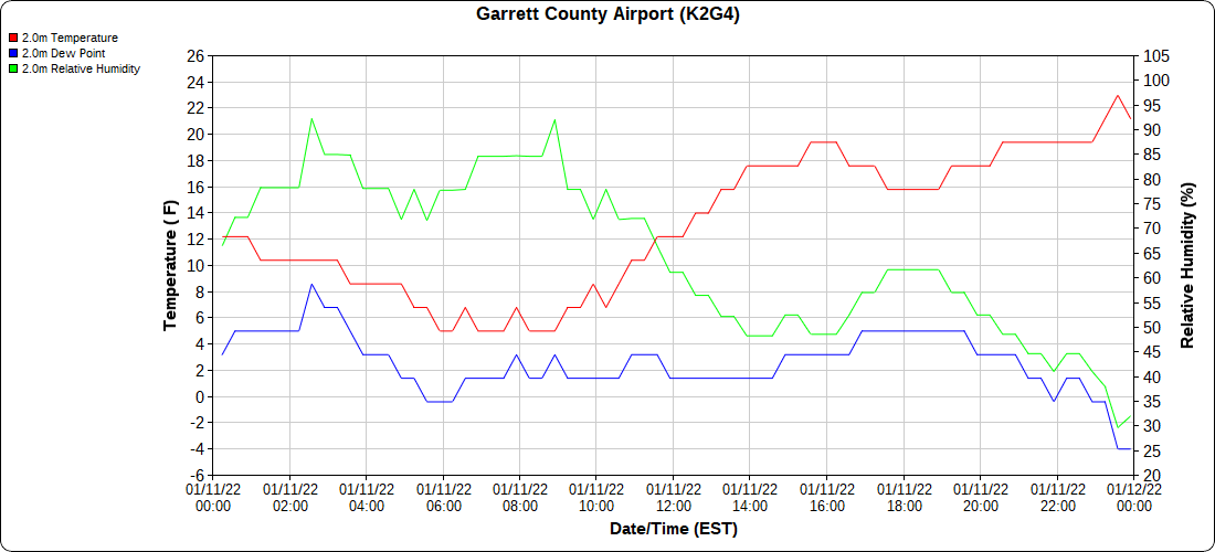 Dy007-Canaan Valley Refuge 3150′, Dy002-Cabin Mt at Bald Knob 4350′, Dy003-Cabin Mt-Western Sods 4035′, Dy004-Spruce Knob 4820′, Cvpw2-Climate Reference Network Canaan 3380′, KW99-Petersburg Grant County Airport 961′, K2G4 Garrett County Airport 2933′, KCBE Cumberland Airport 774′, KEKN Elkins Airport 1985′, KMGW Morgantown Airport 1227′