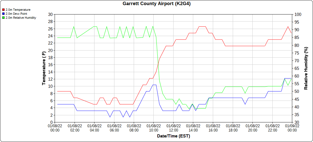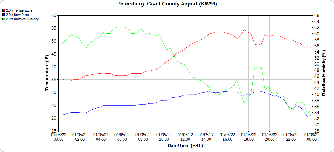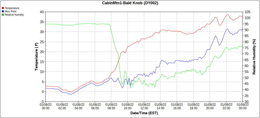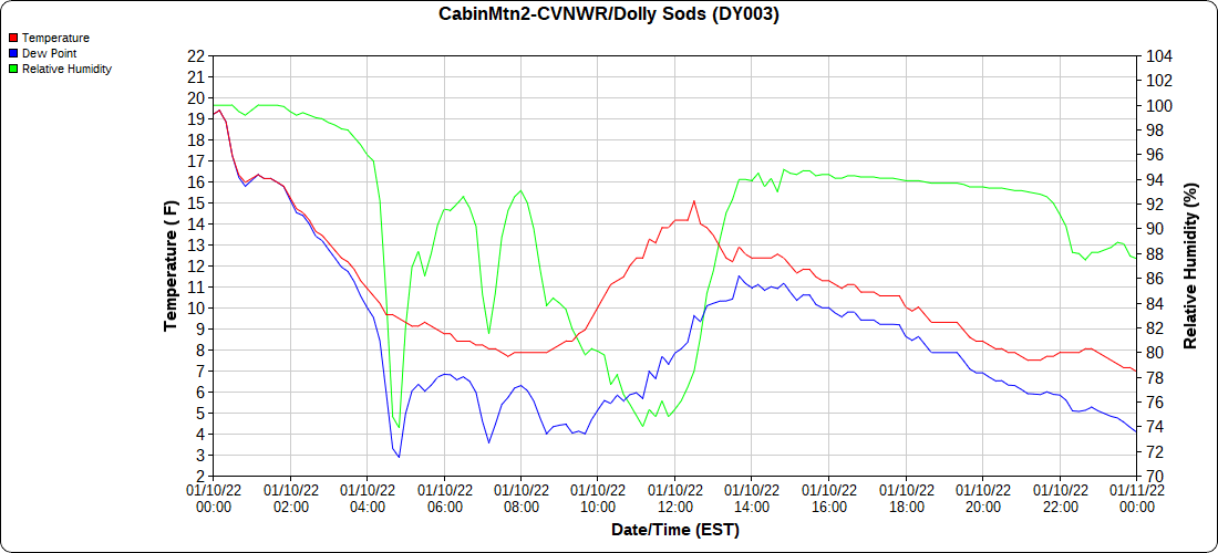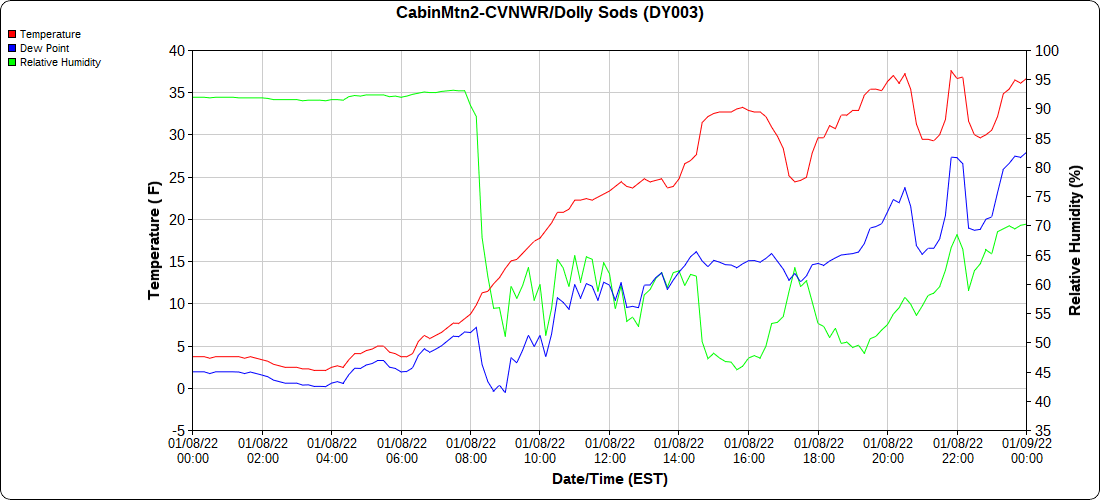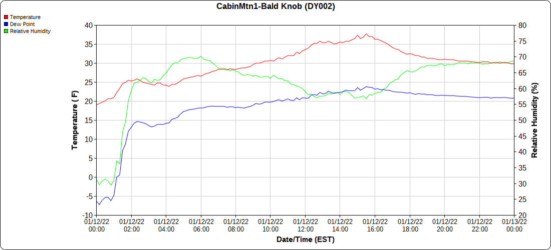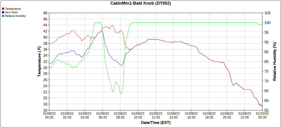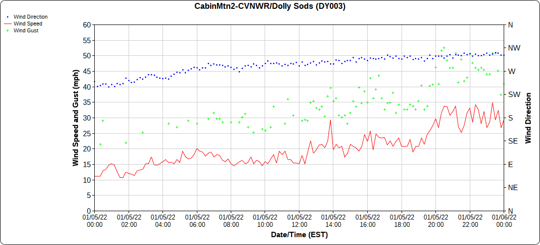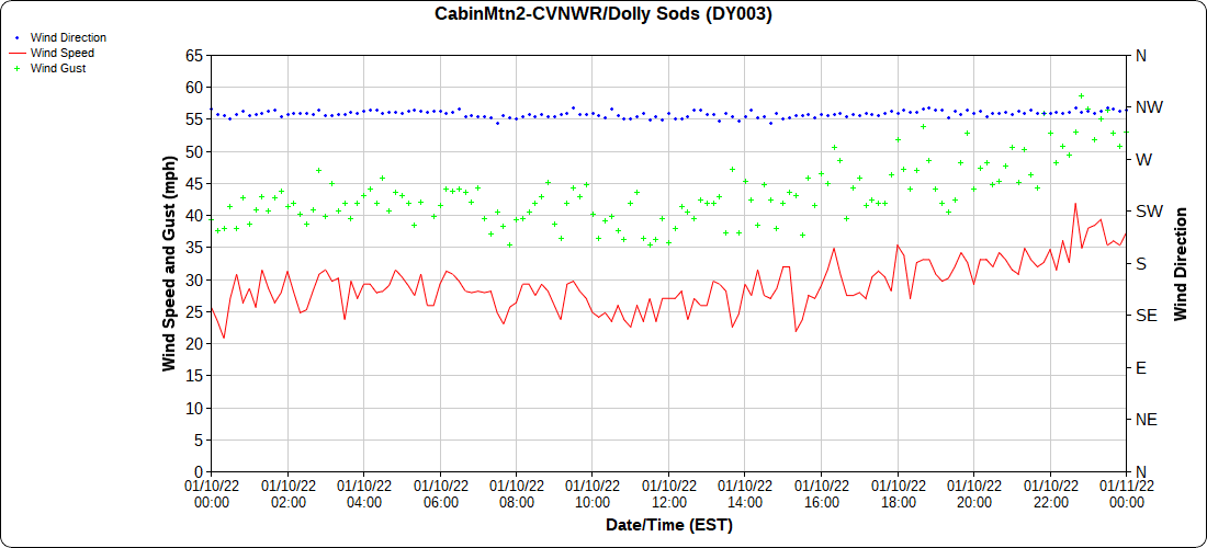 Dy007-Canaan Valley Refuge 3150′, Dy002-Cabin Mt at Bald Knob 4350′, Dy003-Cabin Mt-Western Sods 4035′, Dy004-Spruce Knob 4820′, Cvpw2-Climate Reference Network Canaan 3380′, KW99-Petersburg Grant County Airport 961′, K2G4 Garrett County Airport 2933′, KCBE Cumberland Airport 774′, KEKN Elkins Airport 1985′, KMGW Morgantown Airport 1227′