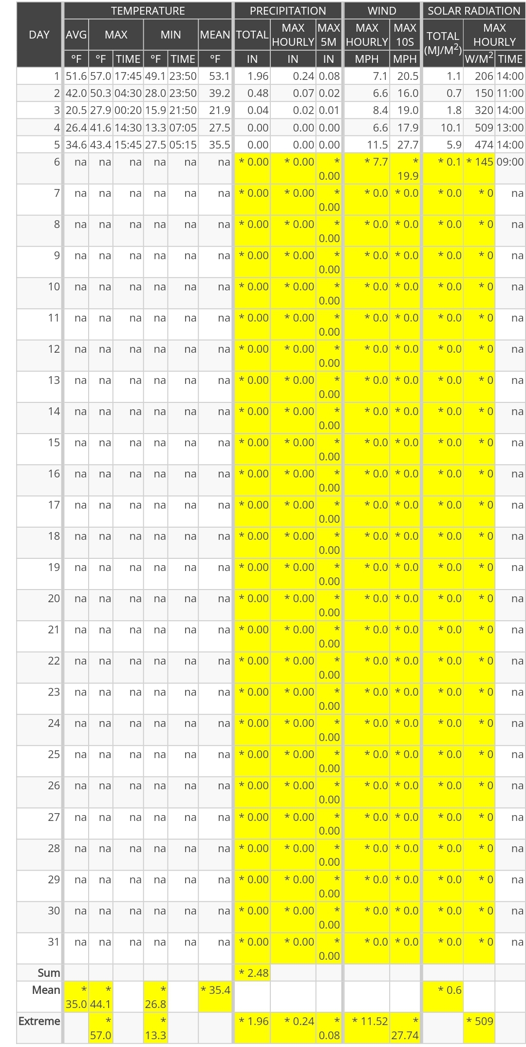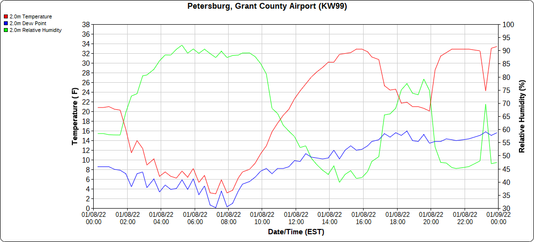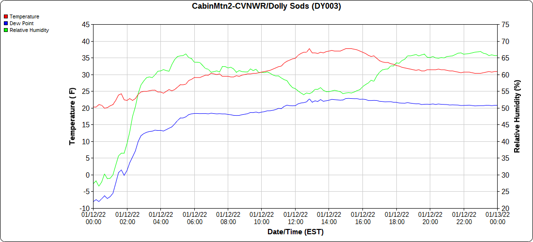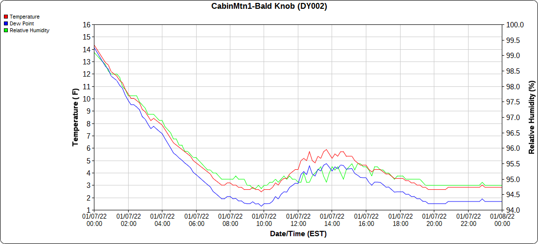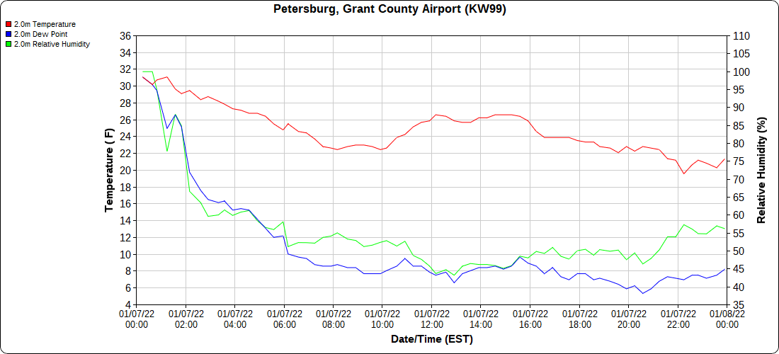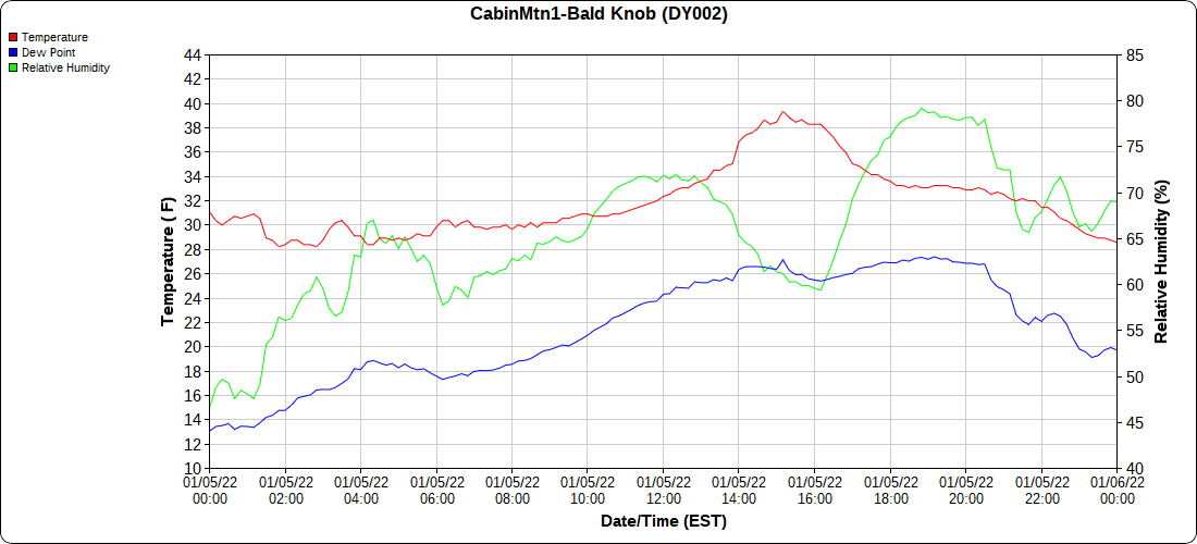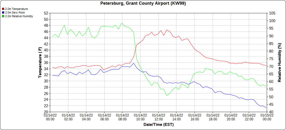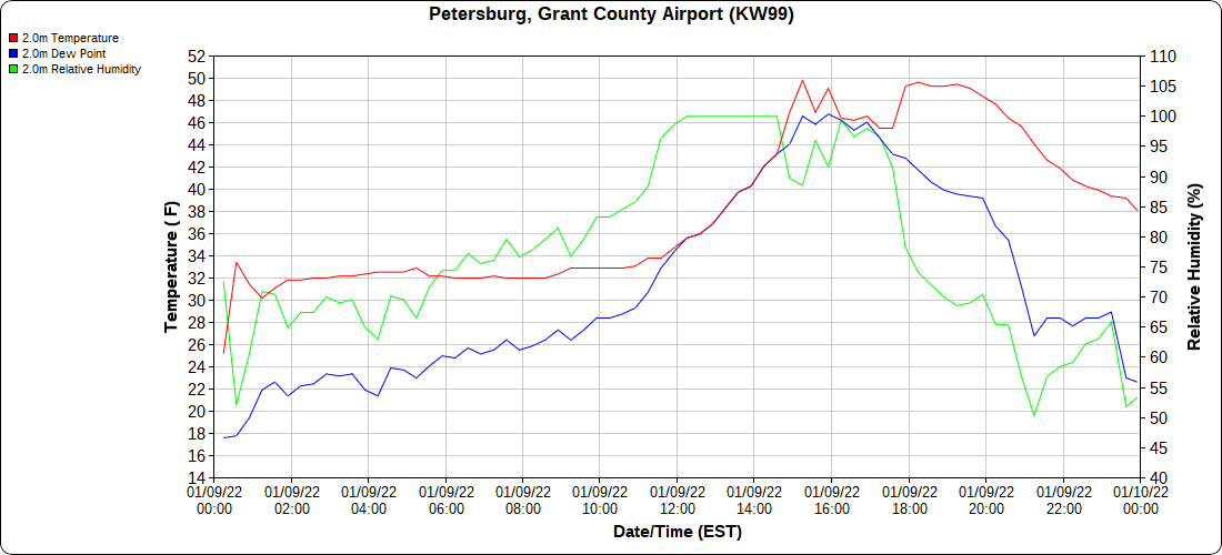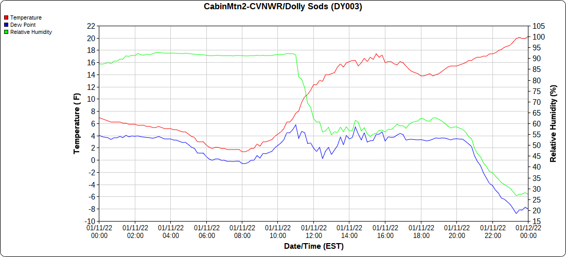 Dy007-Canaan Valley Refuge 3150′, Dy002-Cabin Mt at Bald Knob 4350′, Dy003-Cabin Mt-Western Sods 4035′, Dy004-Spruce Knob 4820′, Cvpw2-Climate Reference Network Canaan 3380′, KW99-Petersburg Grant County Airport 961′, K2G4 Garrett County Airport 2933′, KCBE Cumberland Airport 774′, KEKN Elkins Airport 1985′, KMGW Morgantown Airport 1227′