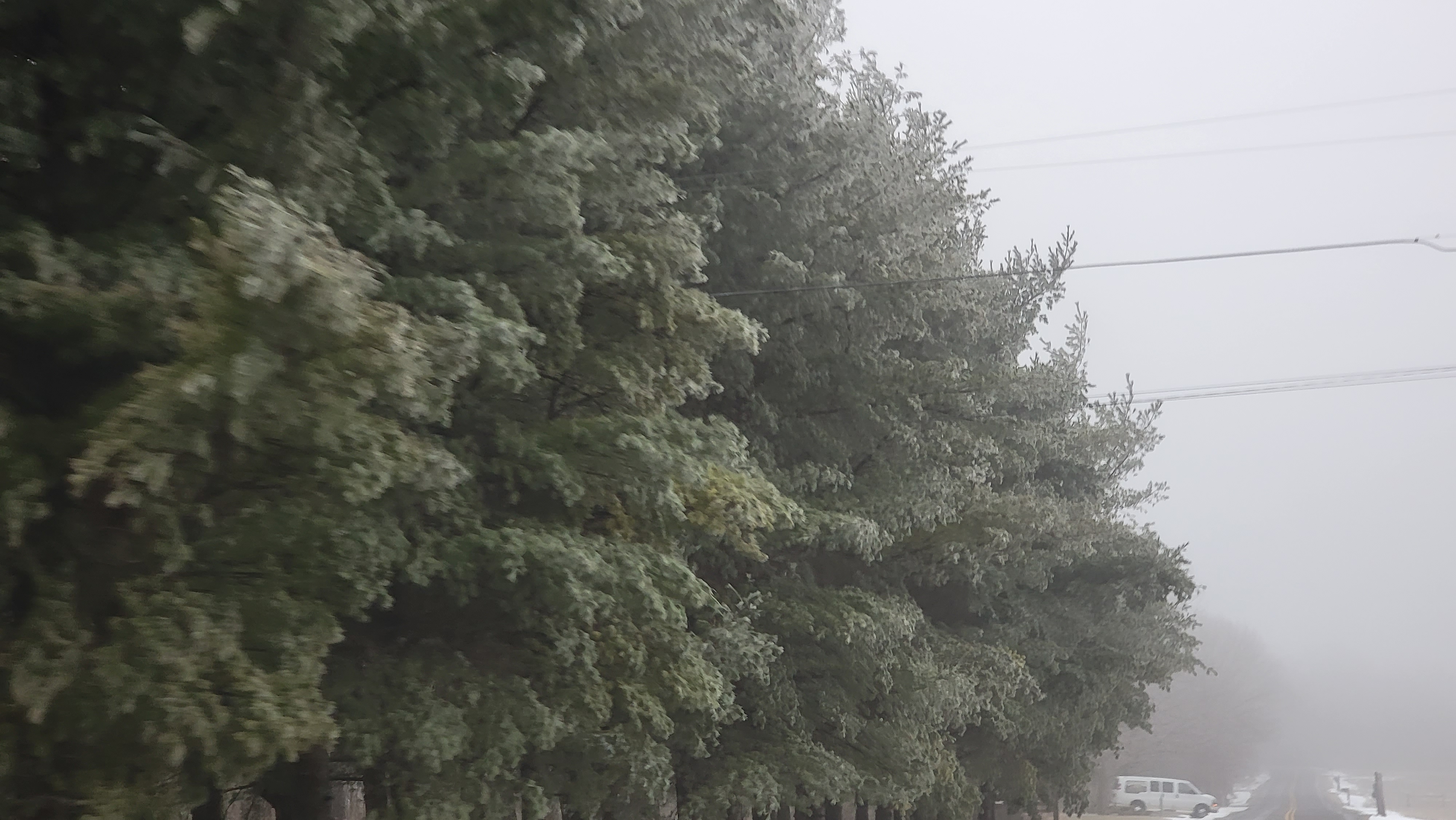 Cloudy, foggy, a little rime, touch of freezing drizzle, trace of snow