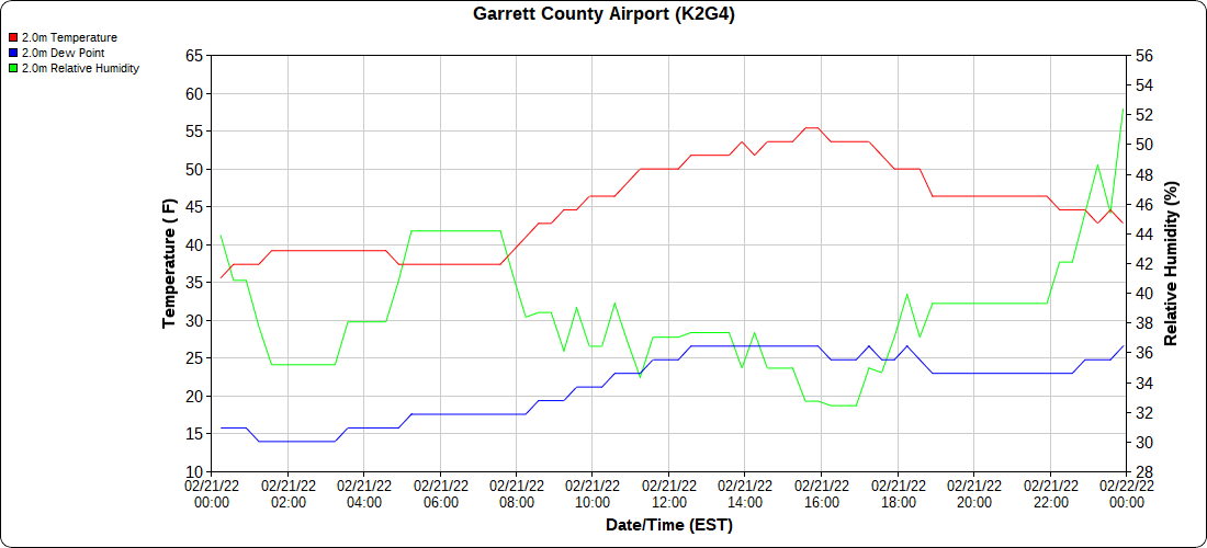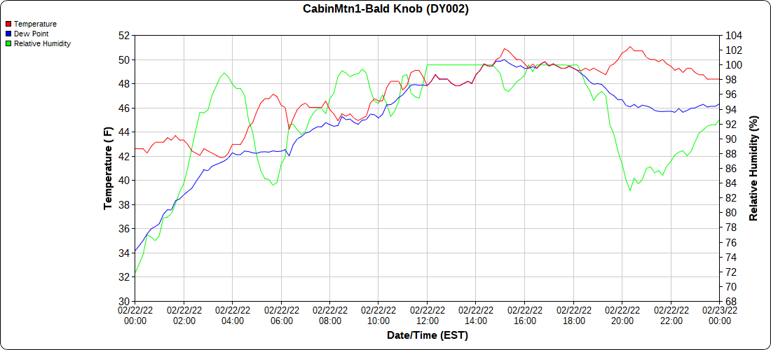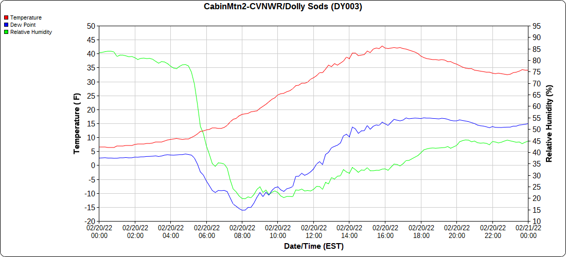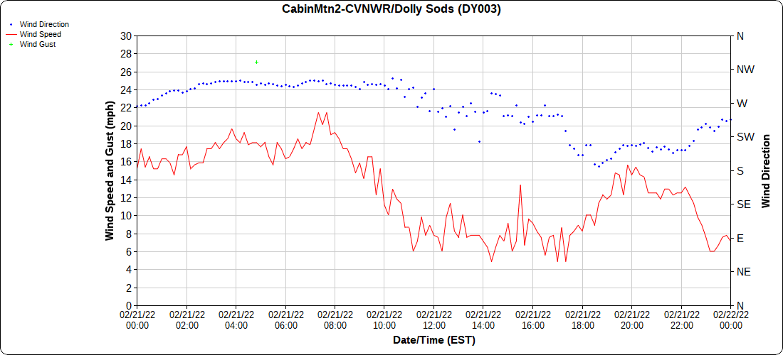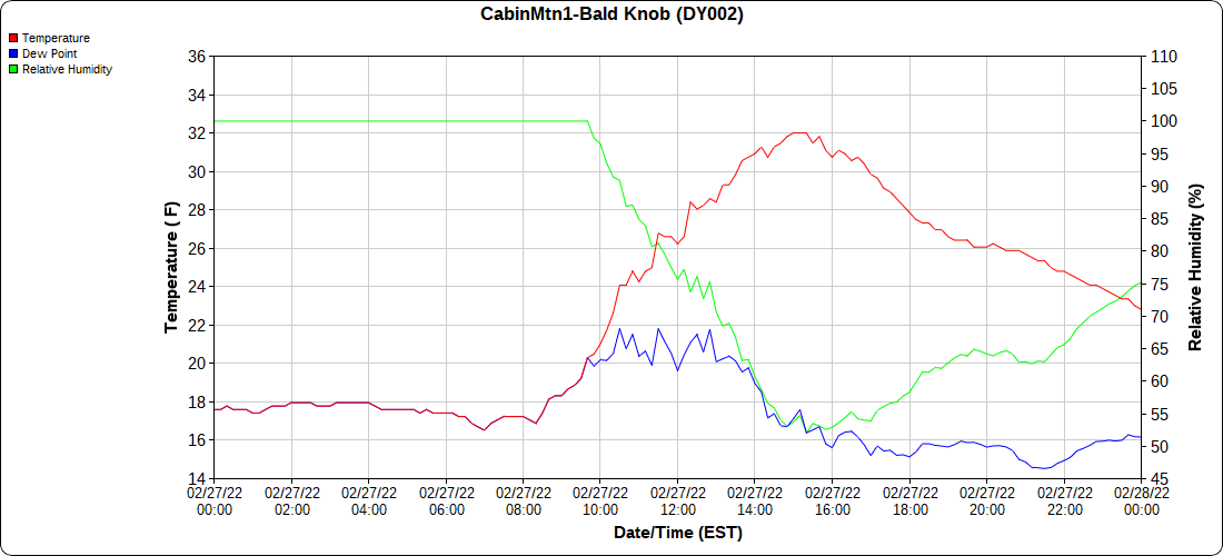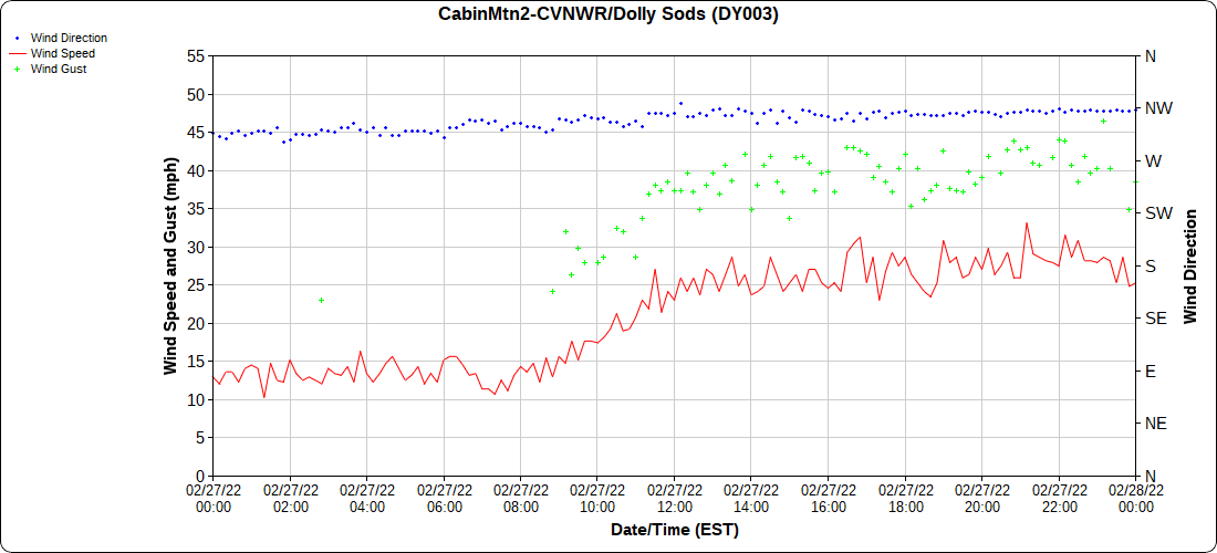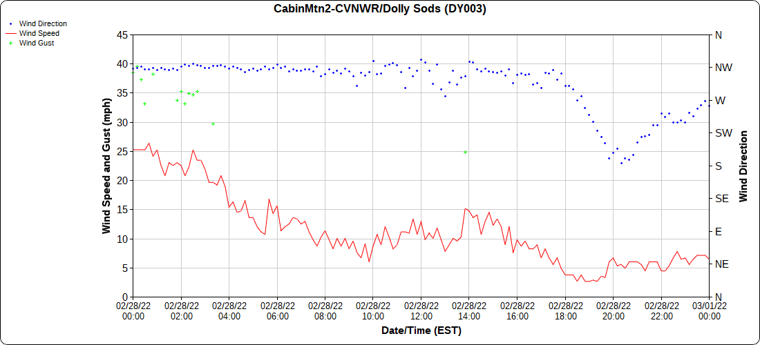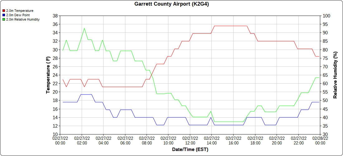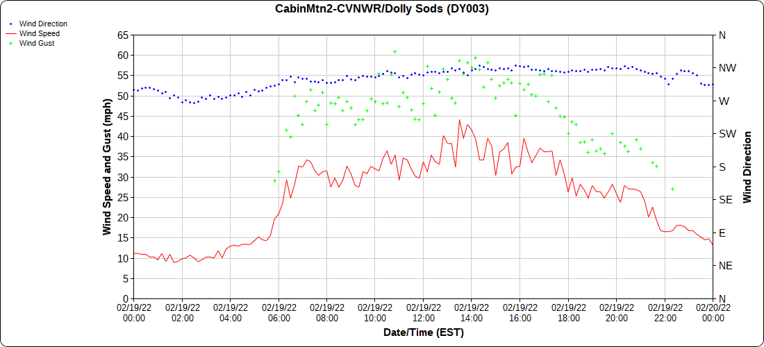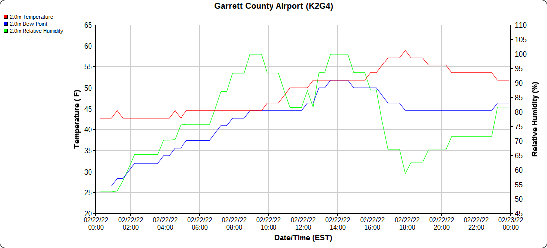 Dy007-Canaan Valley Refuge 3150′, Dy002-Cabin Mt at Bald Knob 4350′, Dy003-Cabin Mt-Western Sods 4035′, Dy004-Spruce Knob 4820′, Cvpw2-Climate Reference Network Canaan 3380′, KW99-Petersburg Grant County Airport961′, K2G4 Garrett County Airport 2933′, KCBE Cumberland Airport 774′, KEKN Elkins Airport 1985′, KMGW Morgantown Airport 1227′