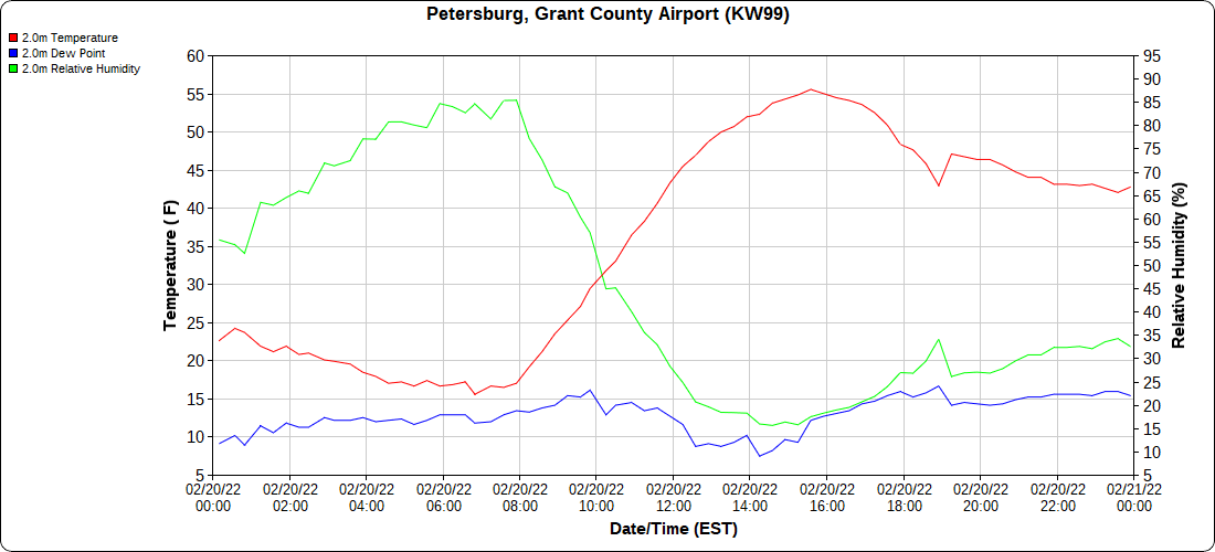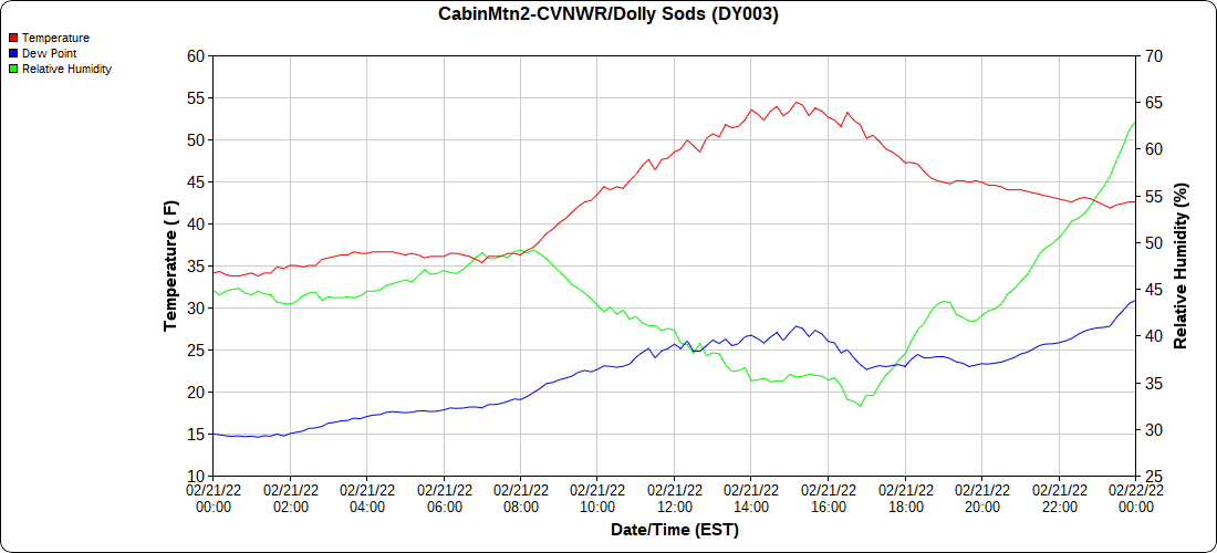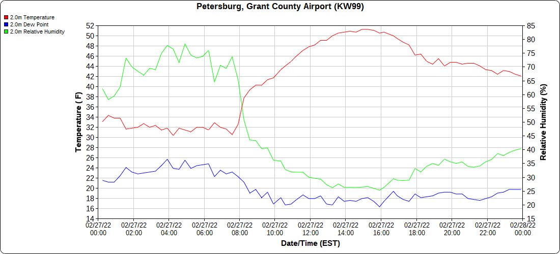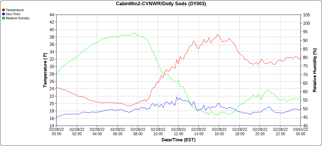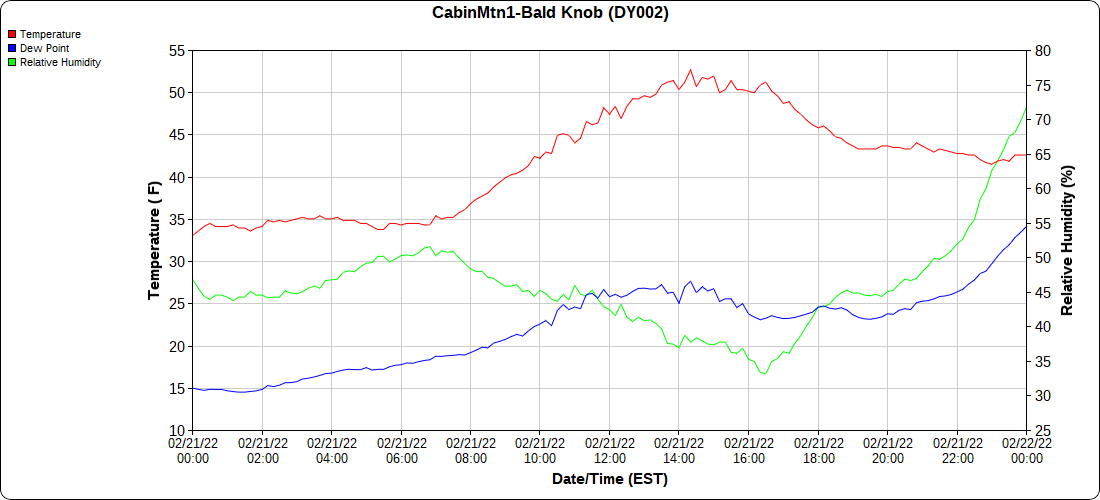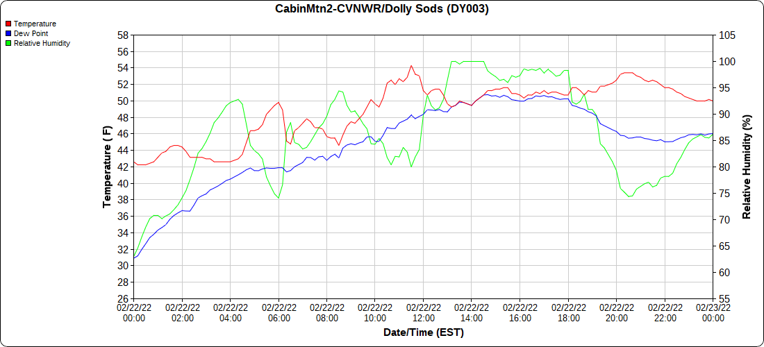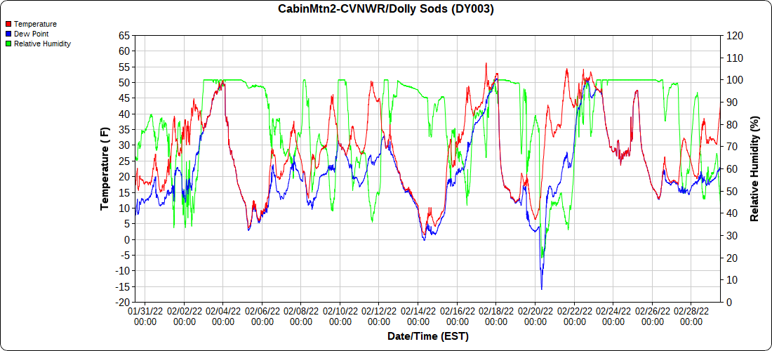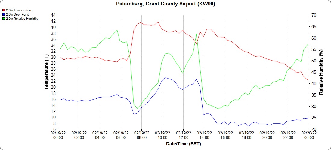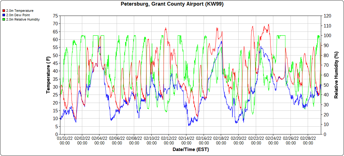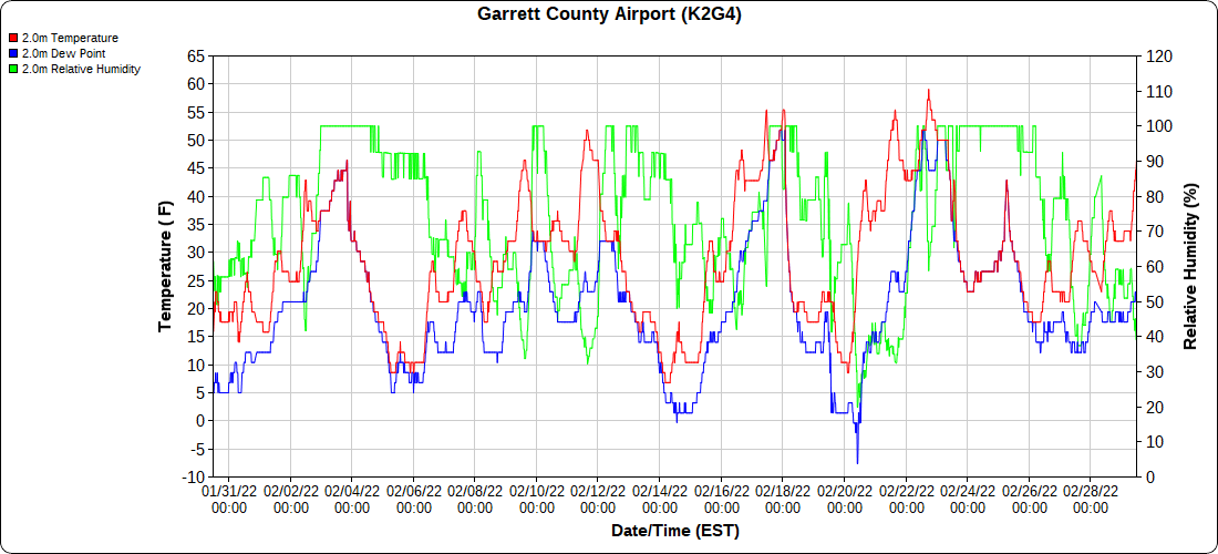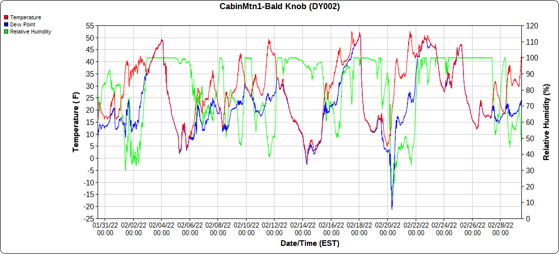 Dy007-Canaan Valley Refuge 3150′, Dy002-Cabin Mt at Bald Knob 4350′, Dy003-Cabin Mt-Western Sods 4035′, Dy004-Spruce Knob 4820′, Cvpw2-Climate Reference Network Canaan 3380′, KW99-Petersburg Grant County Airport961′, K2G4 Garrett County Airport 2933′, KCBE Cumberland Airport 774′, KEKN Elkins Airport 1985′, KMGW Morgantown Airport 1227′