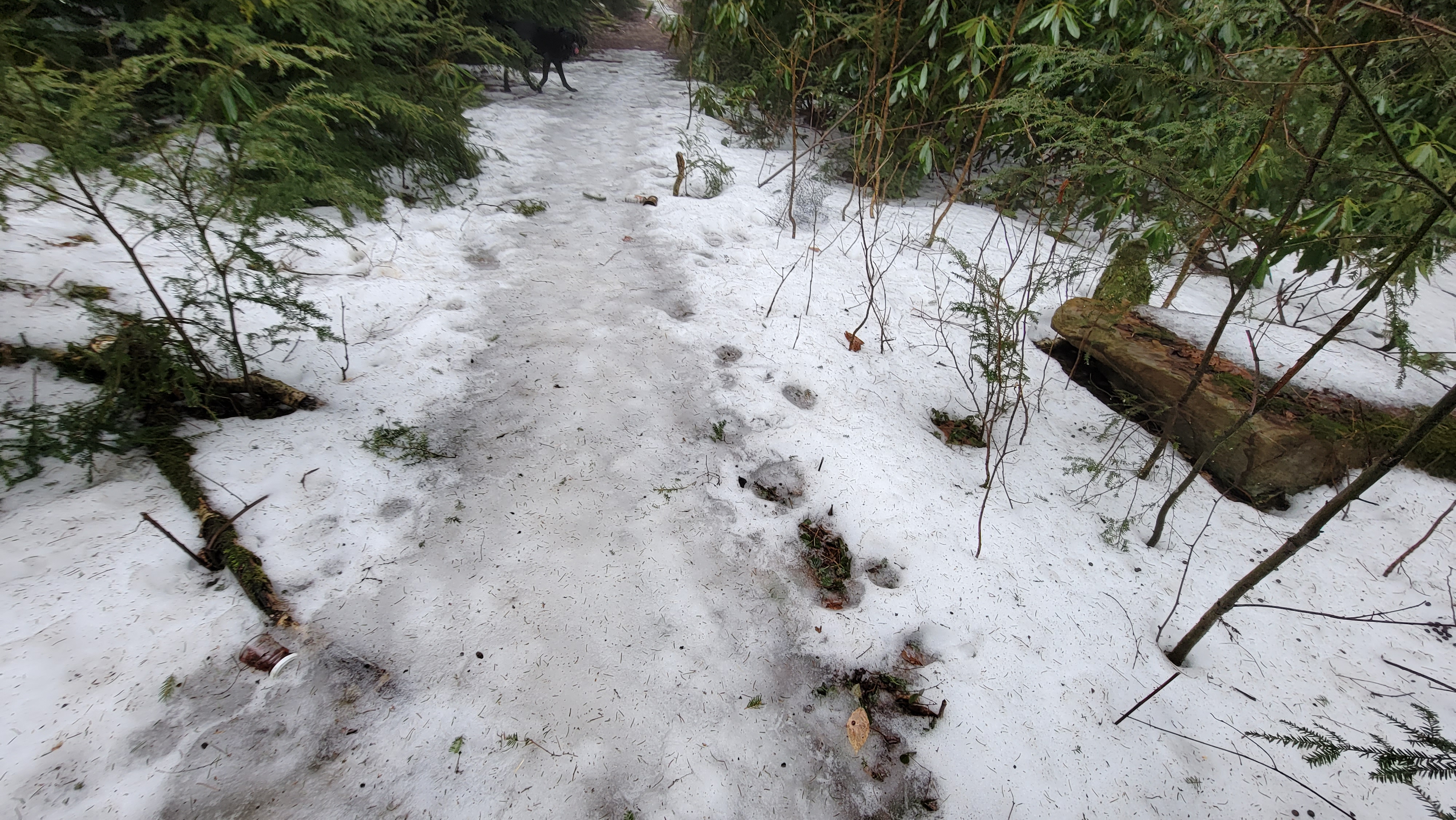 Cloudy, fog a.m while still mild after a mild windy night that ate lots of residual snow cover,, midday breaks of sun, then cloudy colder late day