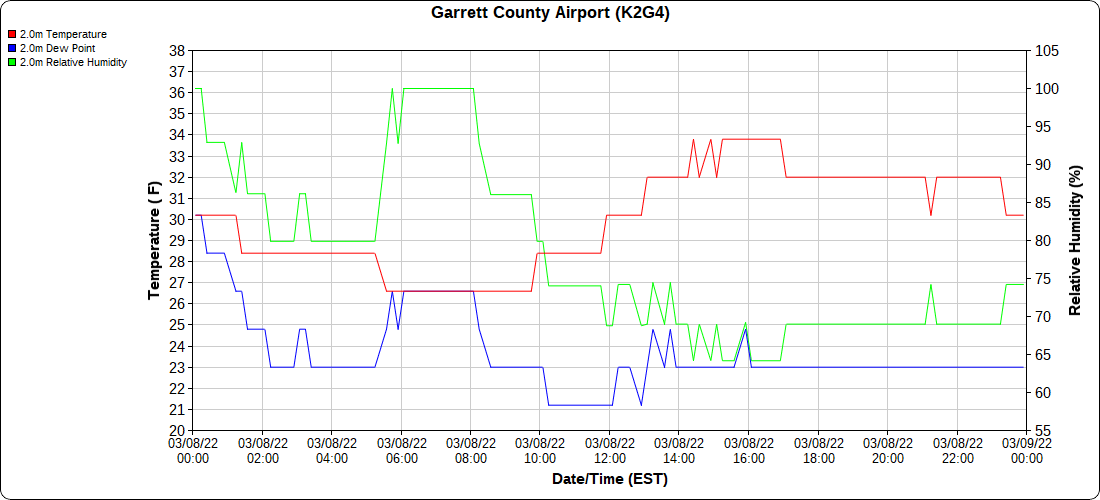 Dy007-Canaan Valley Refuge 3150′, Dy002-Cabin Mt at Bald Knob 4350′, Dy003-Cabin Mt-Western Sods 4035′, Dy004-Spruce Knob 4820′, Cvpw2-Climate Reference Network Canaan 3380′, KW99-Petersburg Grant County Airport 961′, K2G4 Garrett County Airport 2933′, KCBE Cumberland Airport 774′, KEKN Elkins Airport 1227′, KMGW Morgantown Airport 1227′