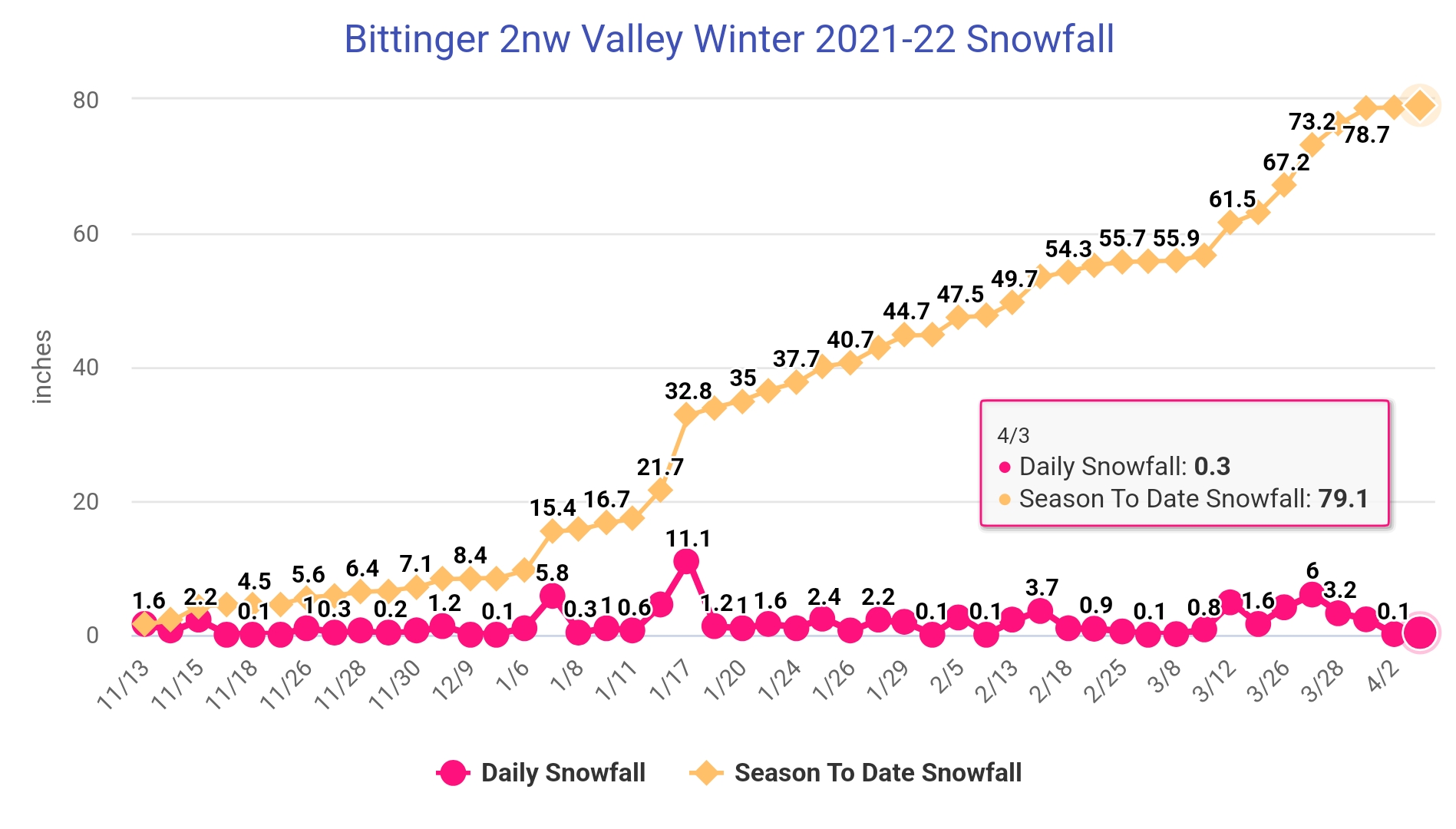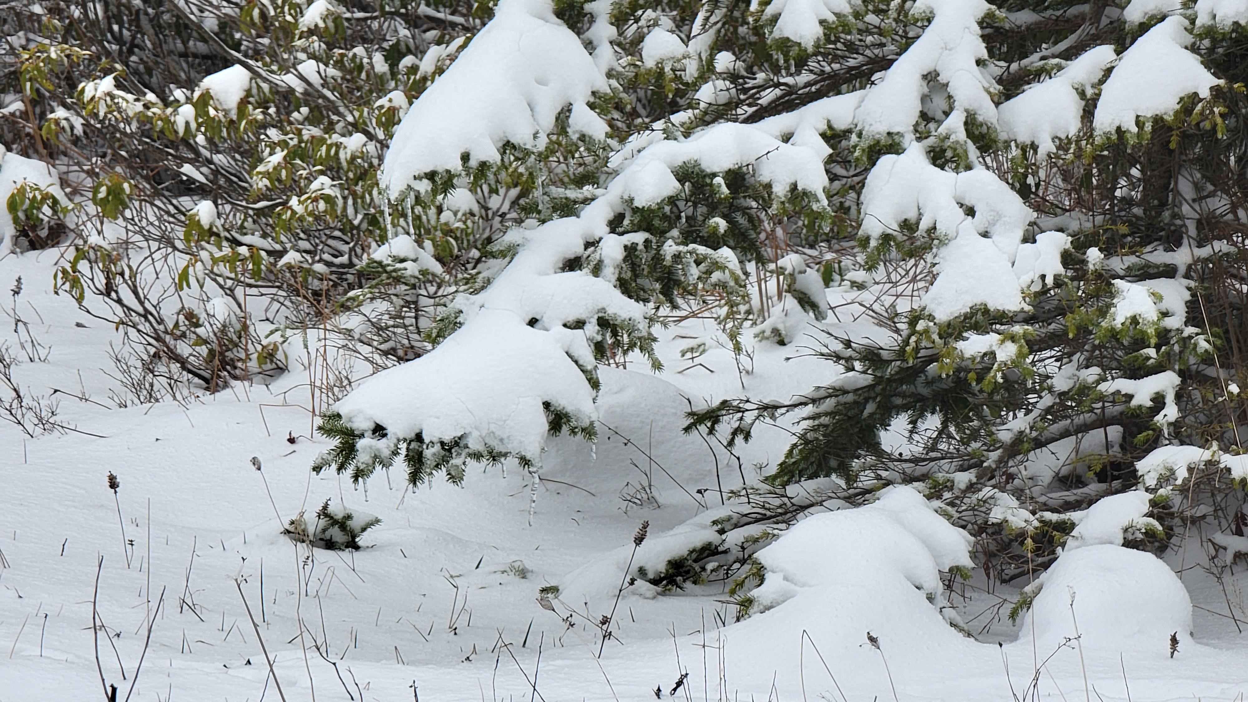 snow,sun,snow,sun, graupel,snow, sun. No rain, upper air plenty cold. High ground above 3500′ held snow cover, below it came and went