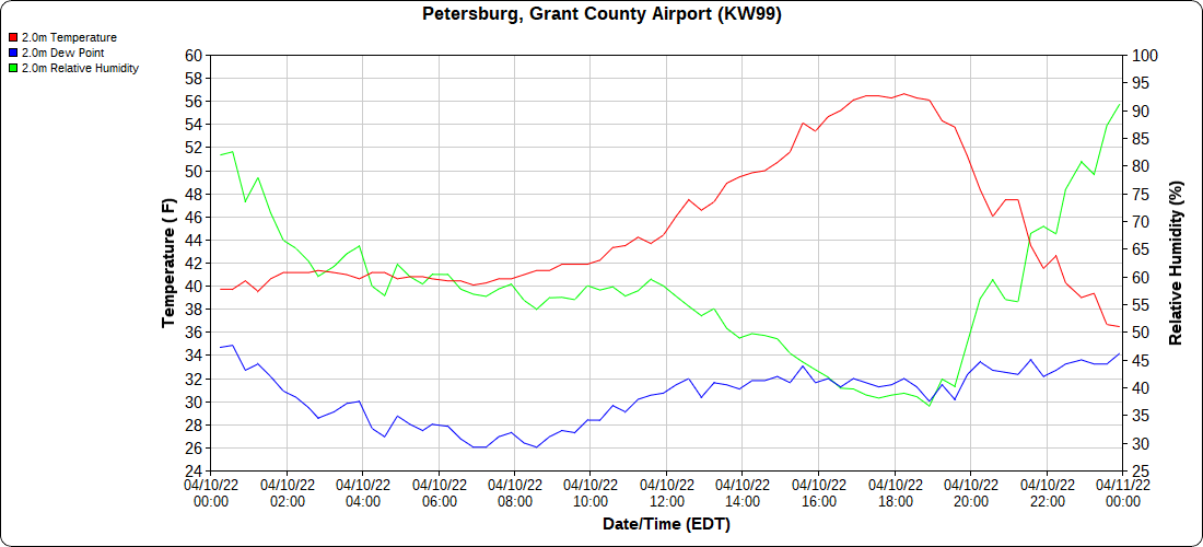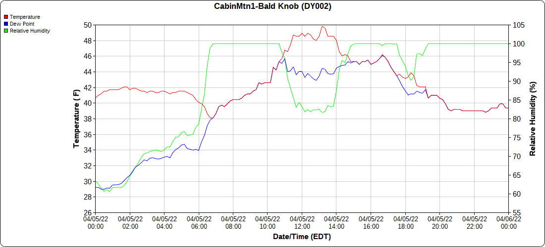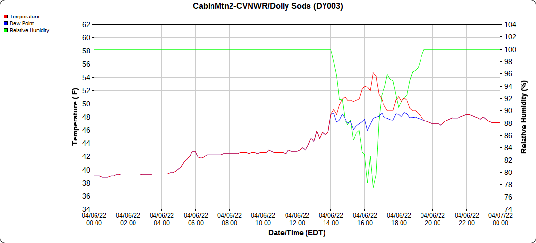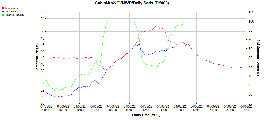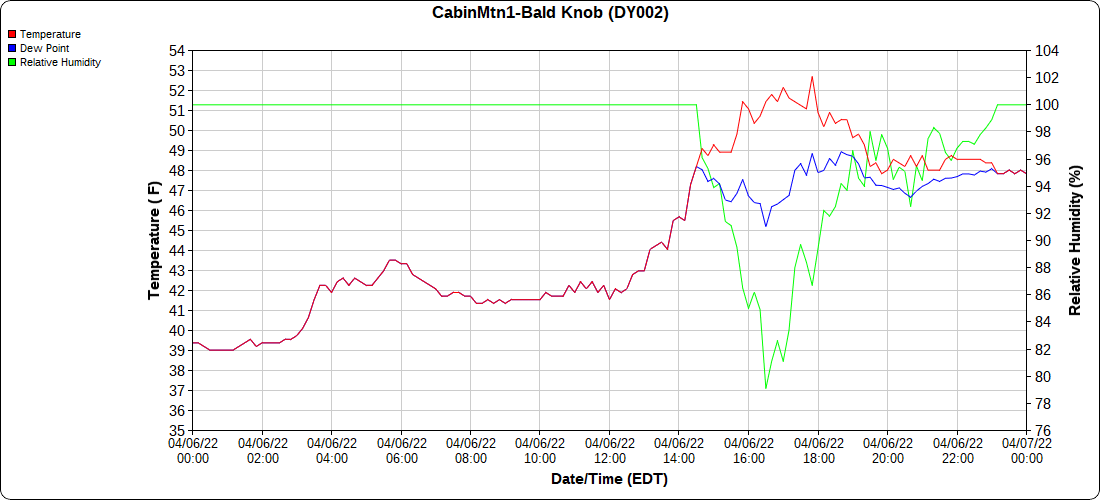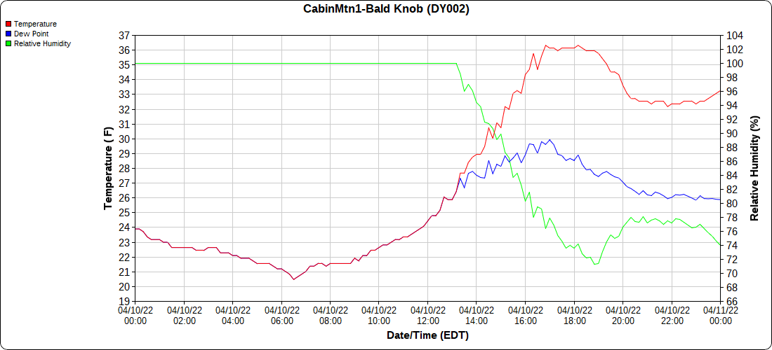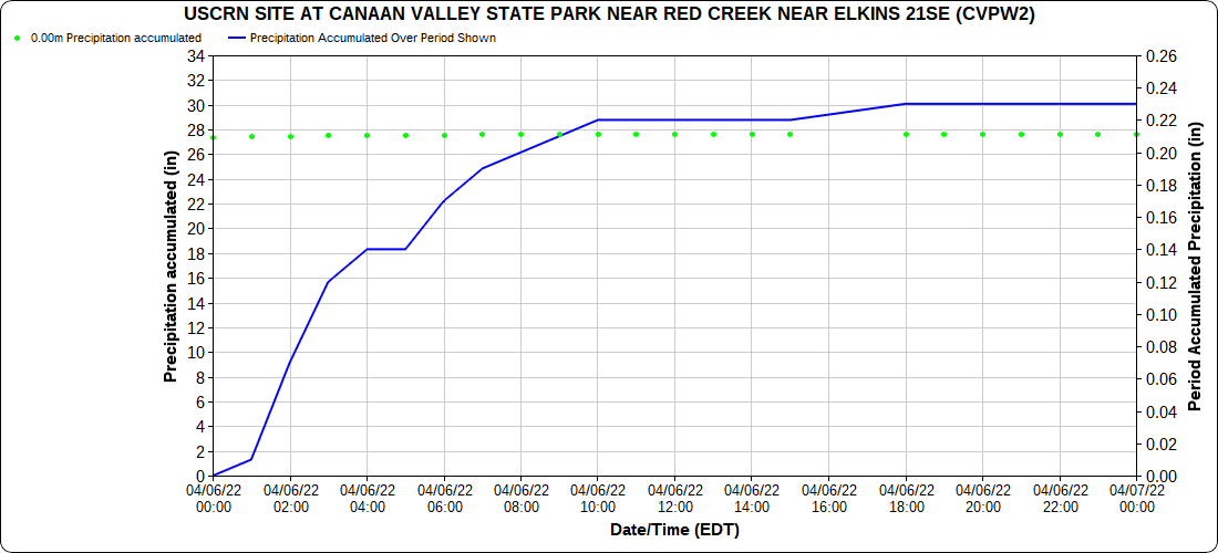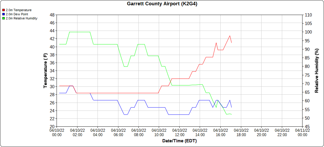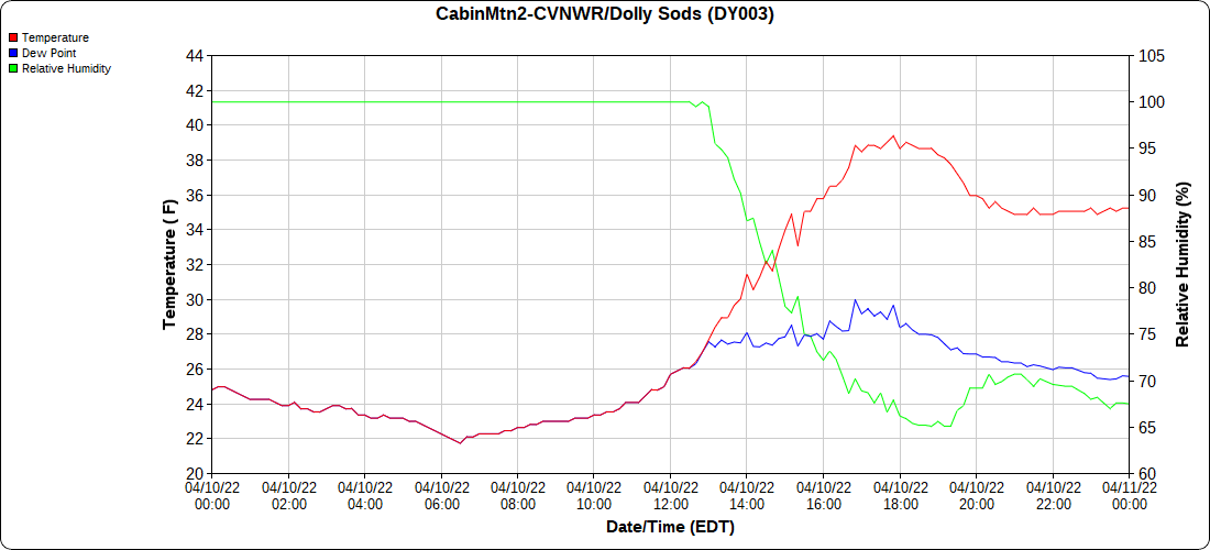 Dy007-Canaan Valley Refuge 3150′, Dy002-Cabin Mt at Bald Knob 4350′, Dy003-Cabin Mt-Western Sods 4035′, Dy004-Spruce Knob 4820′, Cvpw2-Climate Reference Network Canaan 3380′, KW99-Petersburg Grant County Airport 961′, K2G4 Garrett County Airport 2933′, KCBE Cumberland Airport 774′, KEKN Elkins Airport 1985′, KMGW Morgantown Airport 1227′