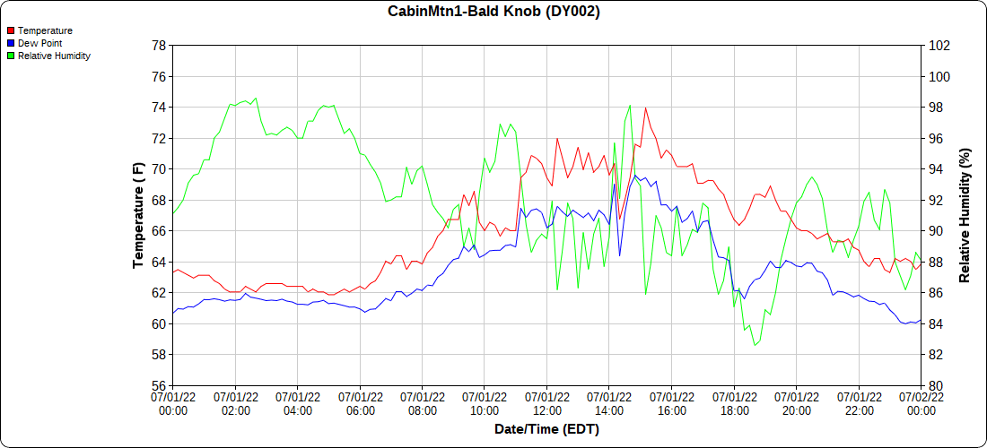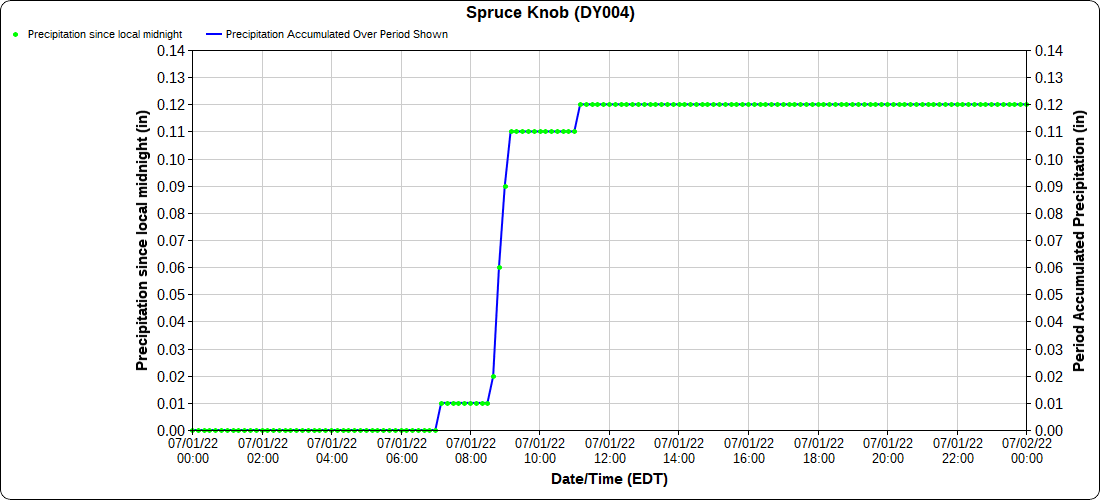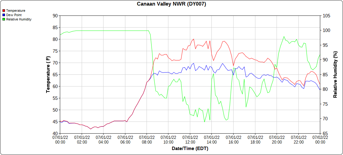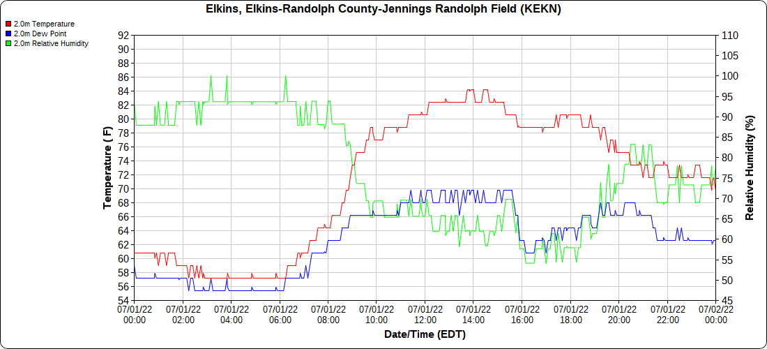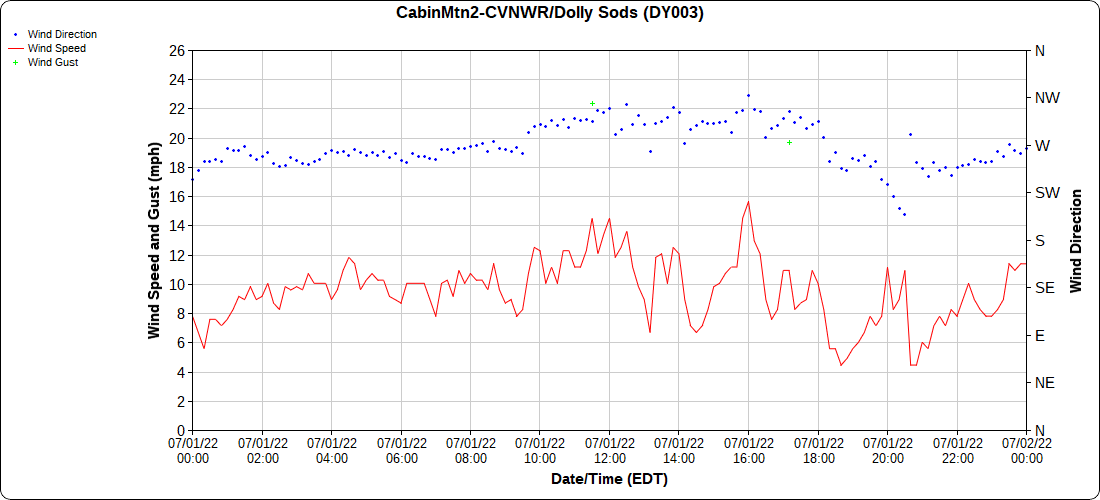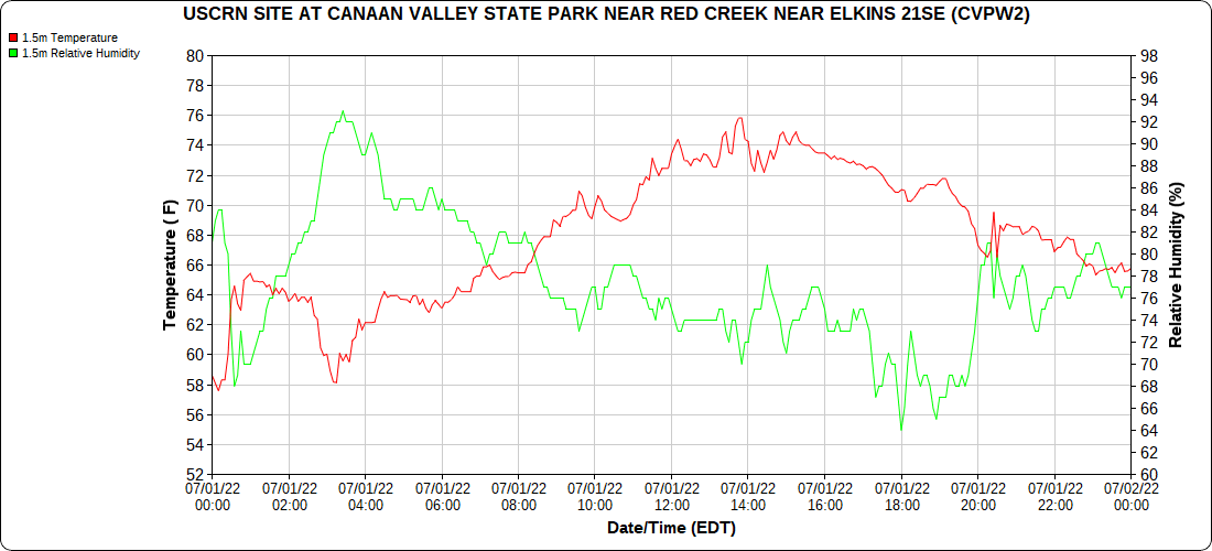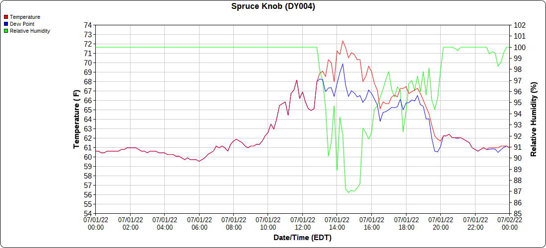 Dy007-Canaan Valley Refuge 3150′, Dy002-Cabin Mt at Bald Knob 4350′, Dy003-Cabin Mt-Western Sods 4035′, Dy004-Spruce Knob 4820′, Cvpw2-Climate Reference Network Canaan 3380′, KW99-Petersburg Grant County Airport 961, K2G4 Garrett County Airport 2933′, KCBE Cumberland Airport 774′, KEKN Elkins Airport 1985′, KMGW Morgantown Airport 1227′