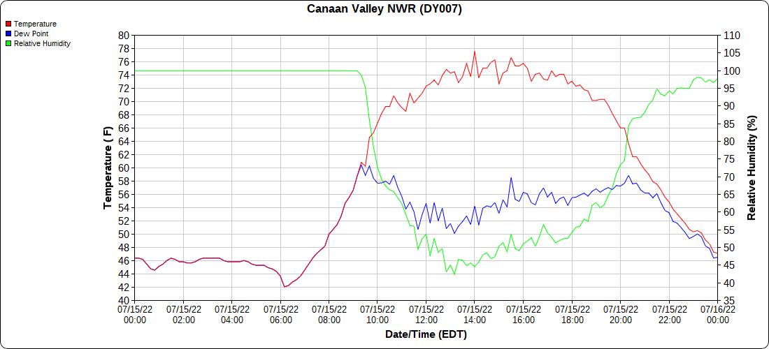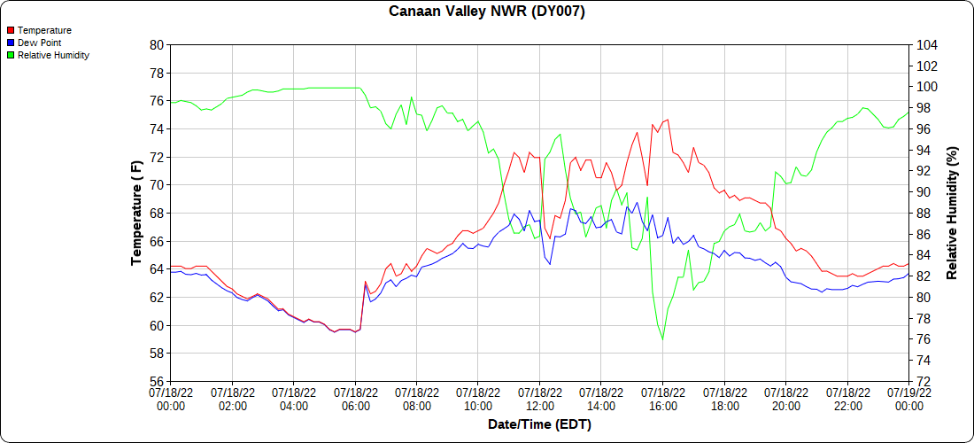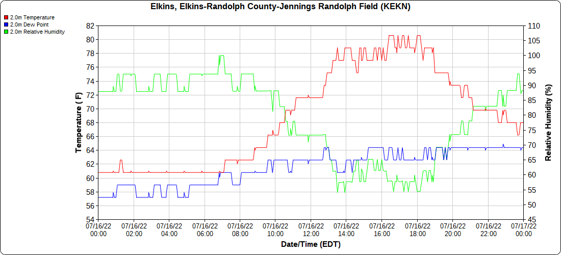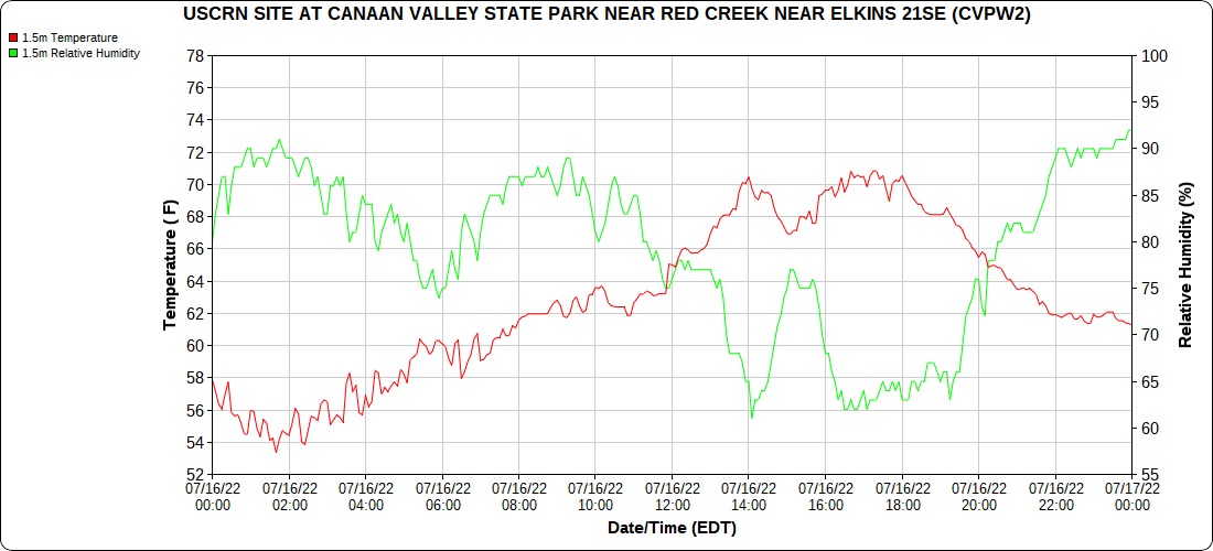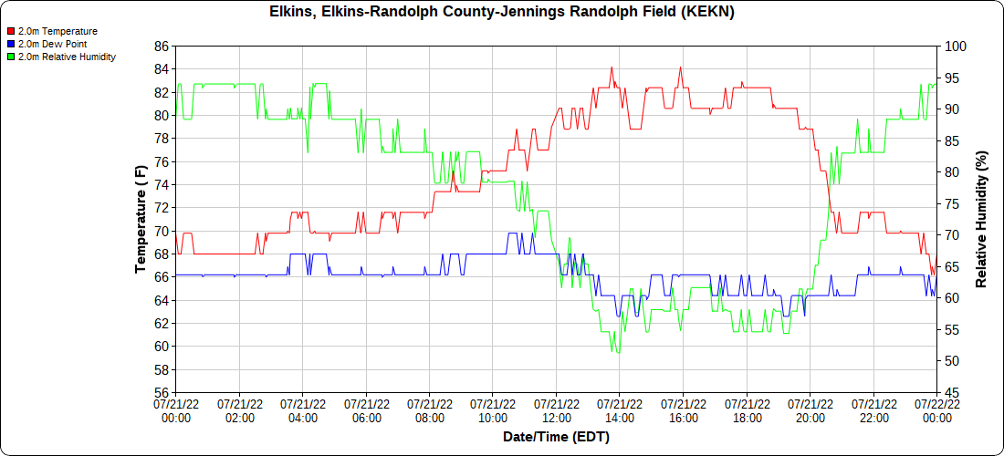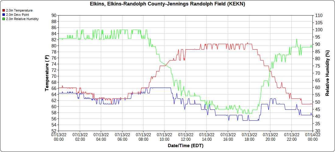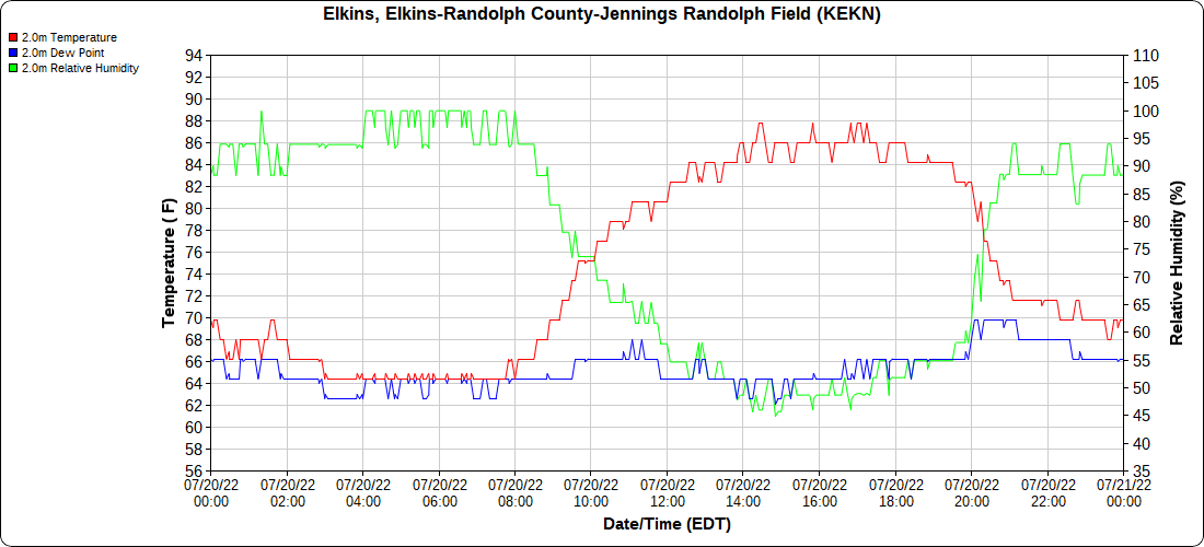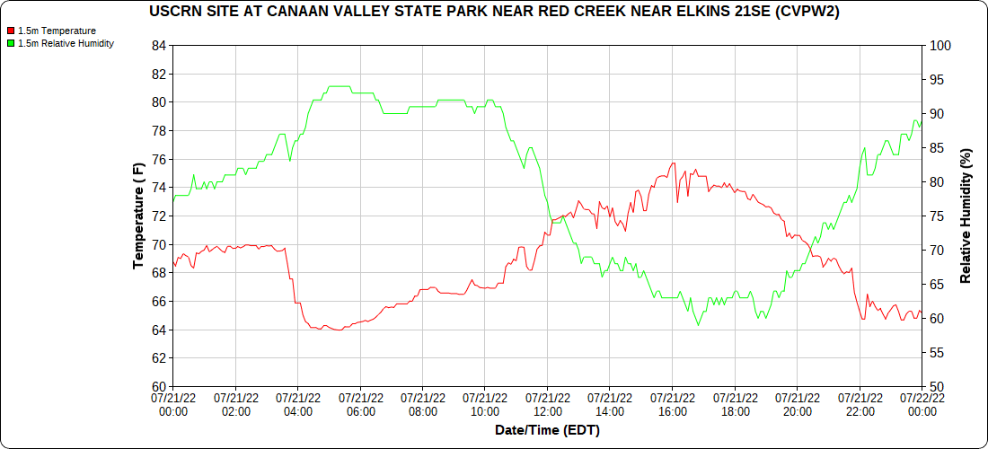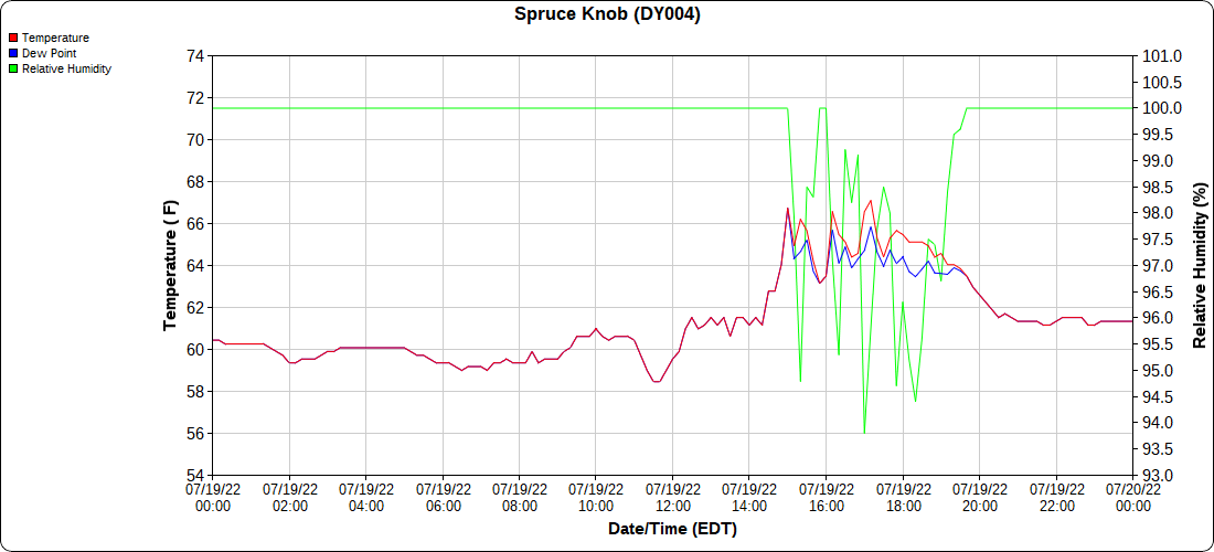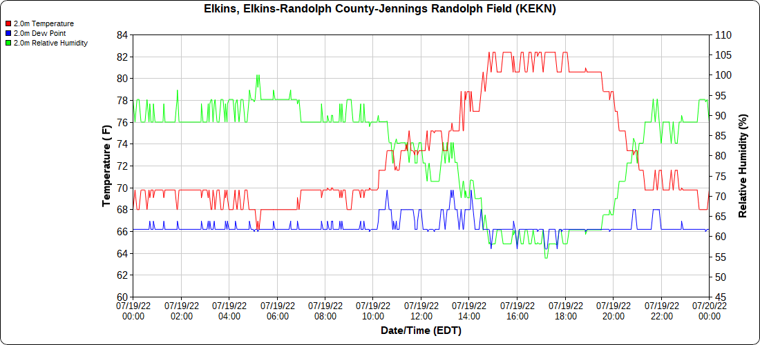 Dy007-Canaan Valley Refuge 3150′, Dy002-Cabin Mt at Bald Knob 4350′, Dy003-Cabin Mt-Western Sods 4035′, Dy004-Spruce Knob 4820′, Cvpw2-Climate Reference Network Canaan 3380′, KW99-Petersburg Grant County Airport 961, K2G4 Garrett County Airport 2933′, KCBE Cumberland Airport 774′, KEKN Elkins Airport 1985′, KMGW Morgantown Airport 1227′, PMN16-Mt. Davis 3038′