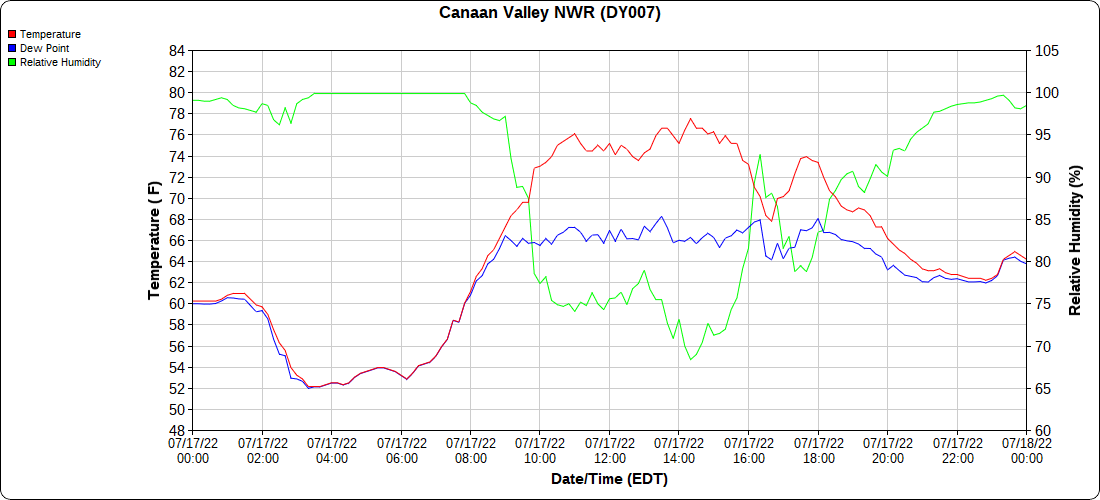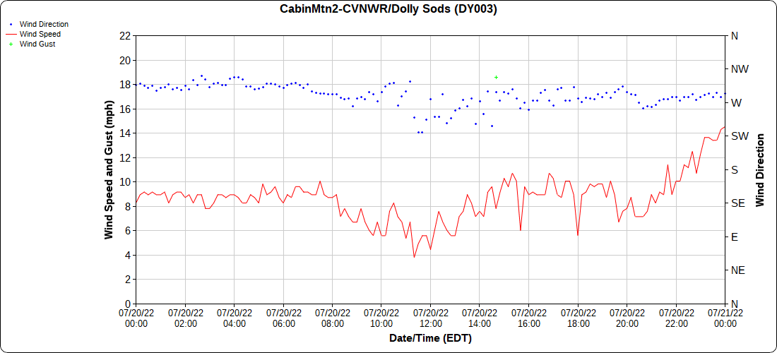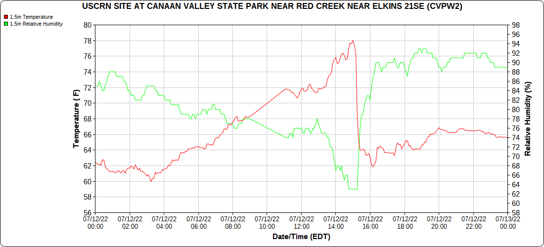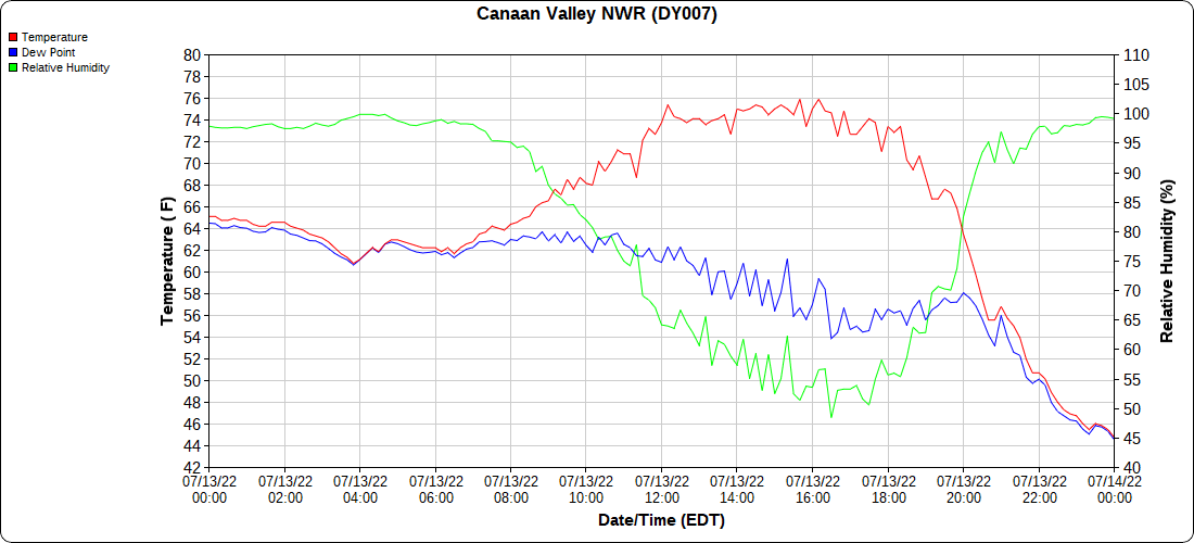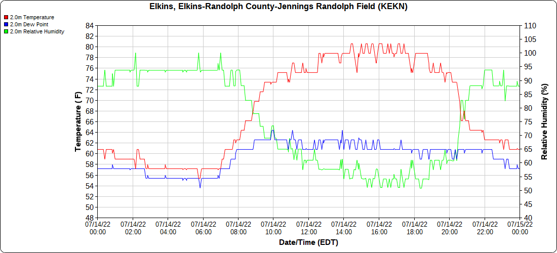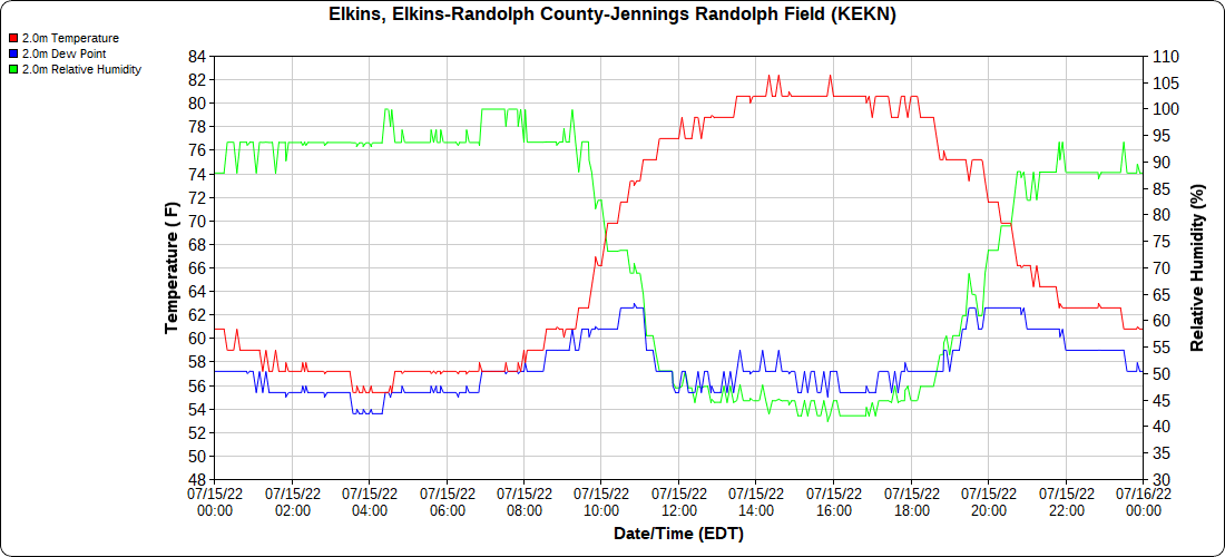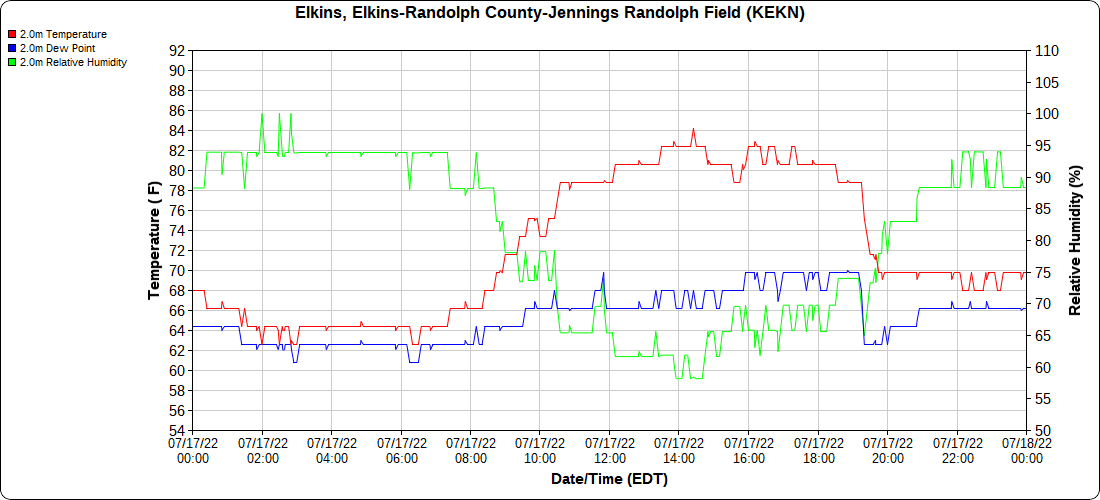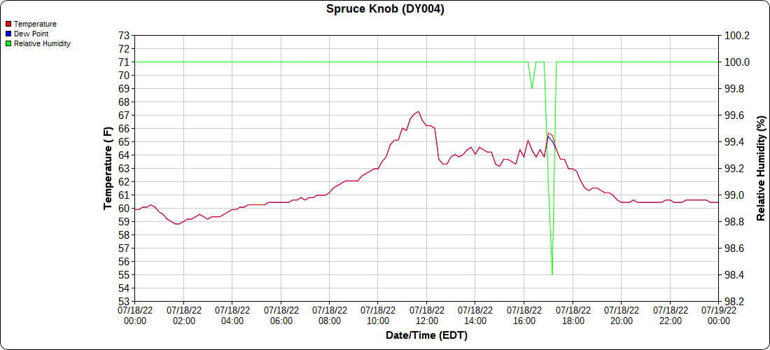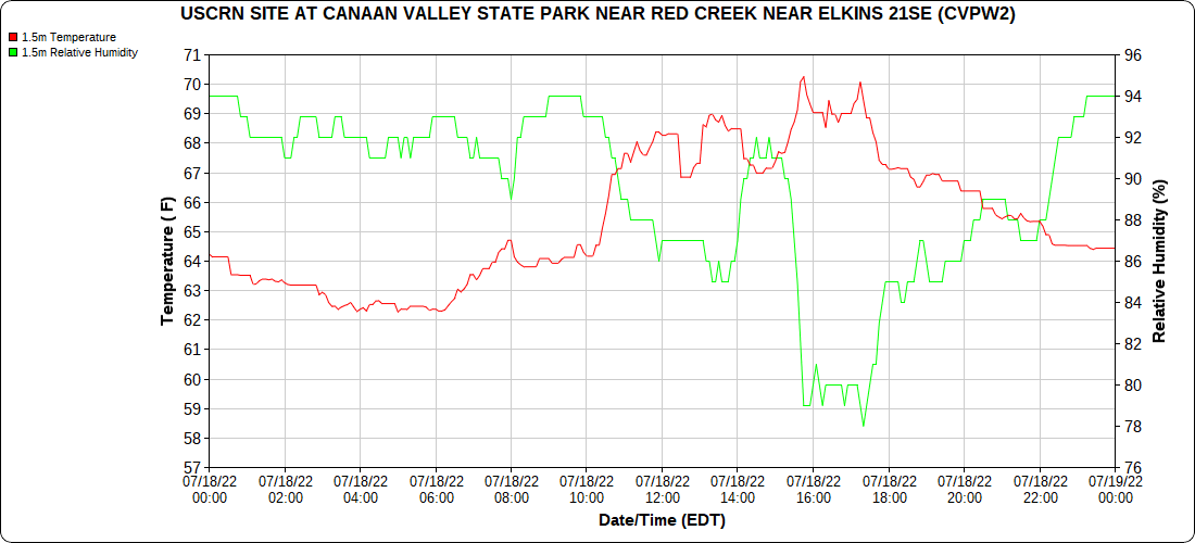 Dy007-Canaan Valley Refuge 3150′, Dy002-Cabin Mt at Bald Knob 4350′, Dy003-Cabin Mt-Western Sods 4035′, Dy004-Spruce Knob 4820′, Cvpw2-Climate Reference Network Canaan 3380′, KW99-Petersburg Grant County Airport 961, K2G4 Garrett County Airport 2933′, KCBE Cumberland Airport 774′, KEKN Elkins Airport 1985′, KMGW Morgantown Airport 1227′, PMN16-Mt. Davis 3038′