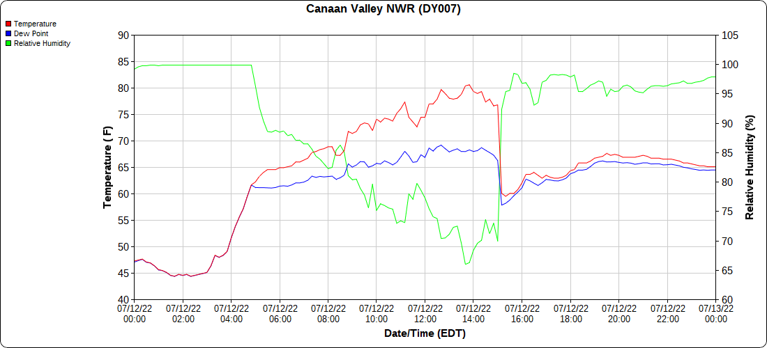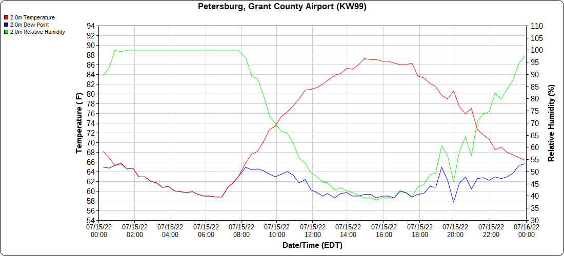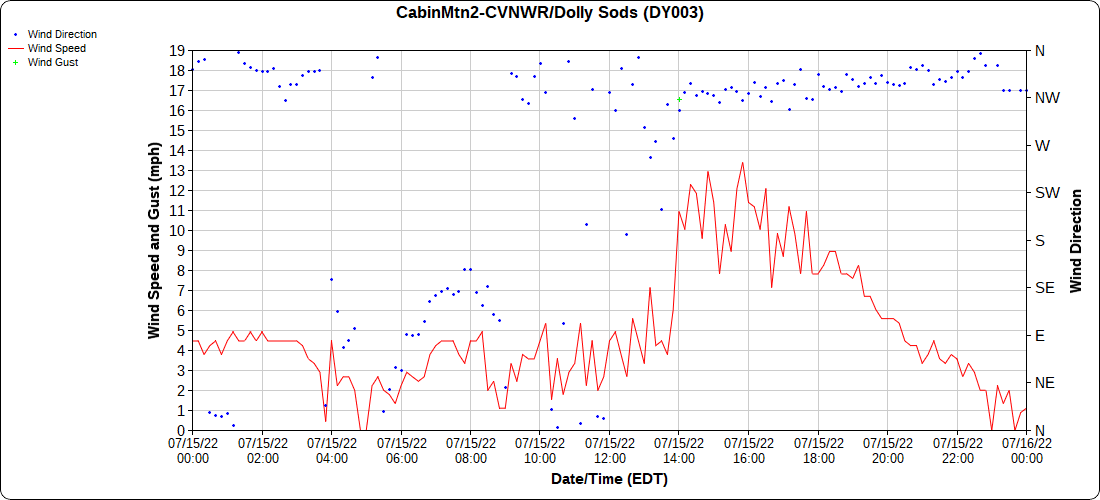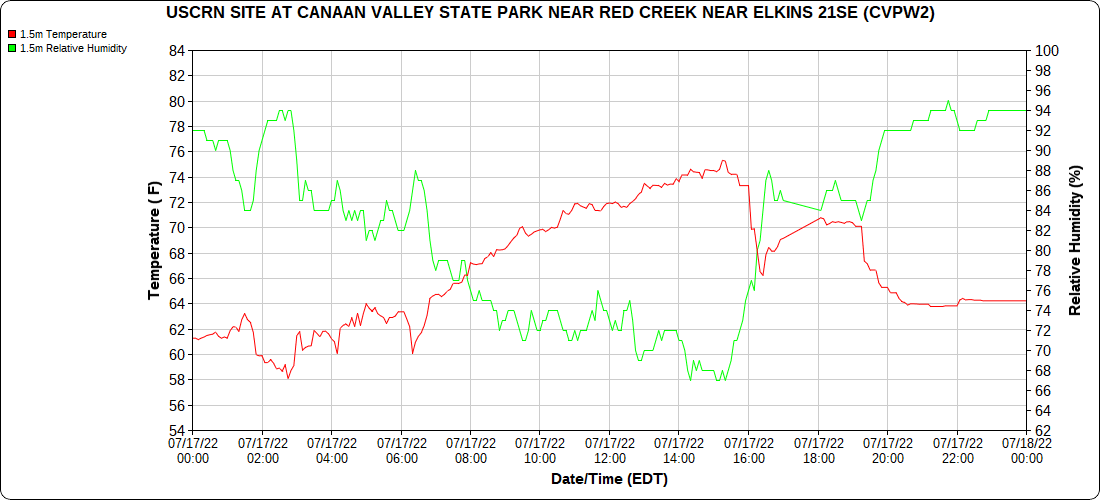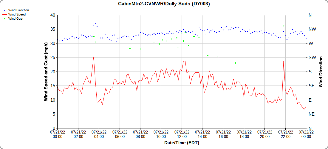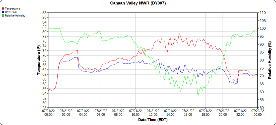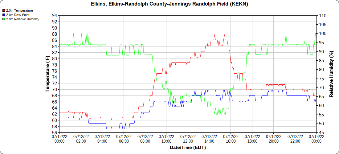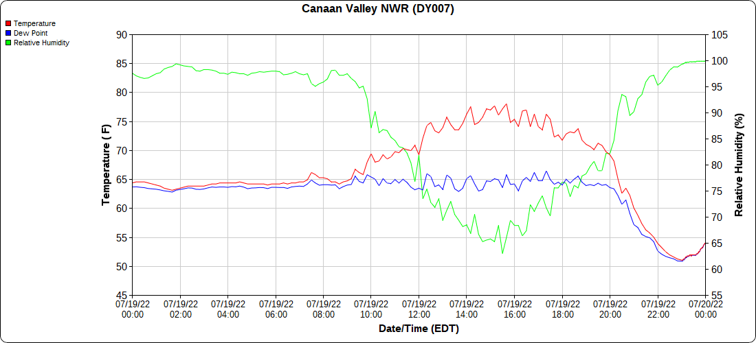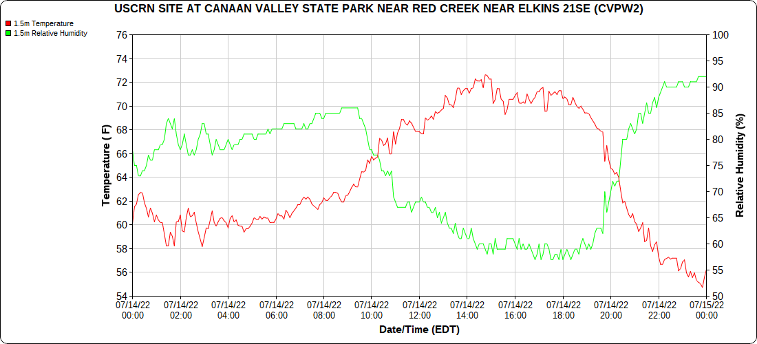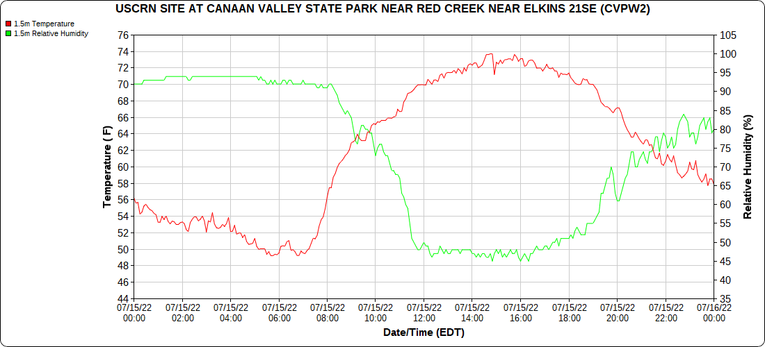 Dy007-Canaan Valley Refuge 3150′, Dy002-Cabin Mt at Bald Knob 4350′, Dy003-Cabin Mt-Western Sods 4035′, Dy004-Spruce Knob 4820′, Cvpw2-Climate Reference Network Canaan 3380′, KW99-Petersburg Grant County Airport 961, K2G4 Garrett County Airport 2933′, KCBE Cumberland Airport 774′, KEKN Elkins Airport 1985′, KMGW Morgantown Airport 1227′, PMN16-Mt. Davis 3038′