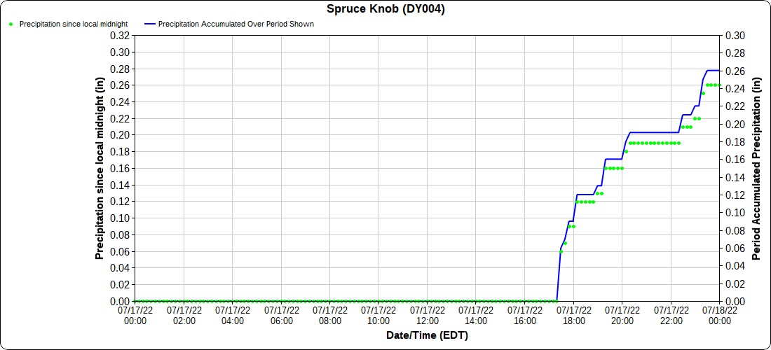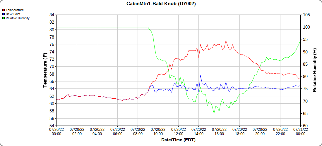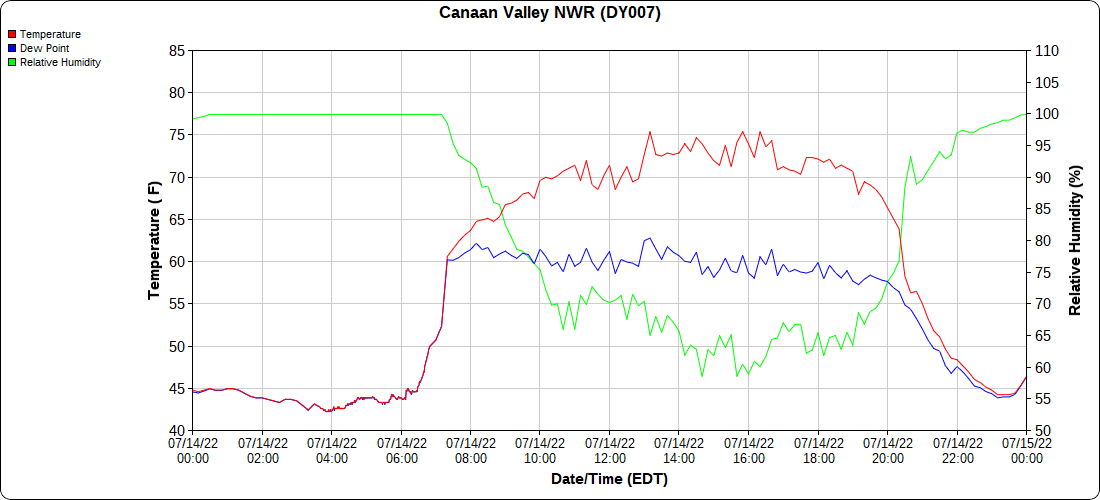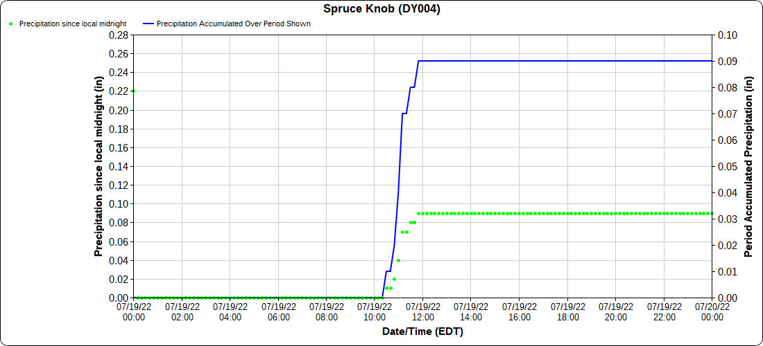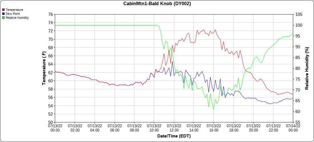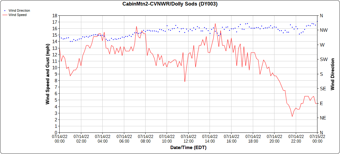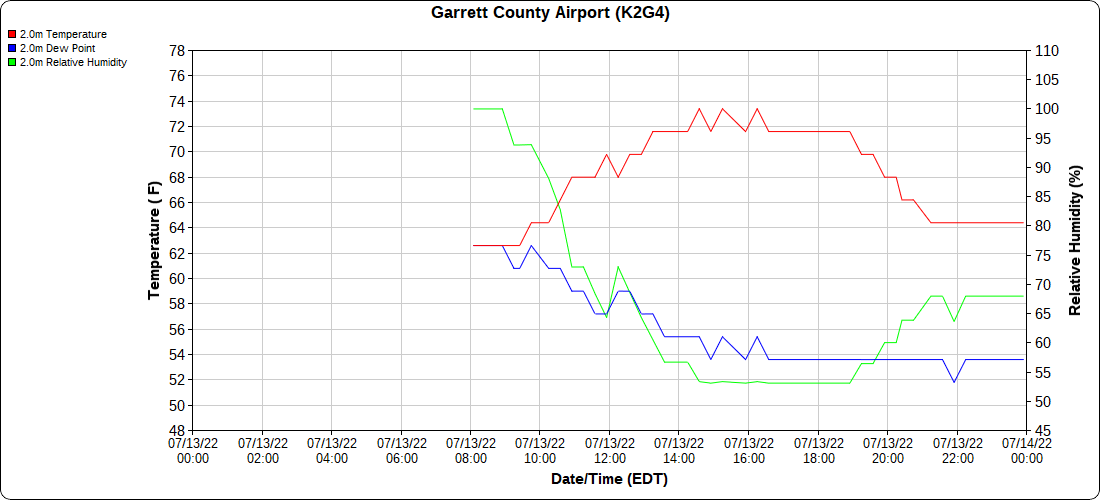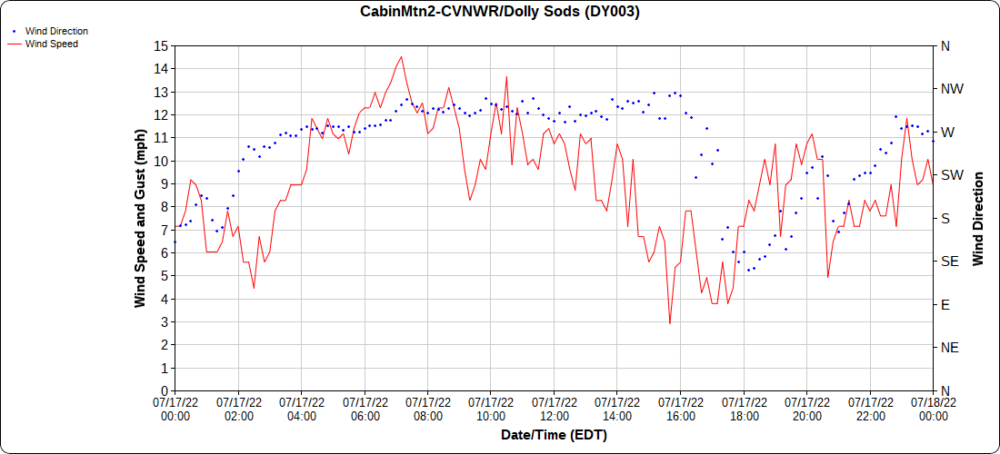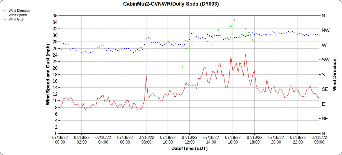 Dy007-Canaan Valley Refuge 3150′, Dy002-Cabin Mt at Bald Knob 4350′, Dy003-Cabin Mt-Western Sods 4035′, Dy004-Spruce Knob 4820′, Cvpw2-Climate Reference Network Canaan 3380′, KW99-Petersburg Grant County Airport 961, K2G4 Garrett County Airport 2933′, KCBE Cumberland Airport 774′, KEKN Elkins Airport 1985′, KMGW Morgantown Airport 1227′, PMN16-Mt. Davis 3038′