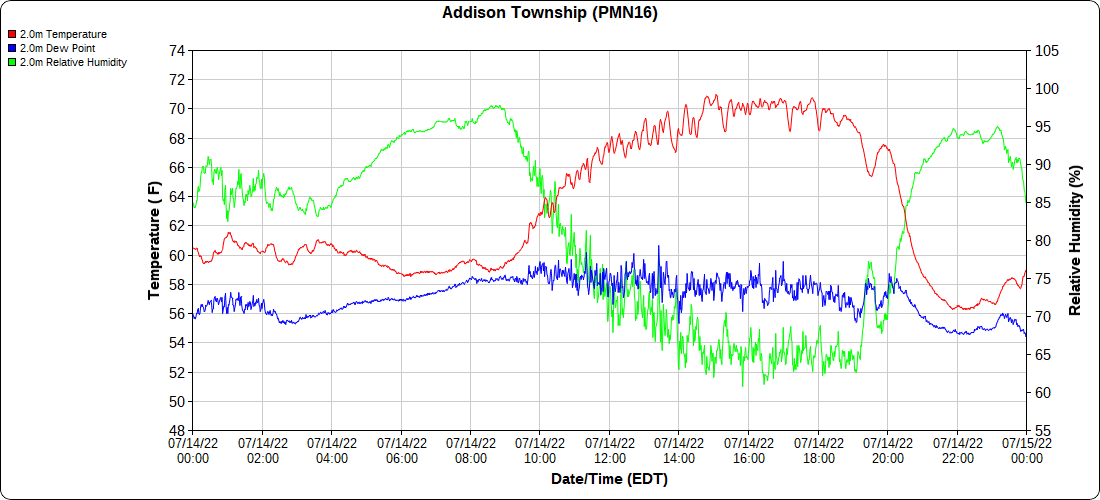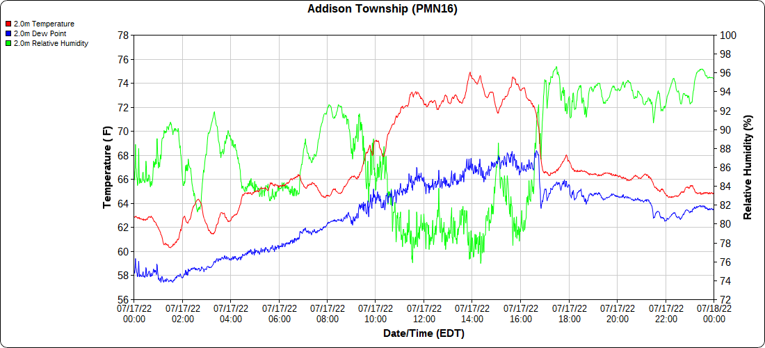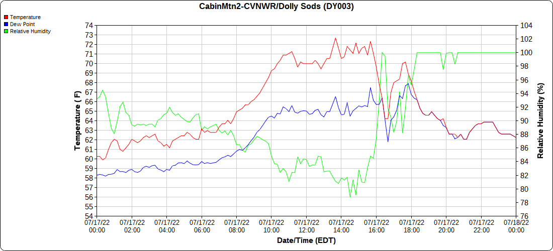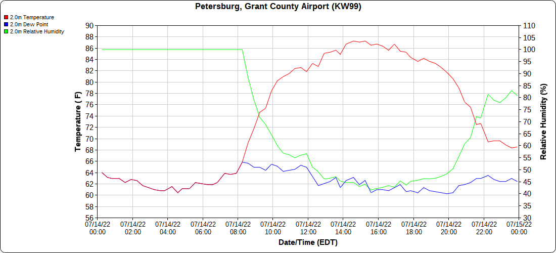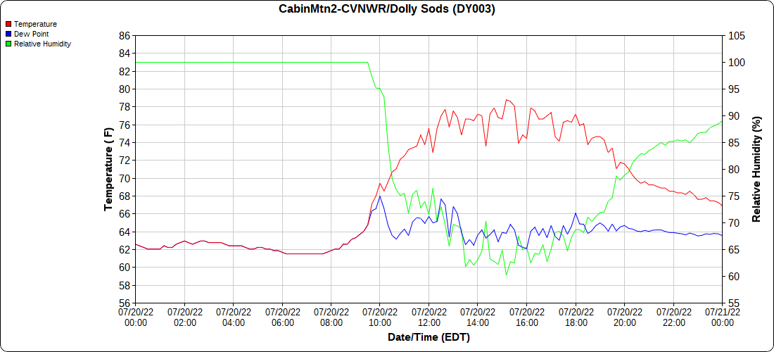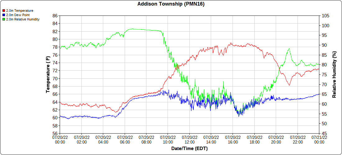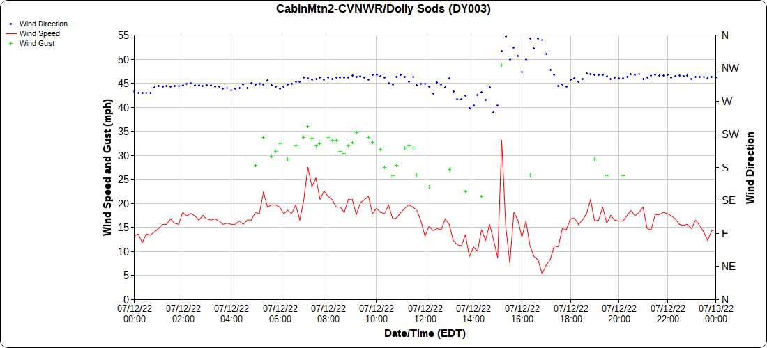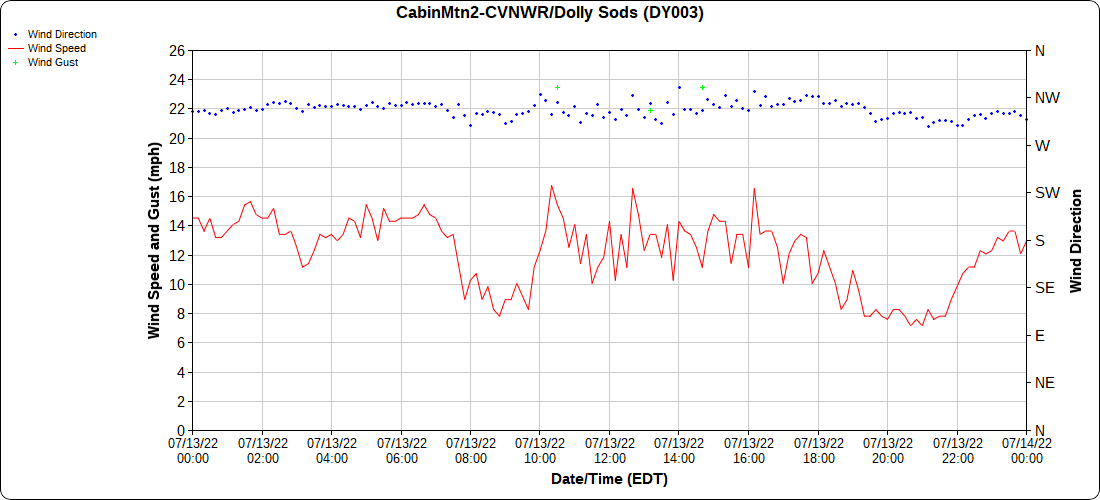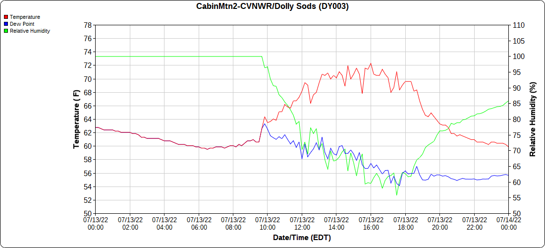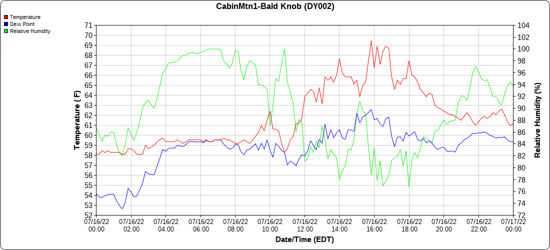 Dy007-Canaan Valley Refuge 3150′, Dy002-Cabin Mt at Bald Knob 4350′, Dy003-Cabin Mt-Western Sods 4035′, Dy004-Spruce Knob 4820′, Cvpw2-Climate Reference Network Canaan 3380′, KW99-Petersburg Grant County Airport 961, K2G4 Garrett County Airport 2933′, KCBE Cumberland Airport 774′, KEKN Elkins Airport 1985′, KMGW Morgantown Airport 1227′, PMN16-Mt. Davis 3038′
