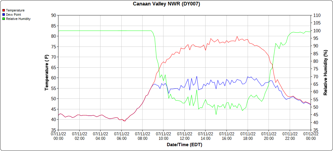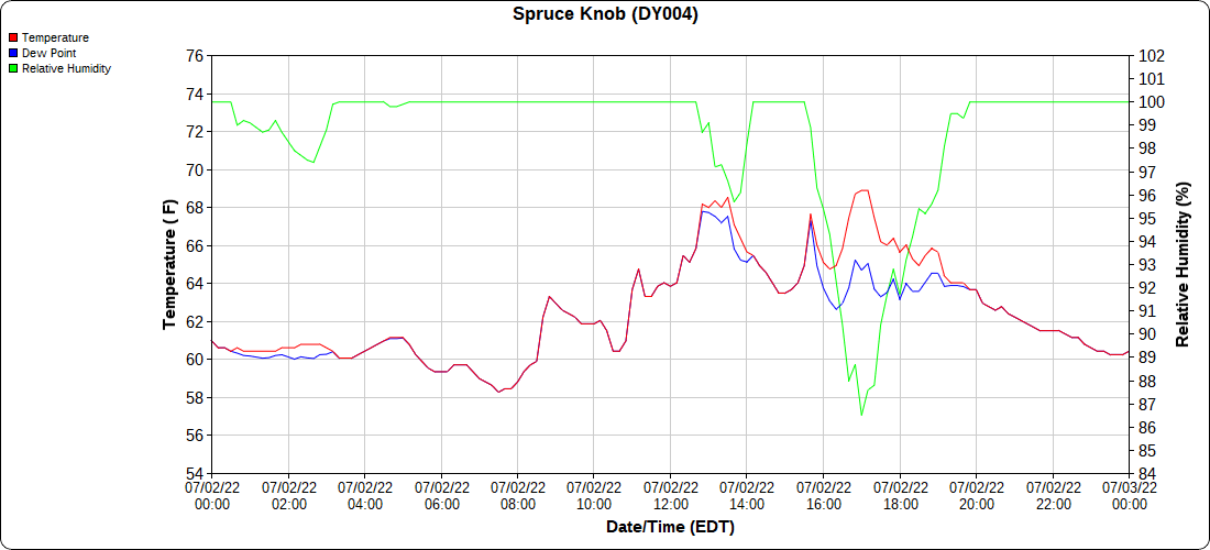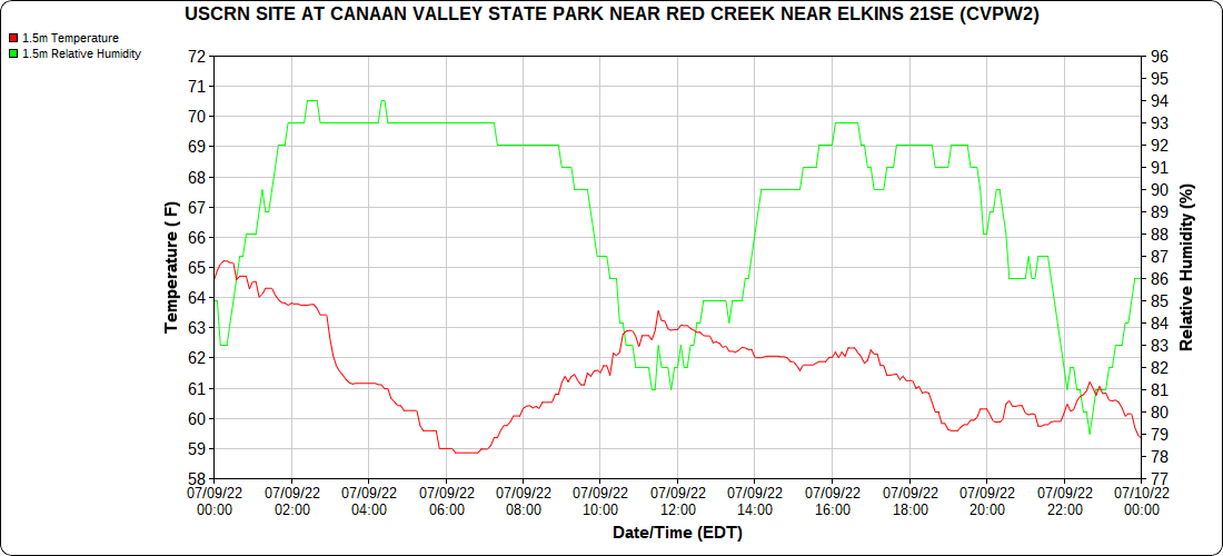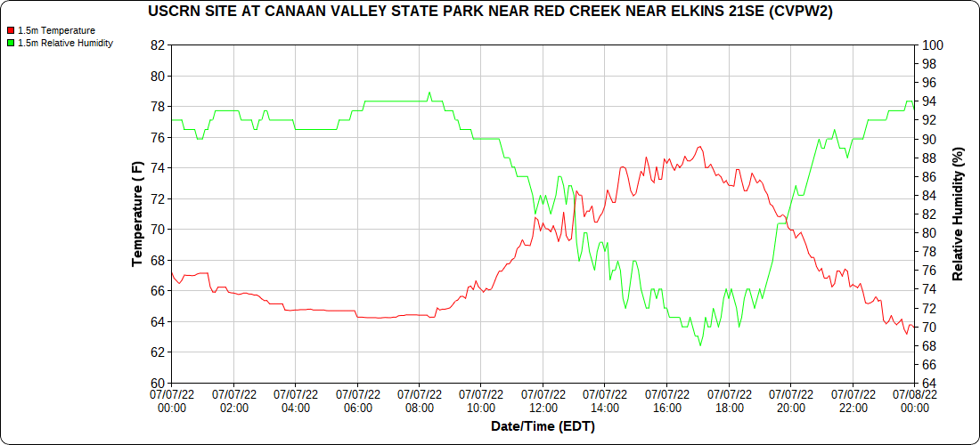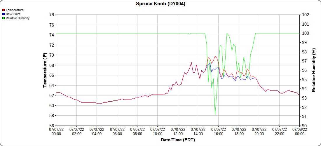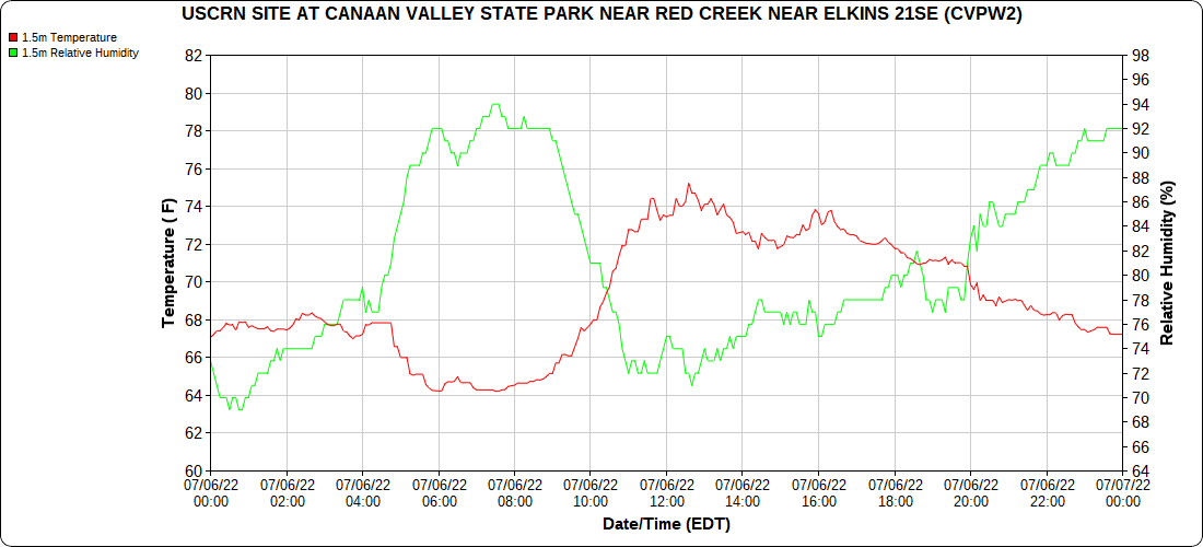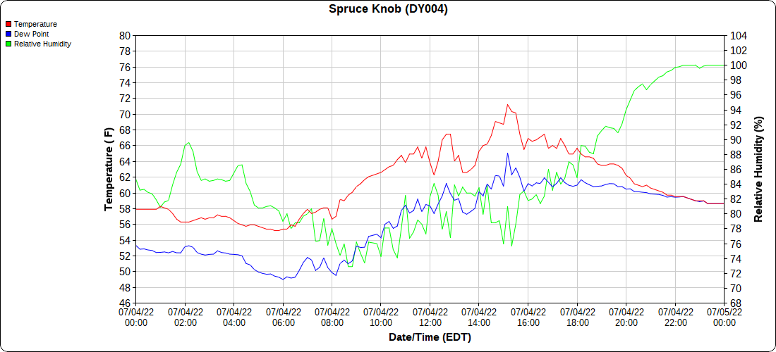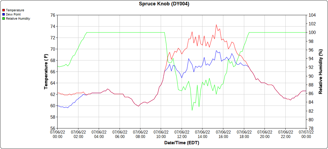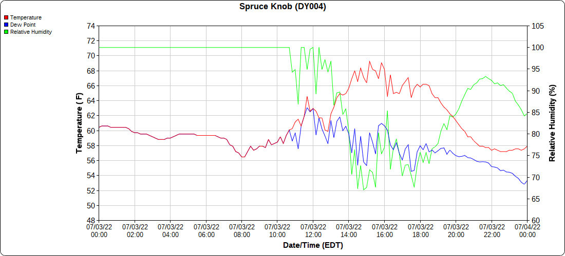 Dy007-Canaan Valley Refuge 3150′, Dy002-Cabin Mt at Bald Knob 4350′, Dy003-Cabin Mt-Western Sods 4035′, Dy004-Spruce Knob 4820′, Cvpw2-Climate Reference Network Canaan 3380′, KW99-Petersburg Grant County Airport 961, K2G4 Garrett County Airport 2933′, KCBE Cumberland Airport 774′, KEKN Elkins Airport 1985′, KMGW Morgantown Airport 1227′, PMN16′-Mt.Davis 3038′