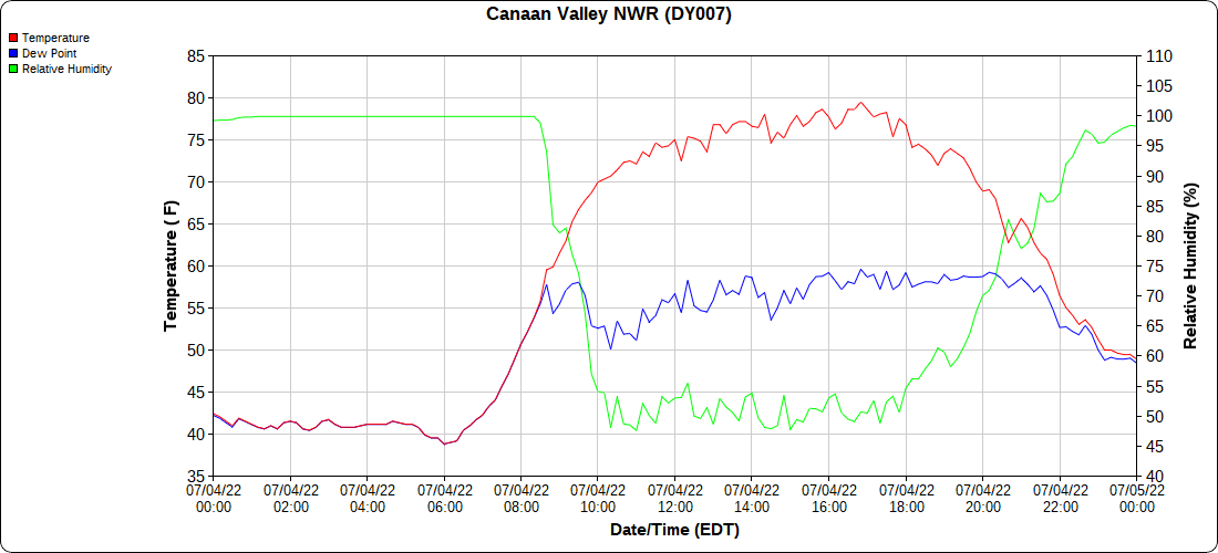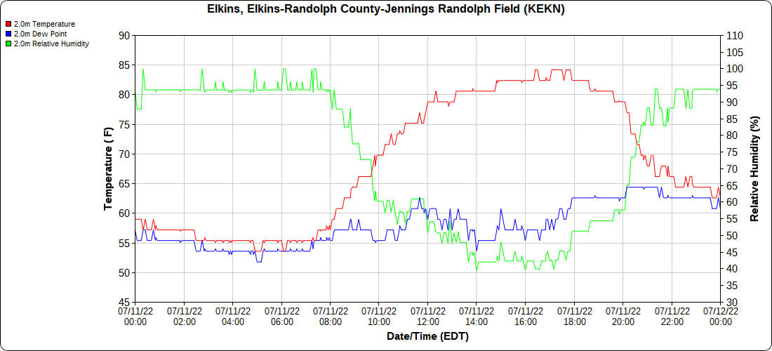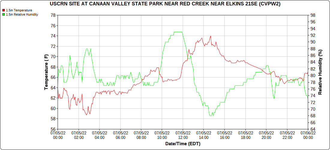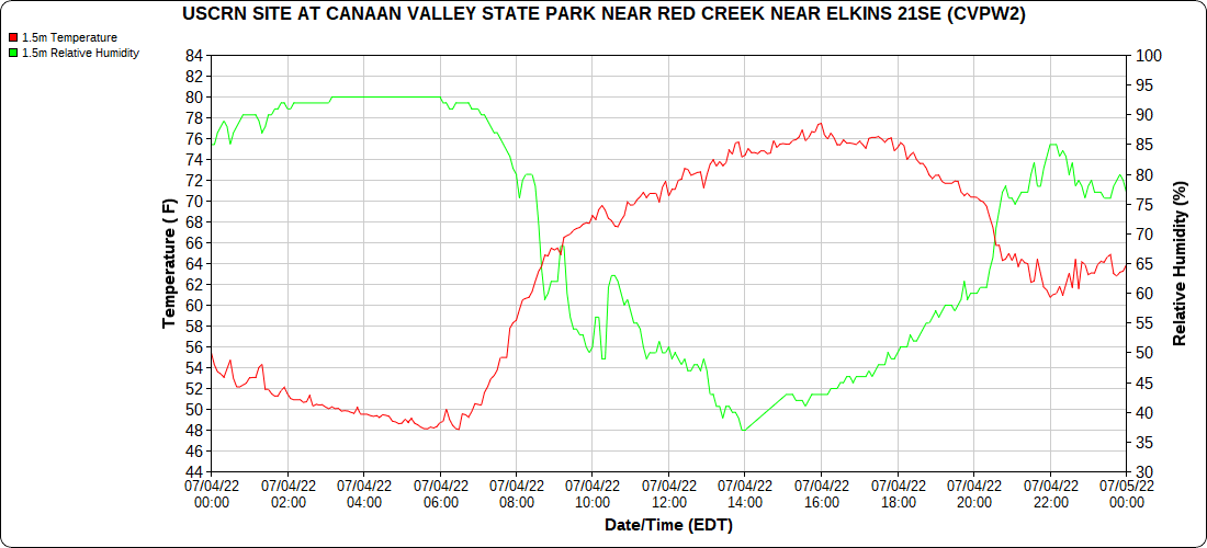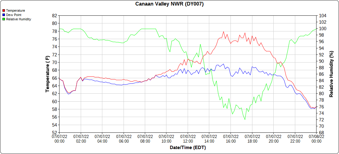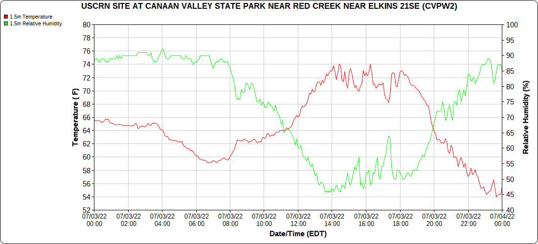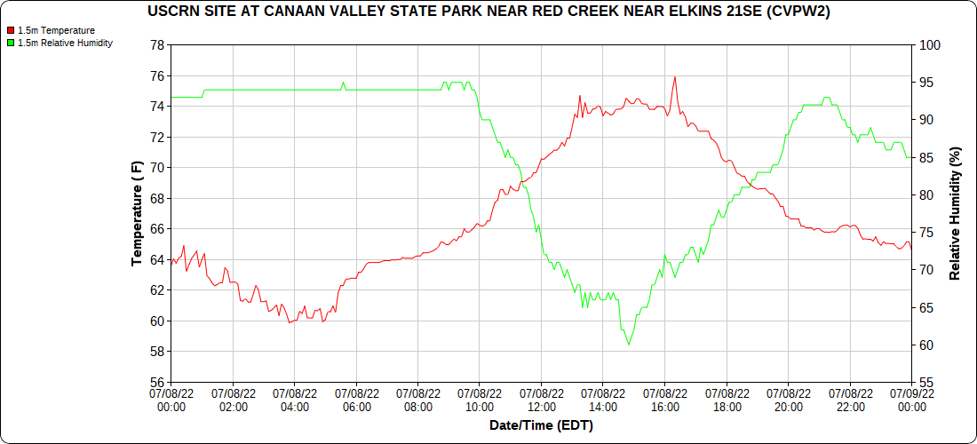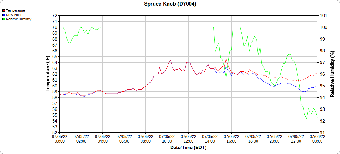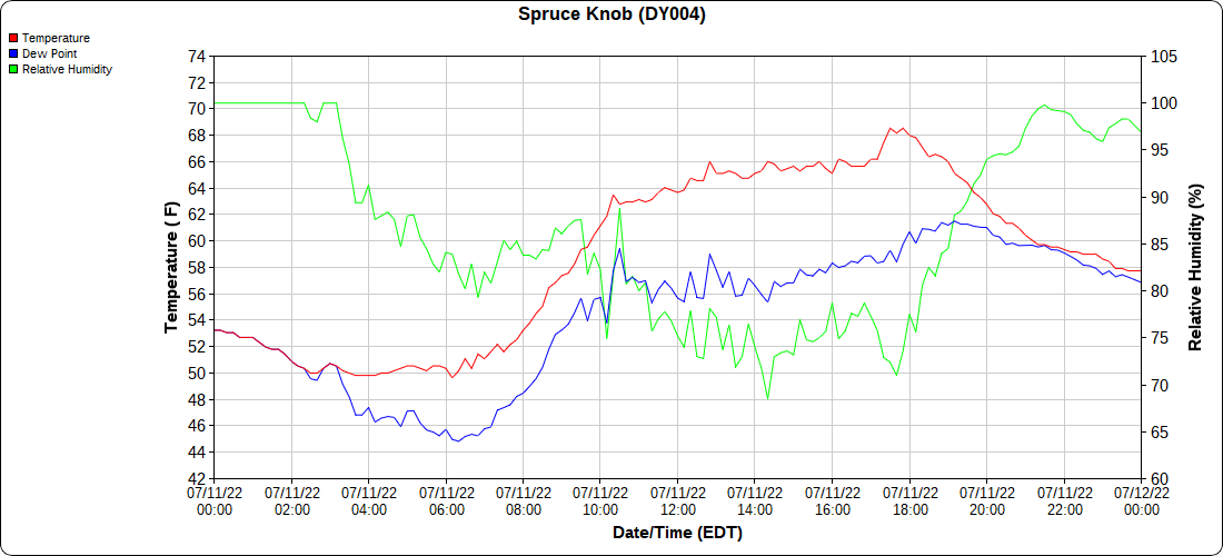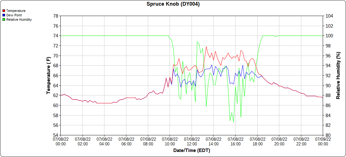 Dy007-Canaan Valley Refuge 3150′, Dy002-Cabin Mt at Bald Knob 4350′, Dy003-Cabin Mt-Western Sods 4035′, Dy004-Spruce Knob 4820′, Cvpw2-Climate Reference Network Canaan 3380′, KW99-Petersburg Grant County Airport 961, K2G4 Garrett County Airport 2933′, KCBE Cumberland Airport 774′, KEKN Elkins Airport 1985′, KMGW Morgantown Airport 1227′, PMN16′-Mt.Davis 3038′