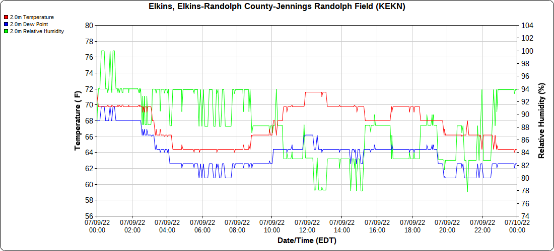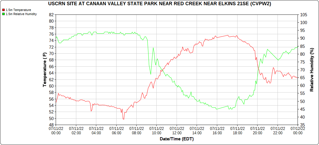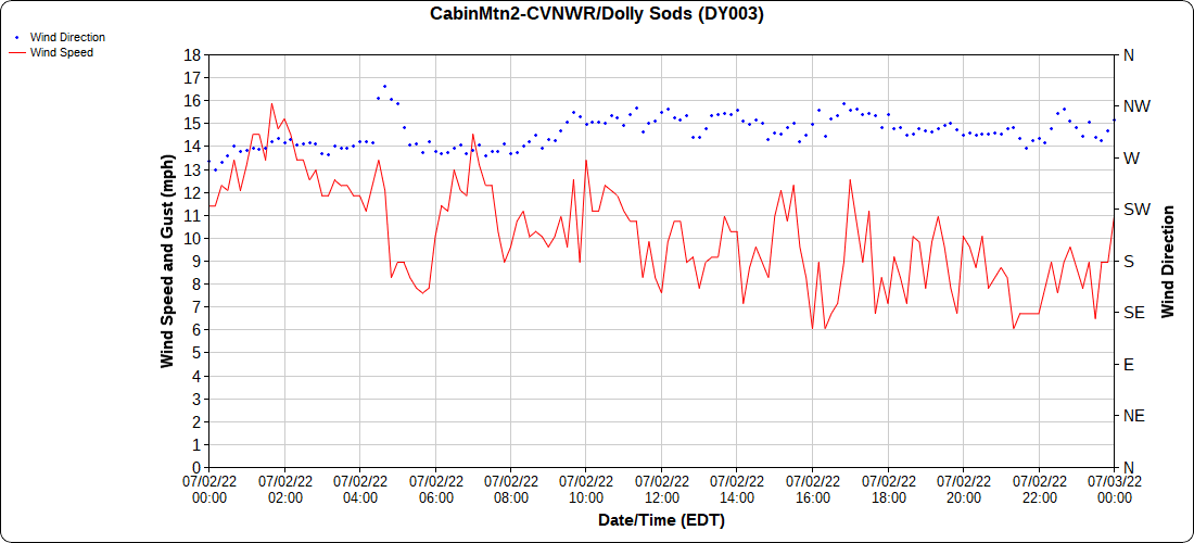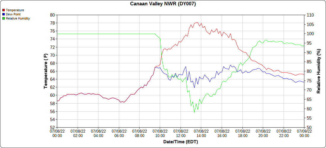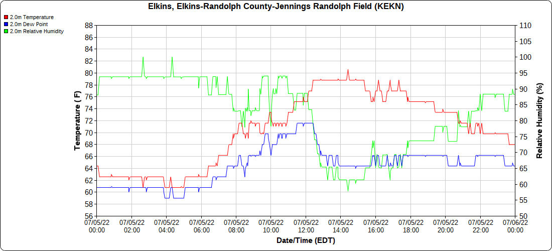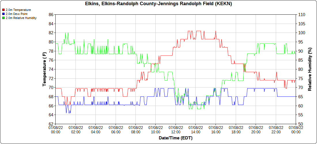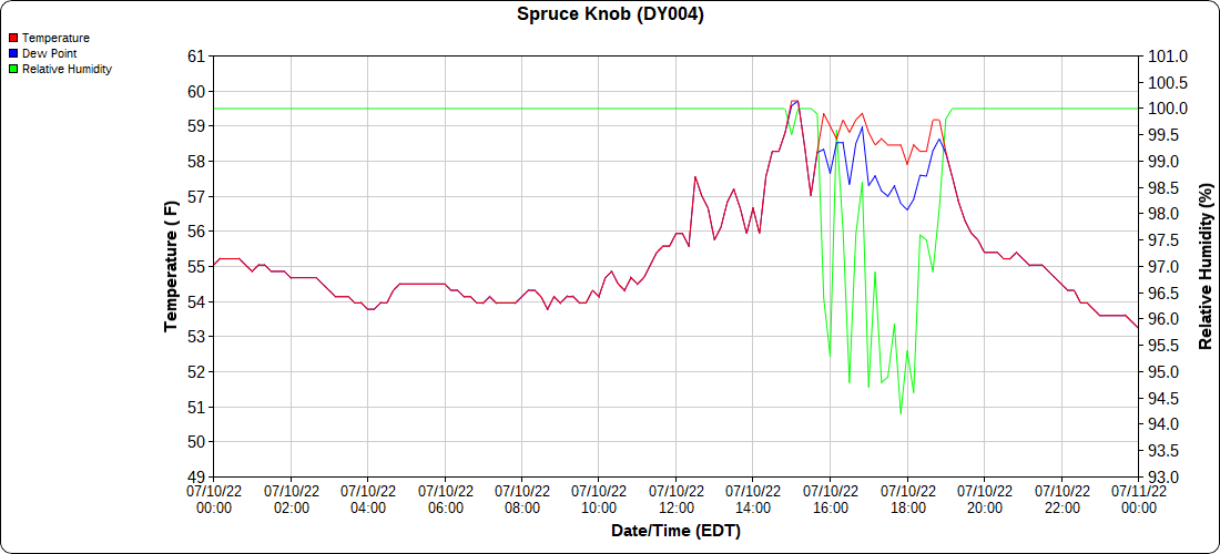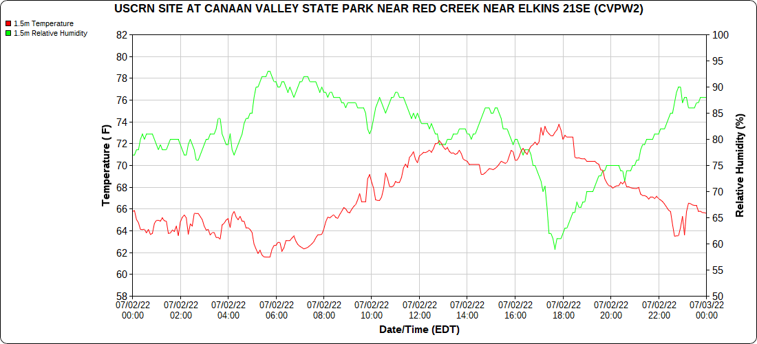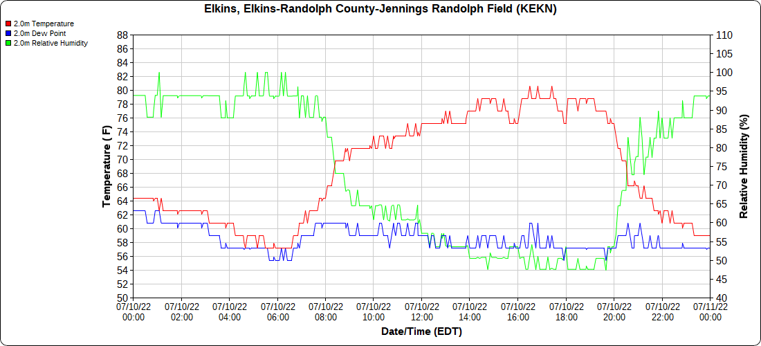 Dy007-Canaan Valley Refuge 3150′, Dy002-Cabin Mt at Bald Knob 4350′, Dy003-Cabin Mt-Western Sods 4035′, Dy004-Spruce Knob 4820′, Cvpw2-Climate Reference Network Canaan 3380′, KW99-Petersburg Grant County Airport 961, K2G4 Garrett County Airport 2933′, KCBE Cumberland Airport 774′, KEKN Elkins Airport 1985′, KMGW Morgantown Airport 1227′, PMN16′-Mt.Davis 3038′