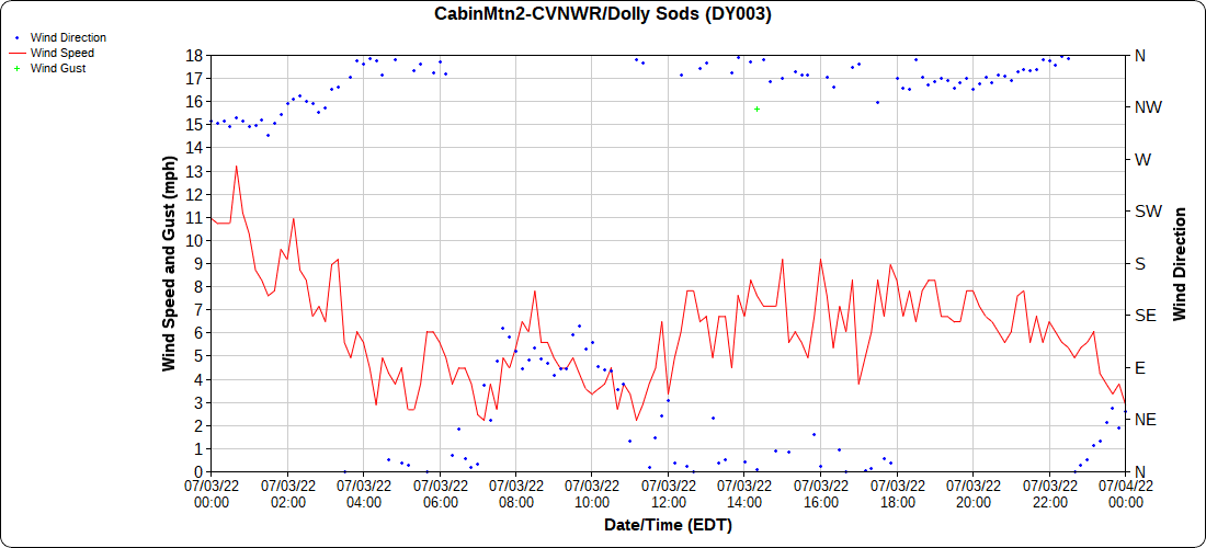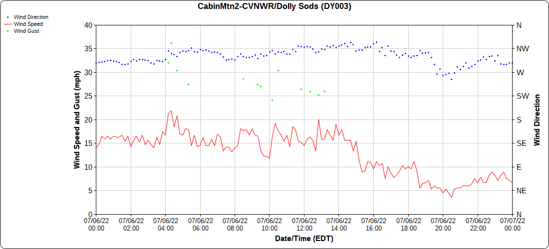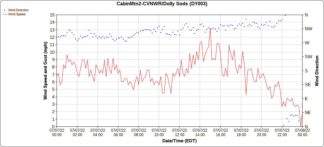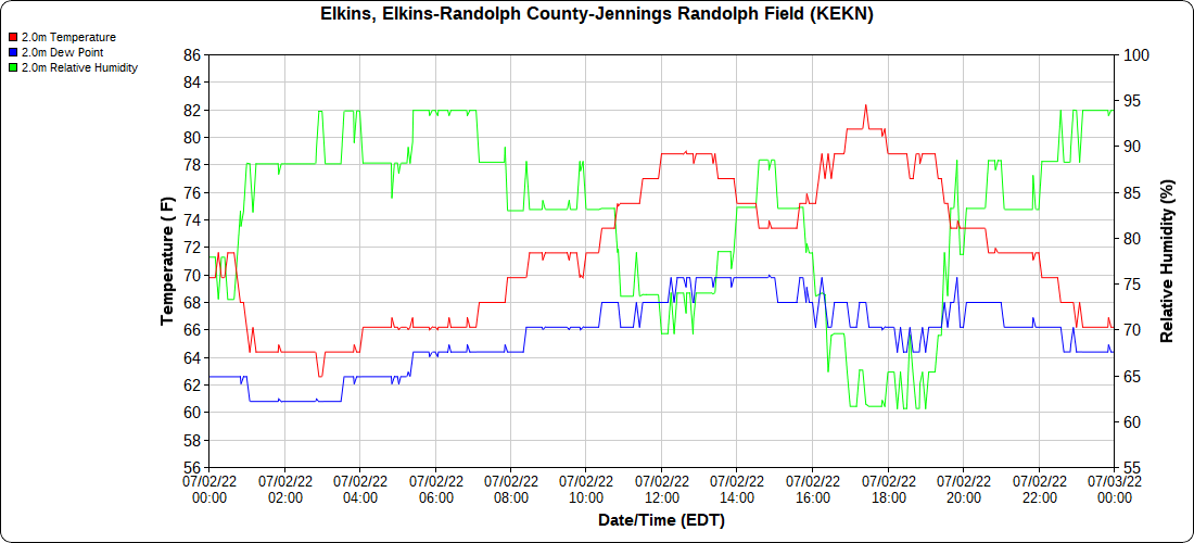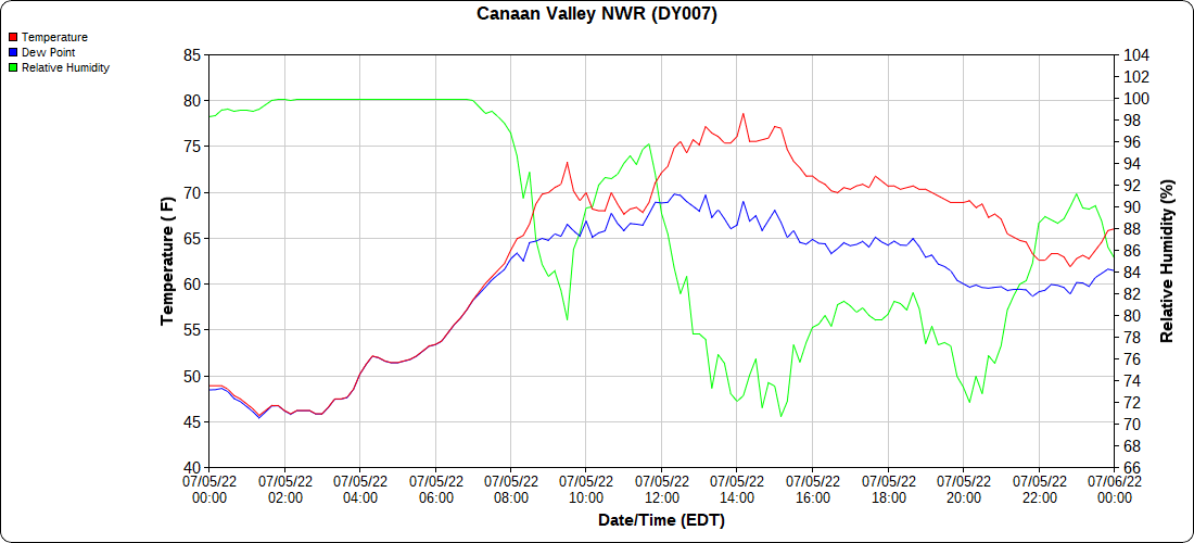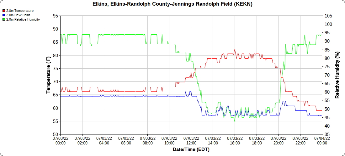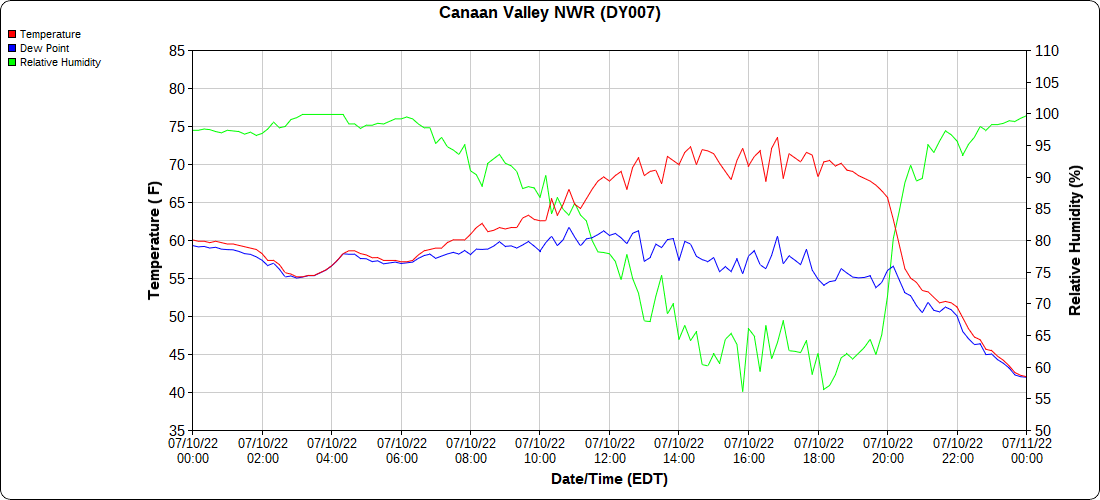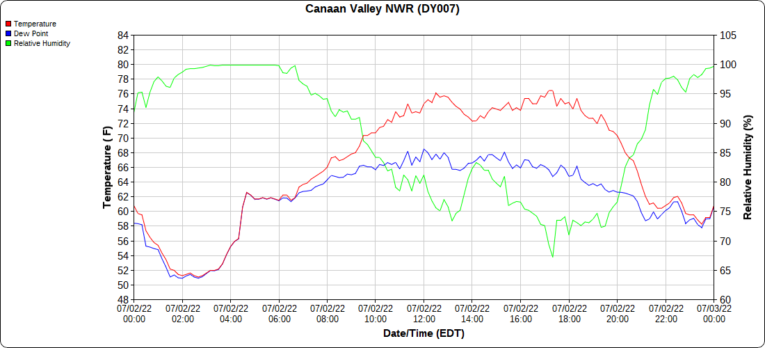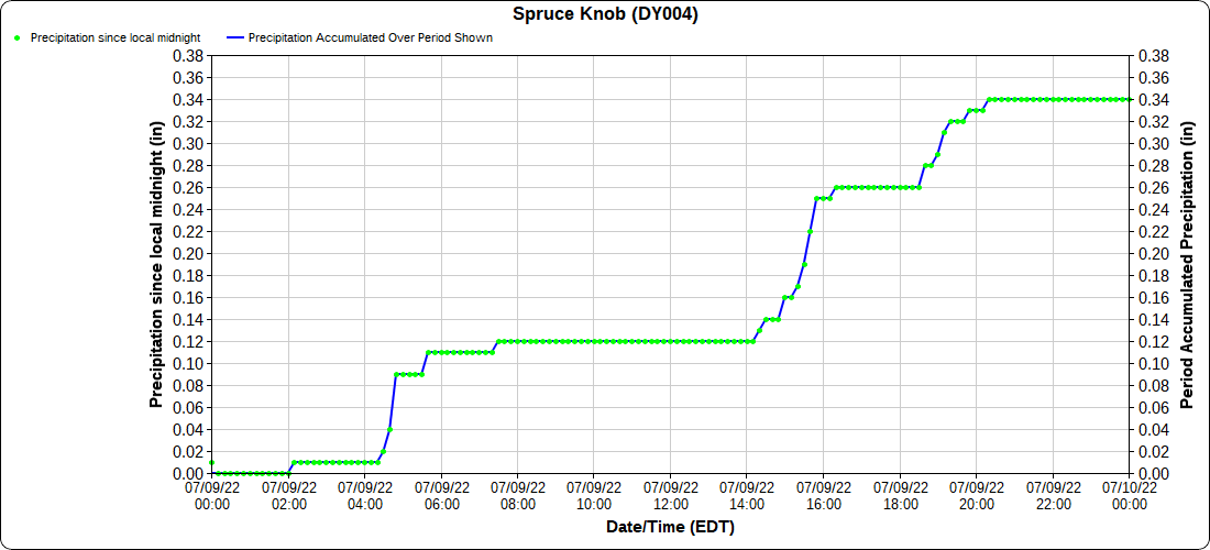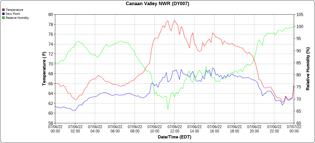 Dy007-Canaan Valley Refuge 3150′, Dy002-Cabin Mt at Bald Knob 4350′, Dy003-Cabin Mt-Western Sods 4035′, Dy004-Spruce Knob 4820′, Cvpw2-Climate Reference Network Canaan 3380′, KW99-Petersburg Grant County Airport 961, K2G4 Garrett County Airport 2933′, KCBE Cumberland Airport 774′, KEKN Elkins Airport 1985′, KMGW Morgantown Airport 1227′, PMN16′-Mt.Davis 3038′