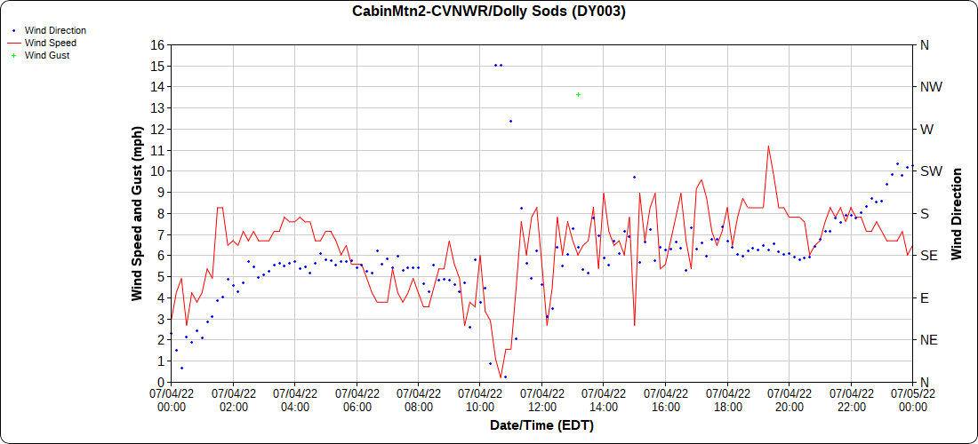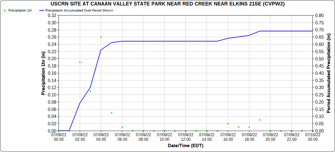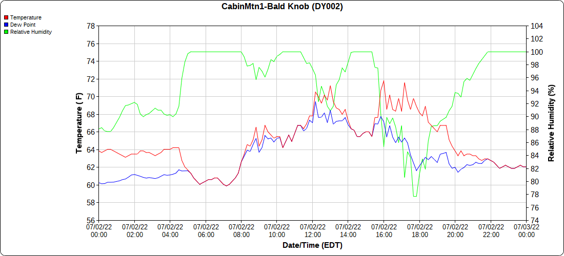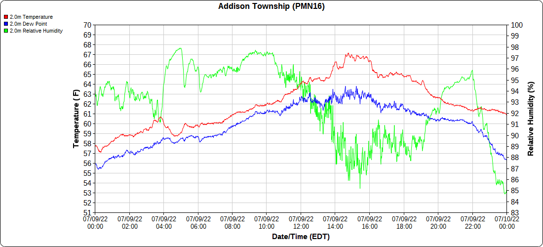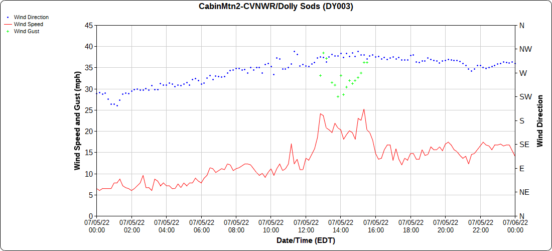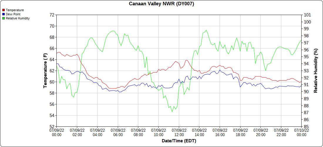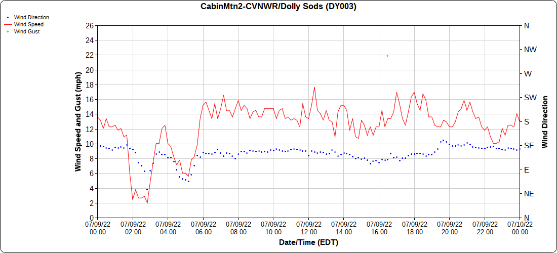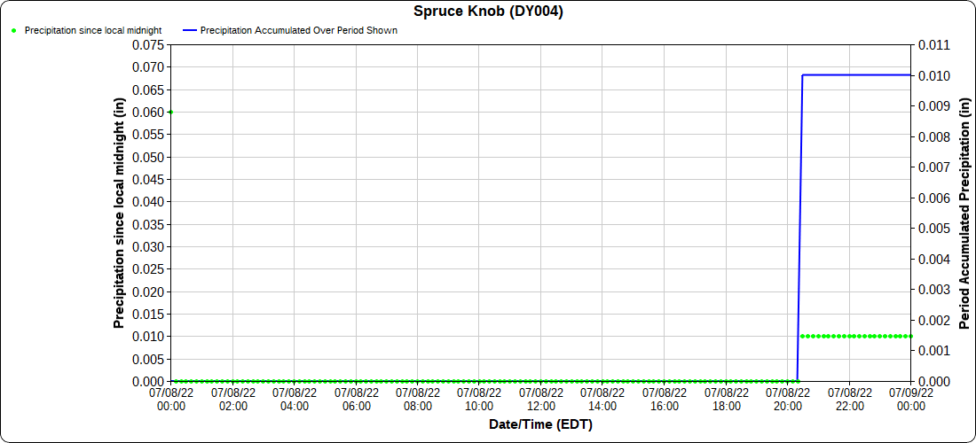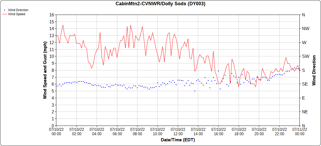 Dy007-Canaan Valley Refuge 3150′, Dy002-Cabin Mt at Bald Knob 4350′, Dy003-Cabin Mt-Western Sods 4035′, Dy004-Spruce Knob 4820′, Cvpw2-Climate Reference Network Canaan 3380′, KW99-Petersburg Grant County Airport 961, K2G4 Garrett County Airport 2933′, KCBE Cumberland Airport 774′, KEKN Elkins Airport 1985′, KMGW Morgantown Airport 1227′, PMN16′-Mt.Davis 3038′
