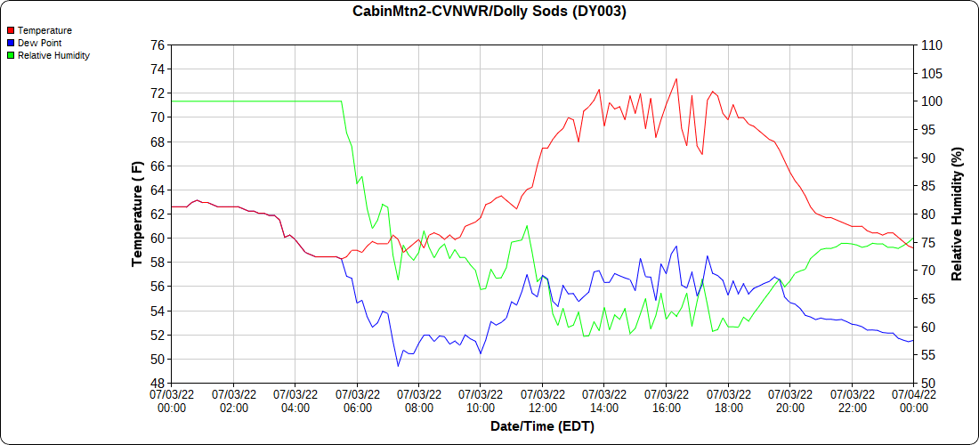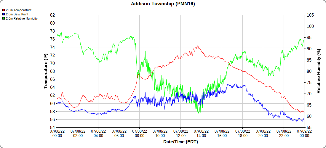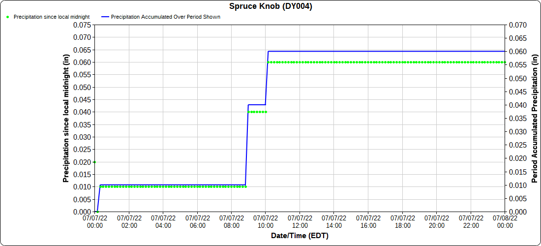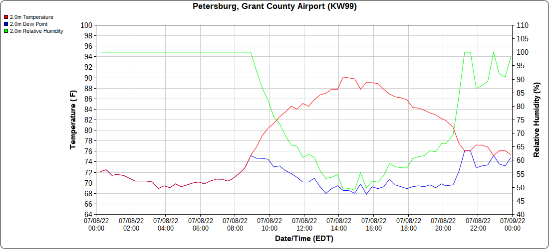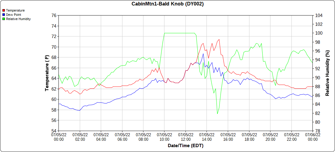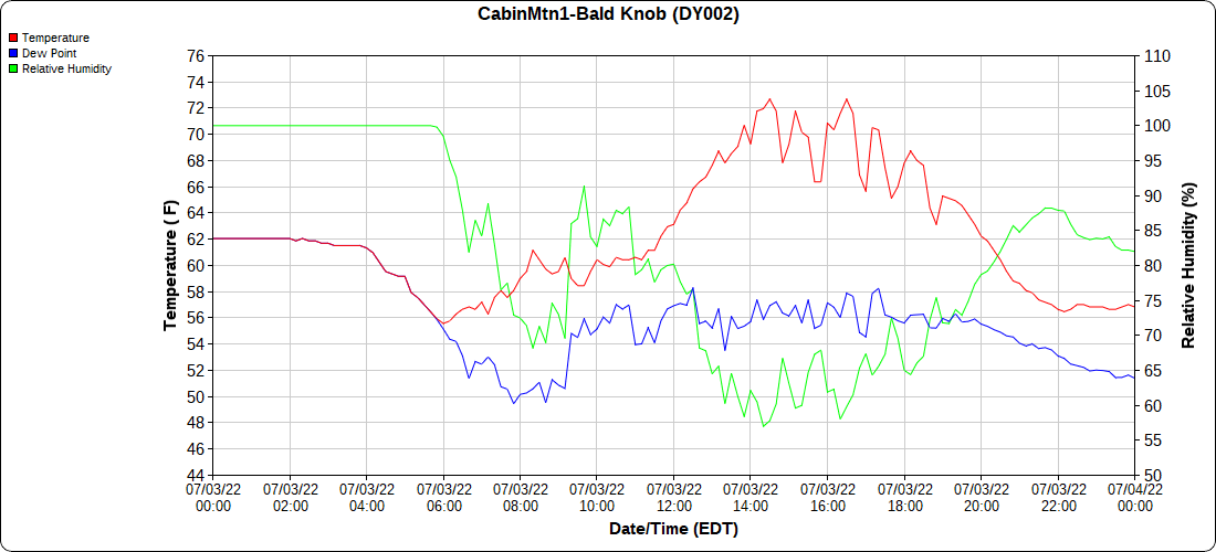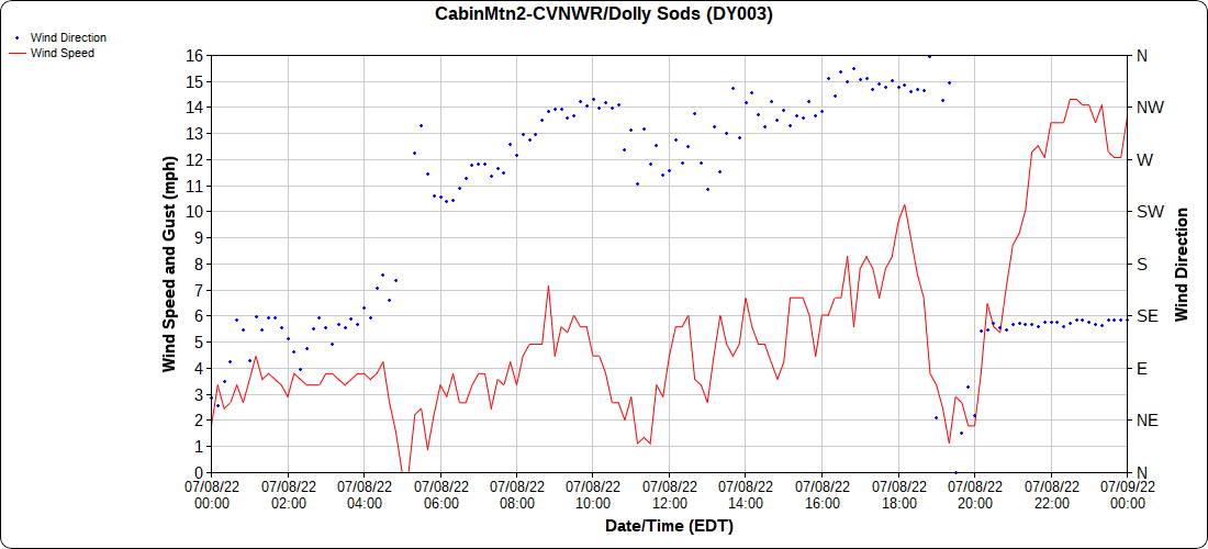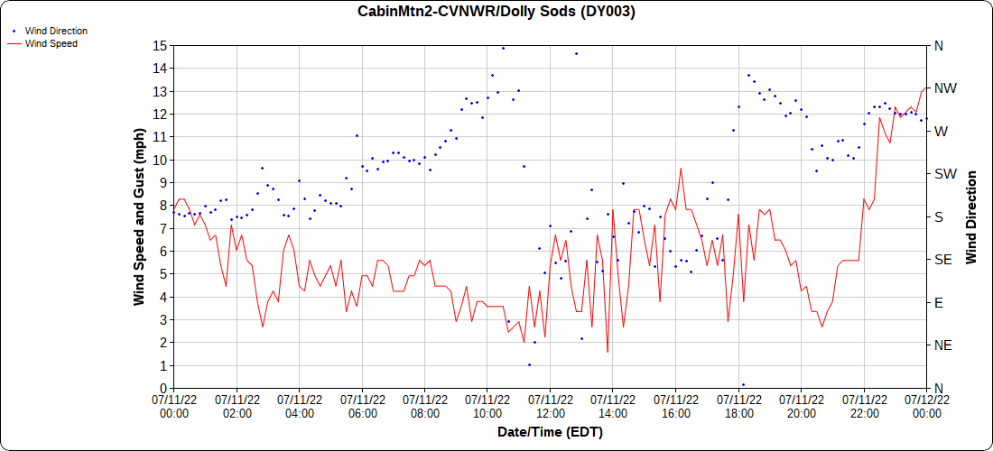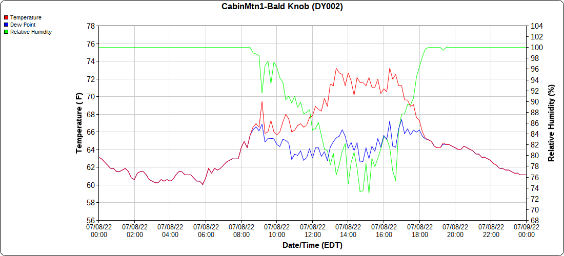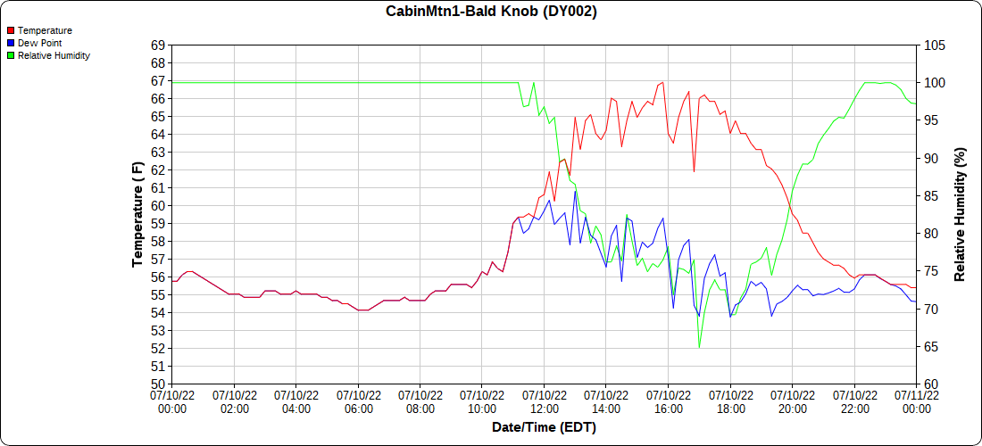 Dy007-Canaan Valley Refuge 3150′, Dy002-Cabin Mt at Bald Knob 4350′, Dy003-Cabin Mt-Western Sods 4035′, Dy004-Spruce Knob 4820′, Cvpw2-Climate Reference Network Canaan 3380′, KW99-Petersburg Grant County Airport 961, K2G4 Garrett County Airport 2933′, KCBE Cumberland Airport 774′, KEKN Elkins Airport 1985′, KMGW Morgantown Airport 1227′, PMN16′-Mt.Davis 3038′