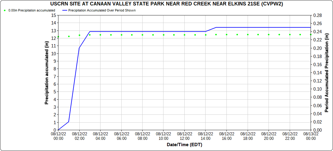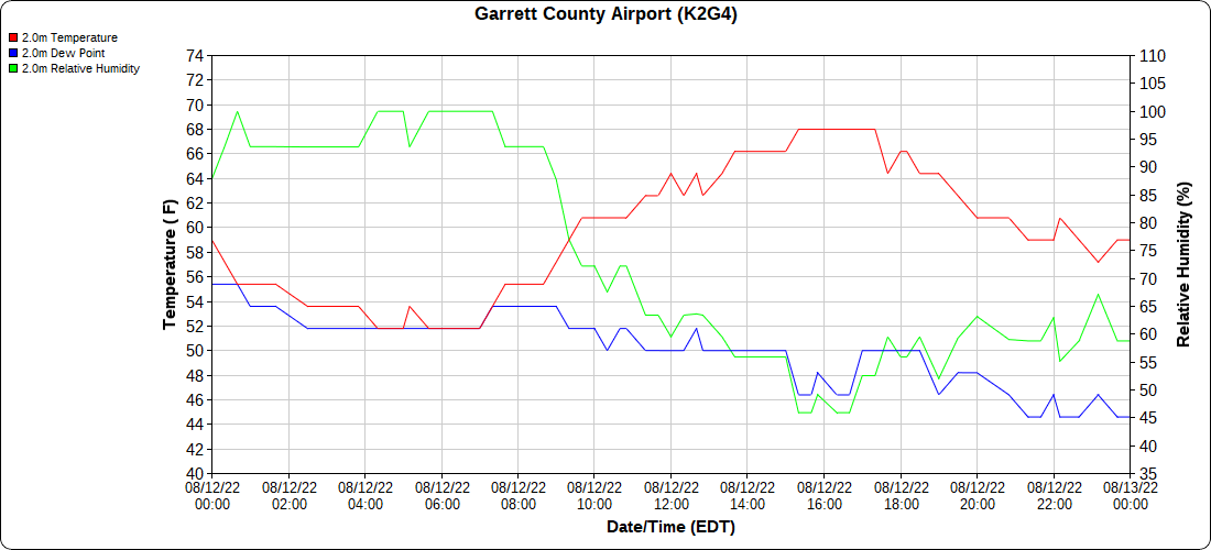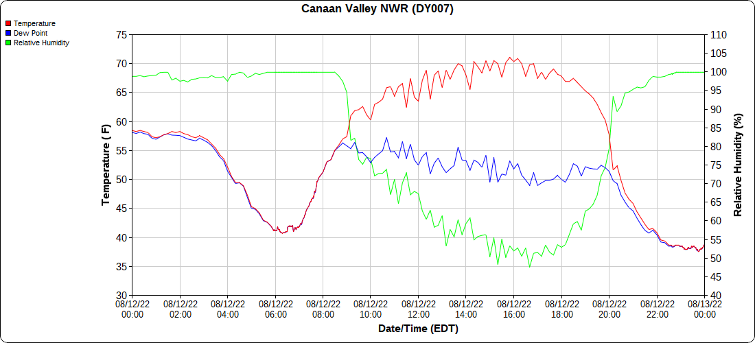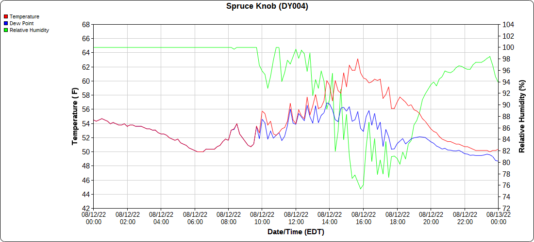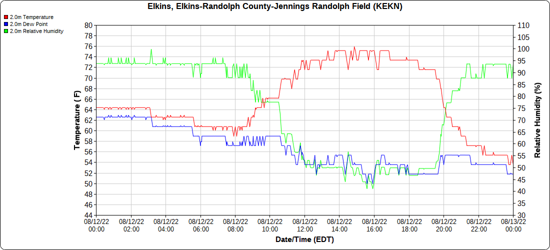 Dy007-Canaan Valley Refuge 3150′, Dy002-Cabin Mt at Bald Knob 4350′, Dy003-Cabin Mt-Western Sods 4035′, Dy004-Spruce Knob 4820′, Cvpw2-Climate Reference Network Canaan 3380′, KW99-Petersburg Grant County Airport 961, K2G4 Garrett County Airport 2933′, KCBE Cumberland Airport 774′, KEKN Elkins Airport 1985′, KMGW Morgantown Airport 1227′, PMN16-Mt.Davis 3038′