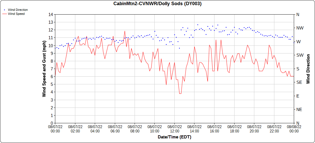 Dy007-Canaan Valley Refuge 3150′, Dy002-Cabin Mt at Bald Knob 4350′, Dy003-Cabin Mt-Western Sods 4035′, Dy004-Spruce Knob 4820′, Cvpw2-Climate Reference Network Canaan 3380′, KW99-Petersburg Grant County Airport 961, K2G4 Garrett County Airport 2933′, KCBE Cumberland Airport 774′, KEKN Elkins Airport 1985′, KMGW Morgantown Airport 1227′, PMN16-Mt.Davis 3038′