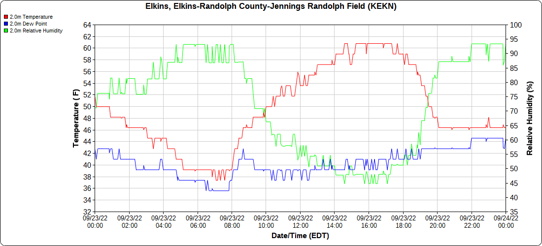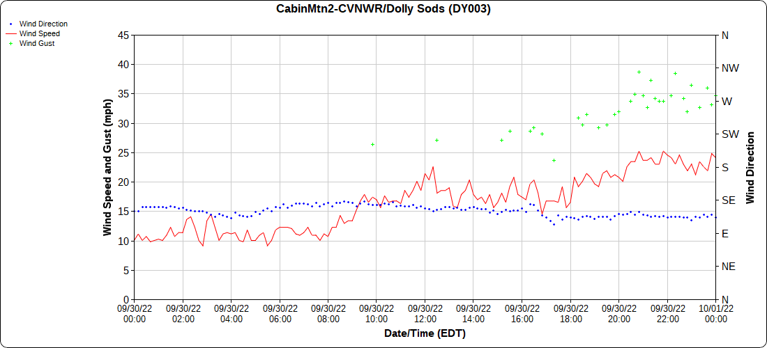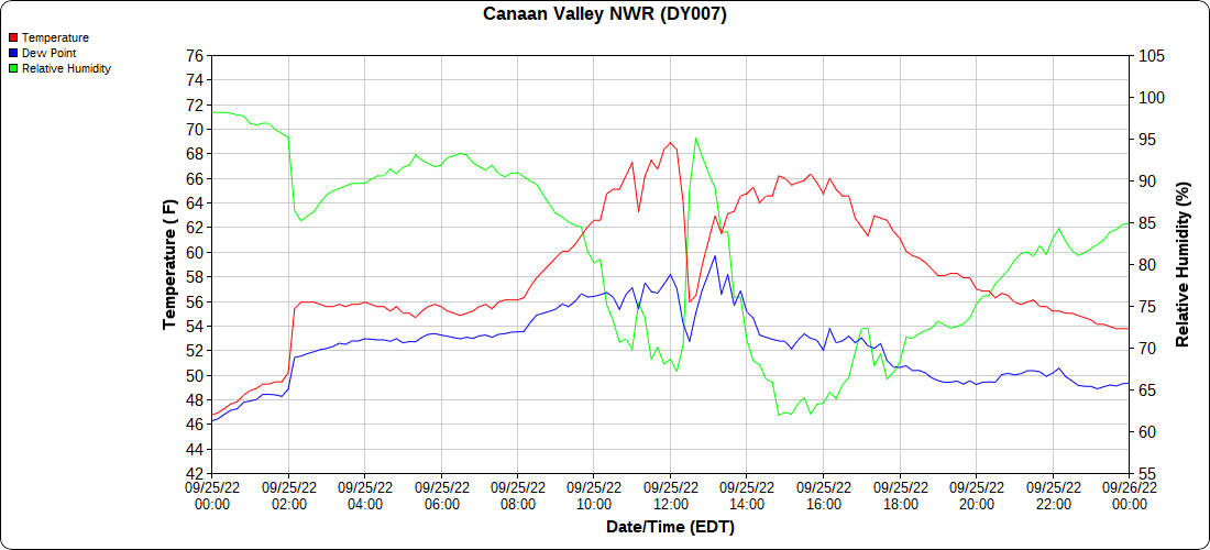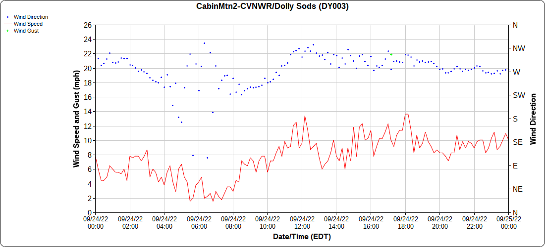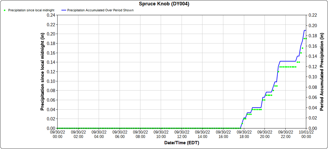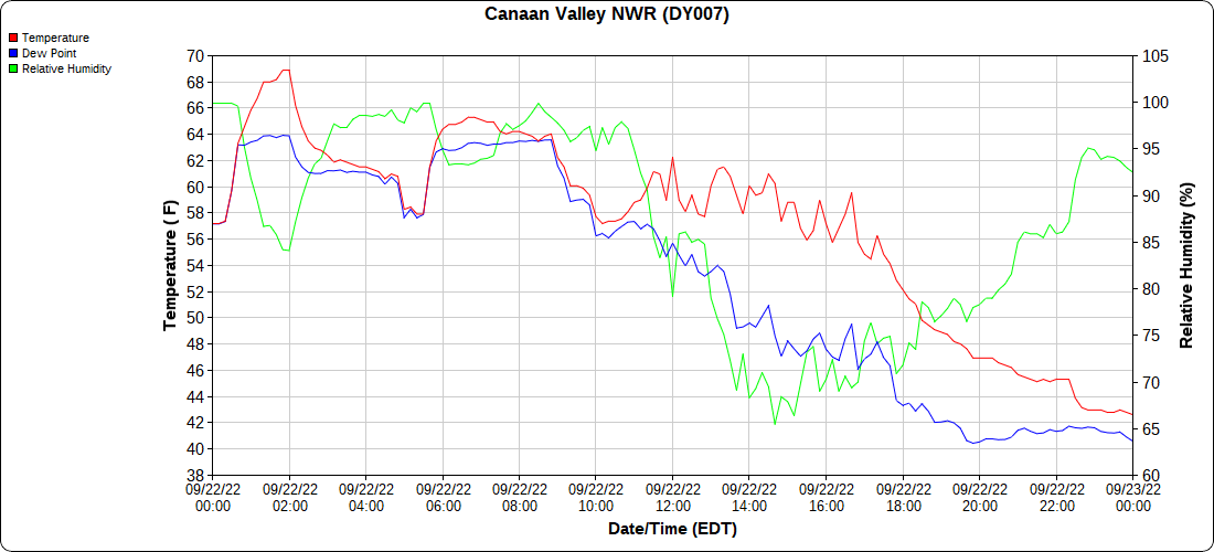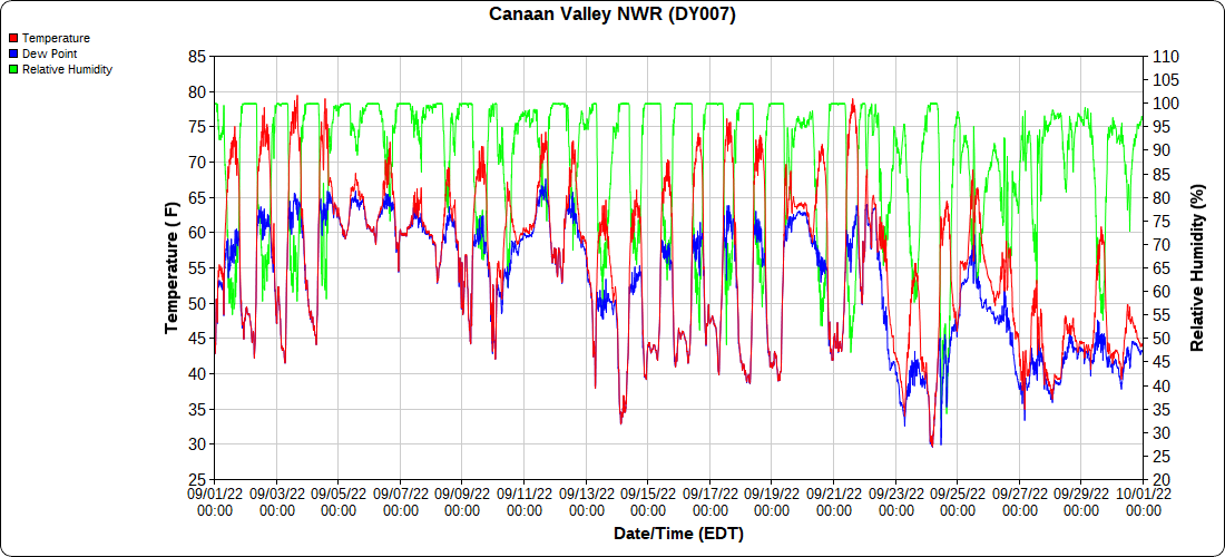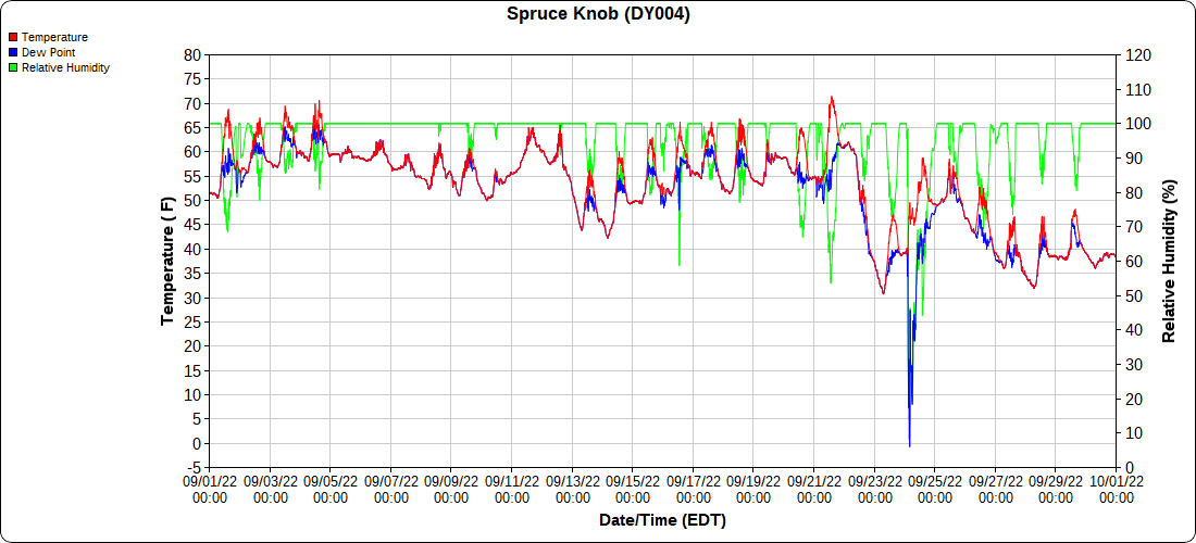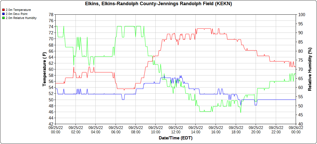 Dy007-Canaan Valley Refuge 3150′, Dy002-Cabin Mt at Bald Knob 4350′, Dy003-Cabin Mt-Western Sods 4035′, Dy004-Spruce Knob 4820′, Cvpw2-Climate Reference Network Canaan 3380′, KW99-Petersburg Grant County Airport 961, K2G4 Garrett County Airport 2933′, KCBE Cumberland Airport 774′, KEKN Elkins Airport 1985′, KMGW Morgantown Airport 1227′, PMN16-Mt.Davis 3038′