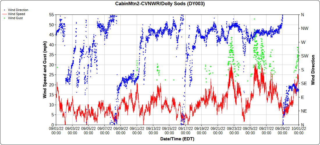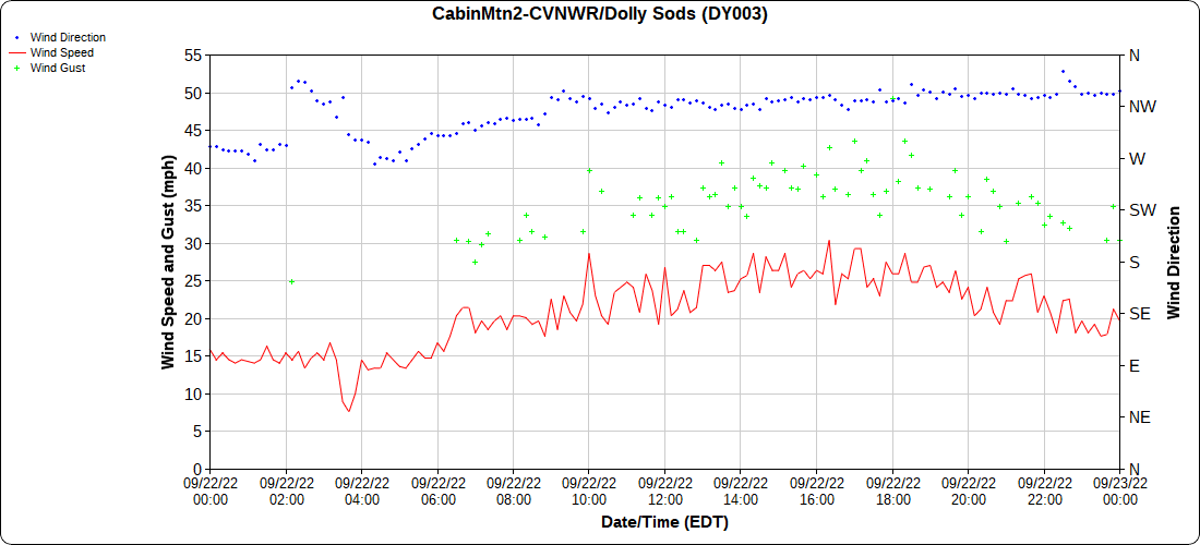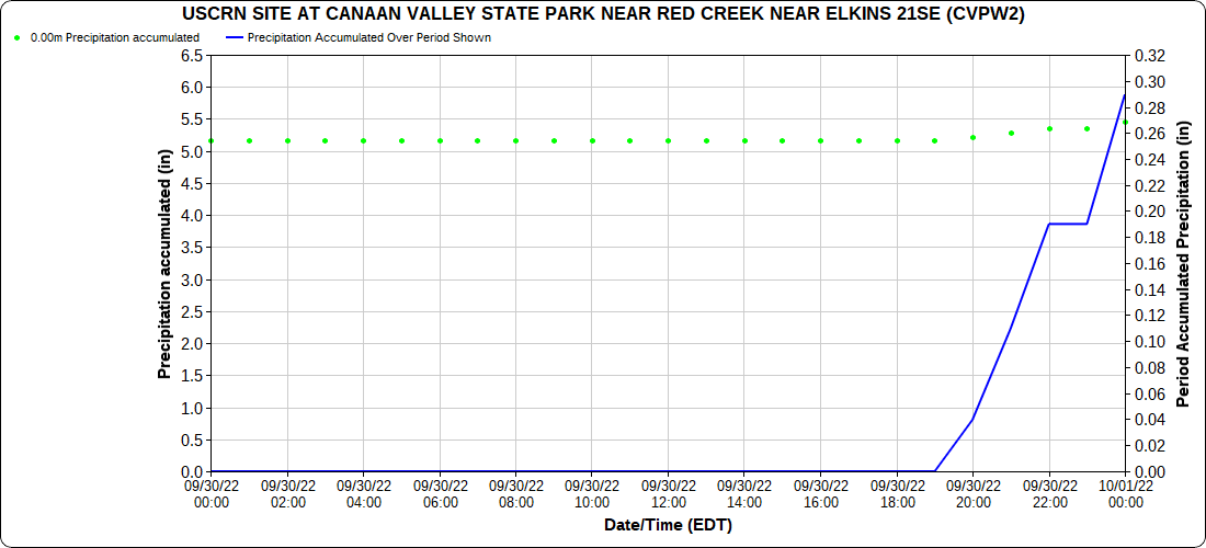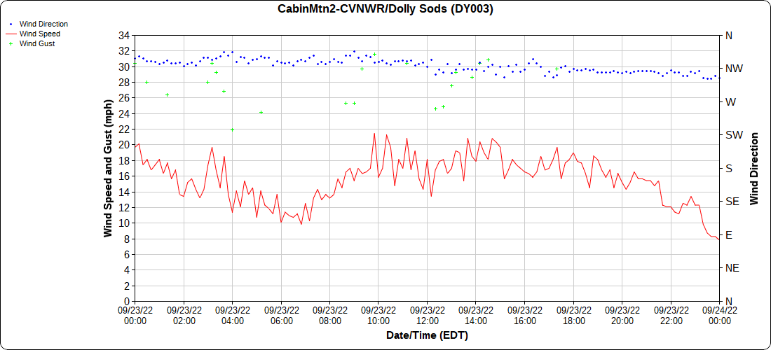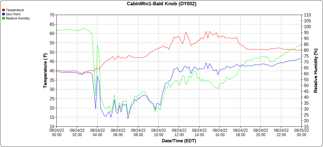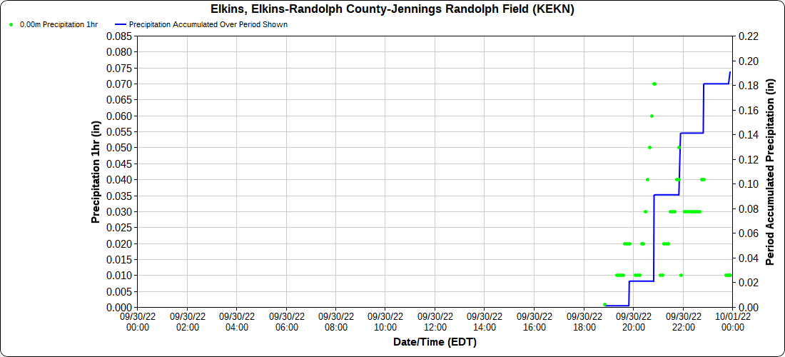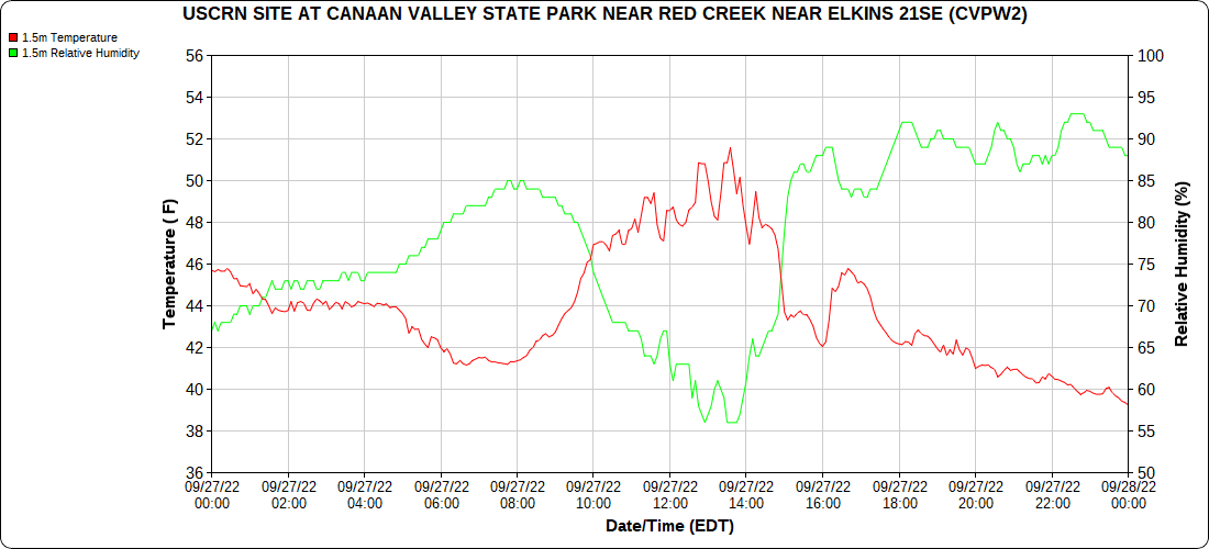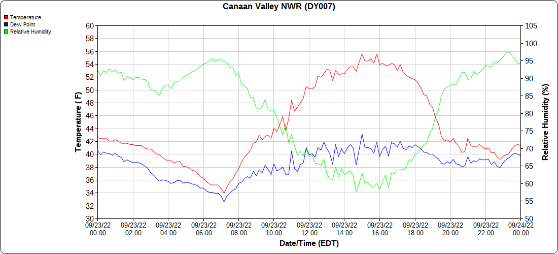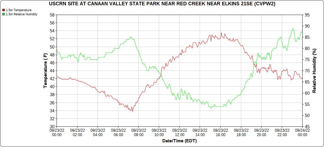 Dy007-Canaan Valley Refuge 3150′, Dy002-Cabin Mt at Bald Knob 4350′, Dy003-Cabin Mt-Western Sods 4035′, Dy004-Spruce Knob 4820′, Cvpw2-Climate Reference Network Canaan 3380′, KW99-Petersburg Grant County Airport 961, K2G4 Garrett County Airport 2933′, KCBE Cumberland Airport 774′, KEKN Elkins Airport 1985′, KMGW Morgantown Airport 1227′, PMN16-Mt.Davis 3038′