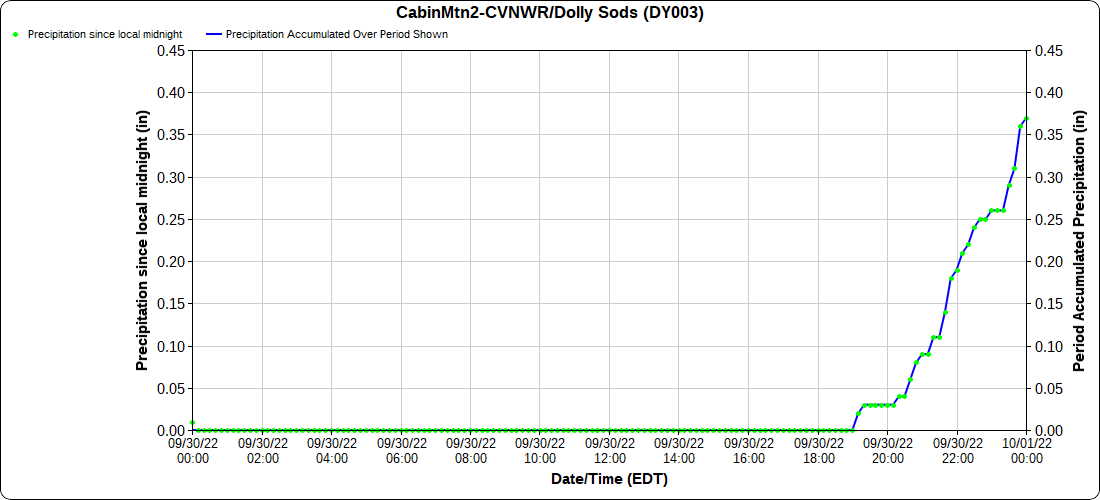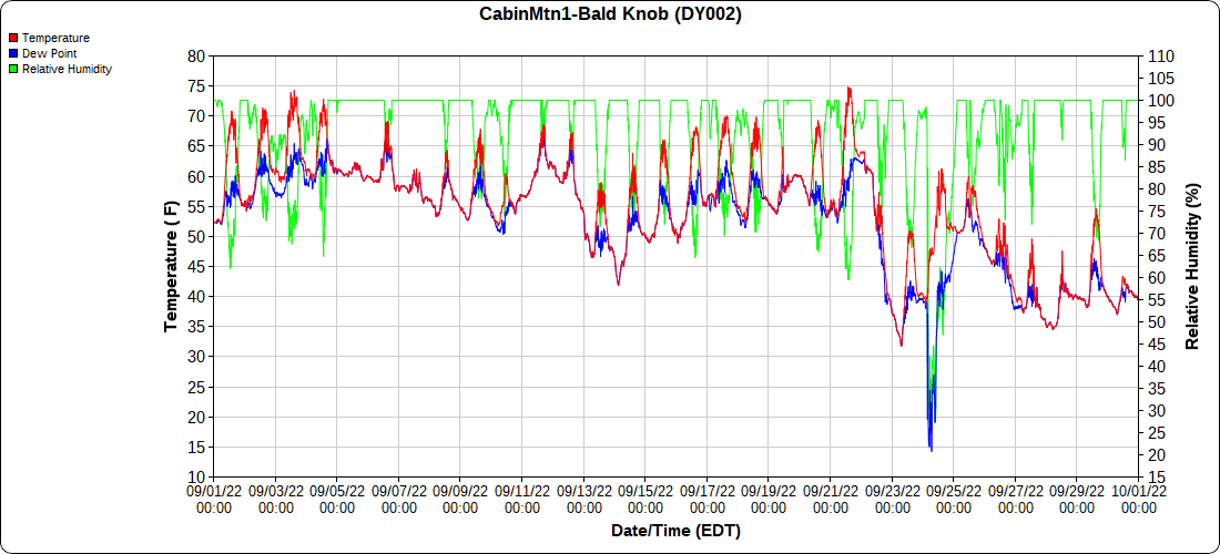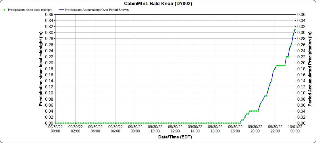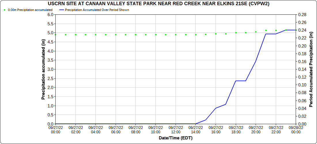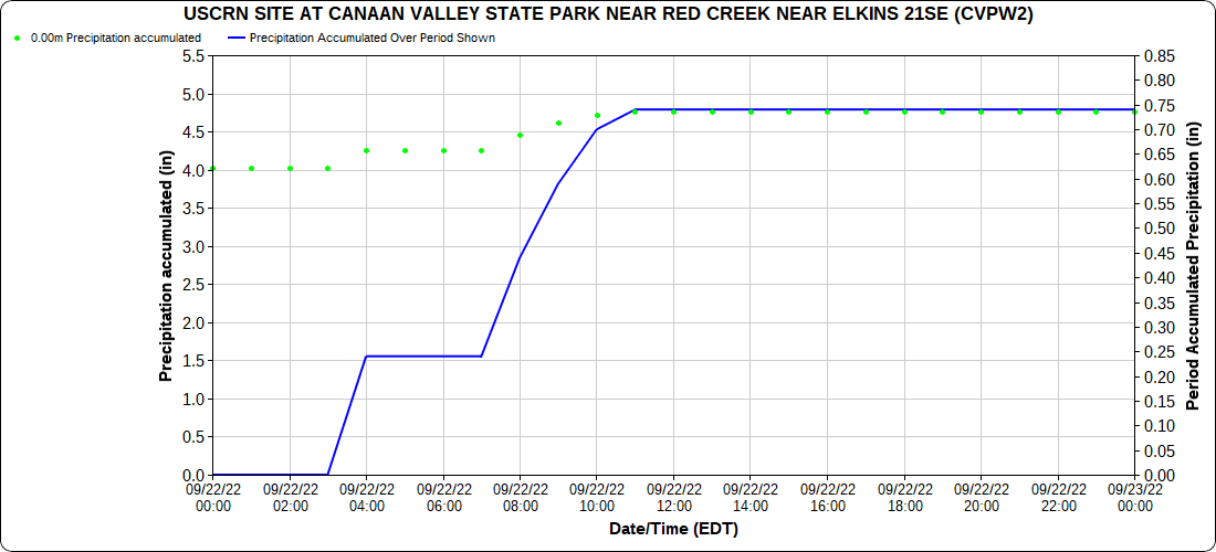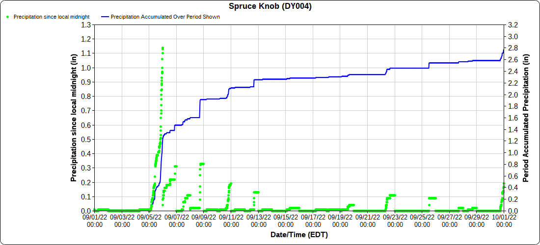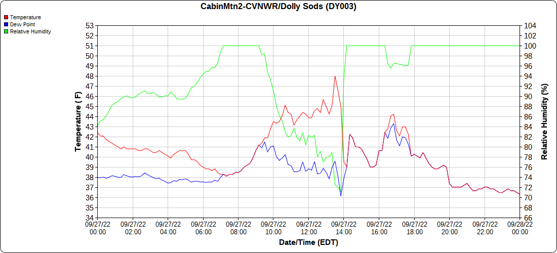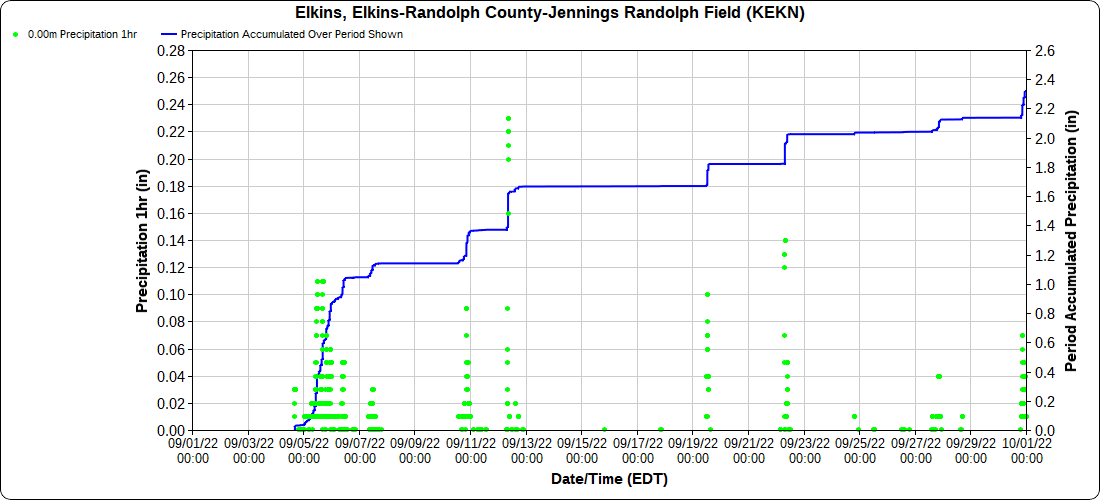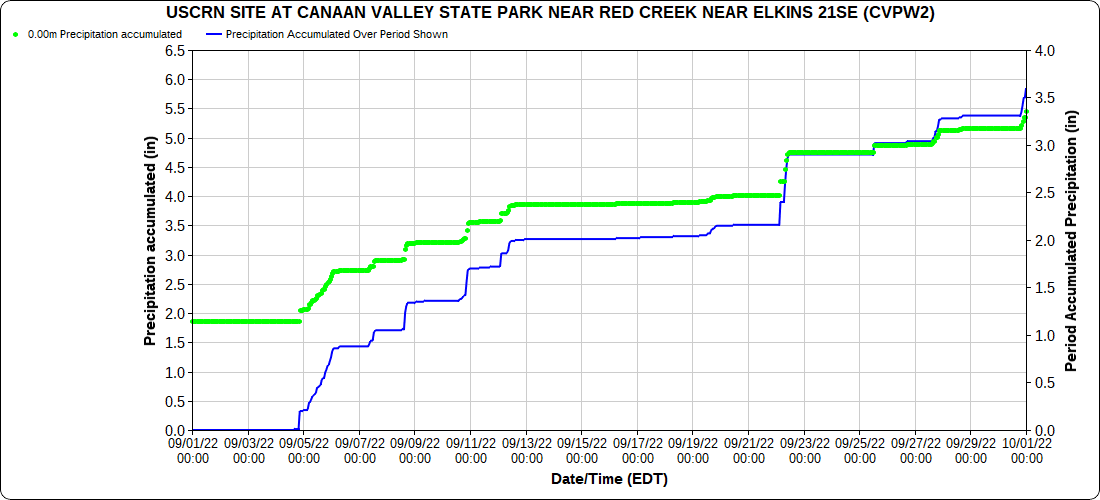 Dy007-Canaan Valley Refuge 3150′, Dy002-Cabin Mt at Bald Knob 4350′, Dy003-Cabin Mt-Western Sods 4035′, Dy004-Spruce Knob 4820′, Cvpw2-Climate Reference Network Canaan 3380′, KW99-Petersburg Grant County Airport 961, K2G4 Garrett County Airport 2933′, KCBE Cumberland Airport 774′, KEKN Elkins Airport 1985′, KMGW Morgantown Airport 1227′, PMN16-Mt.Davis 3038′
