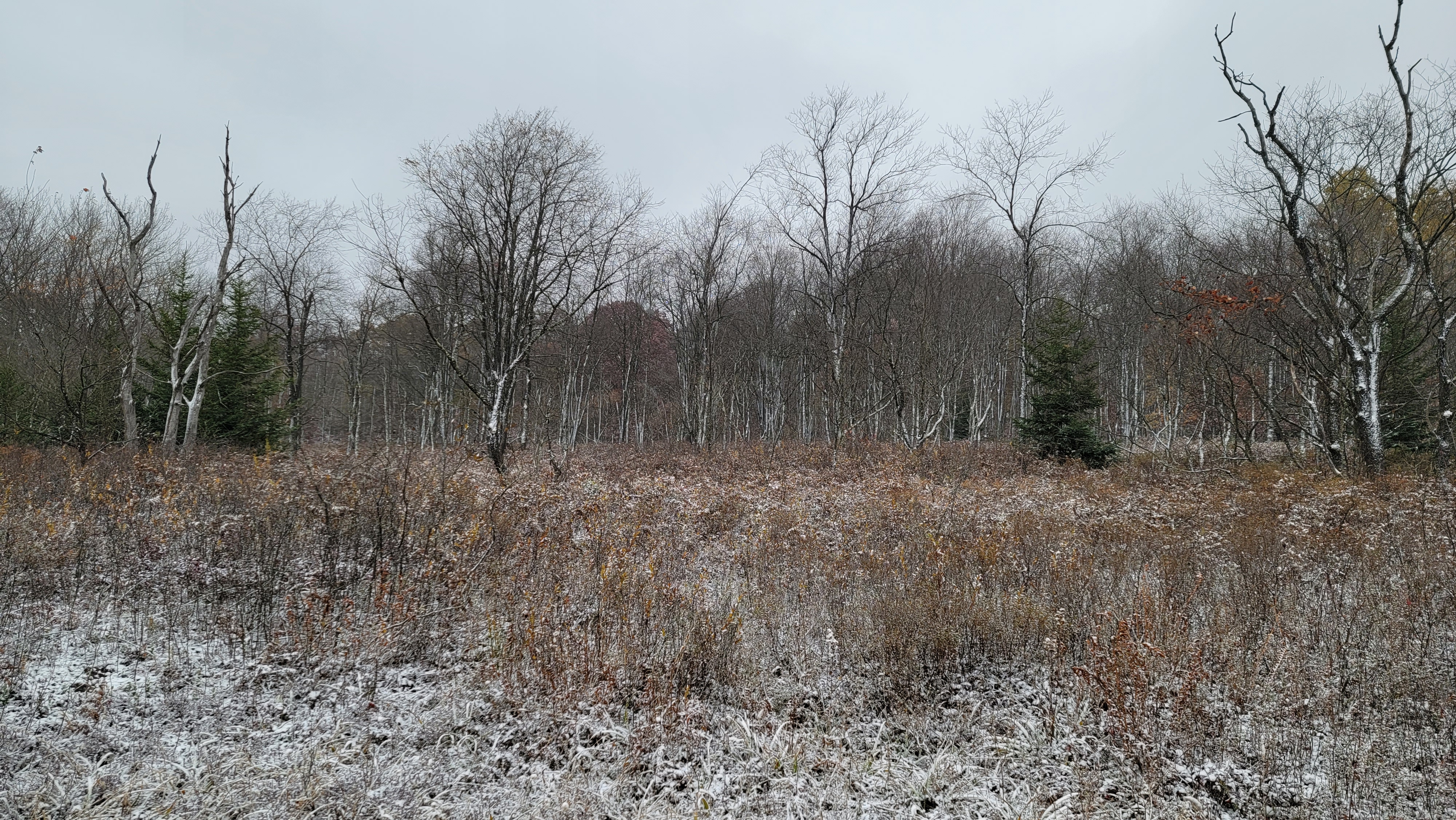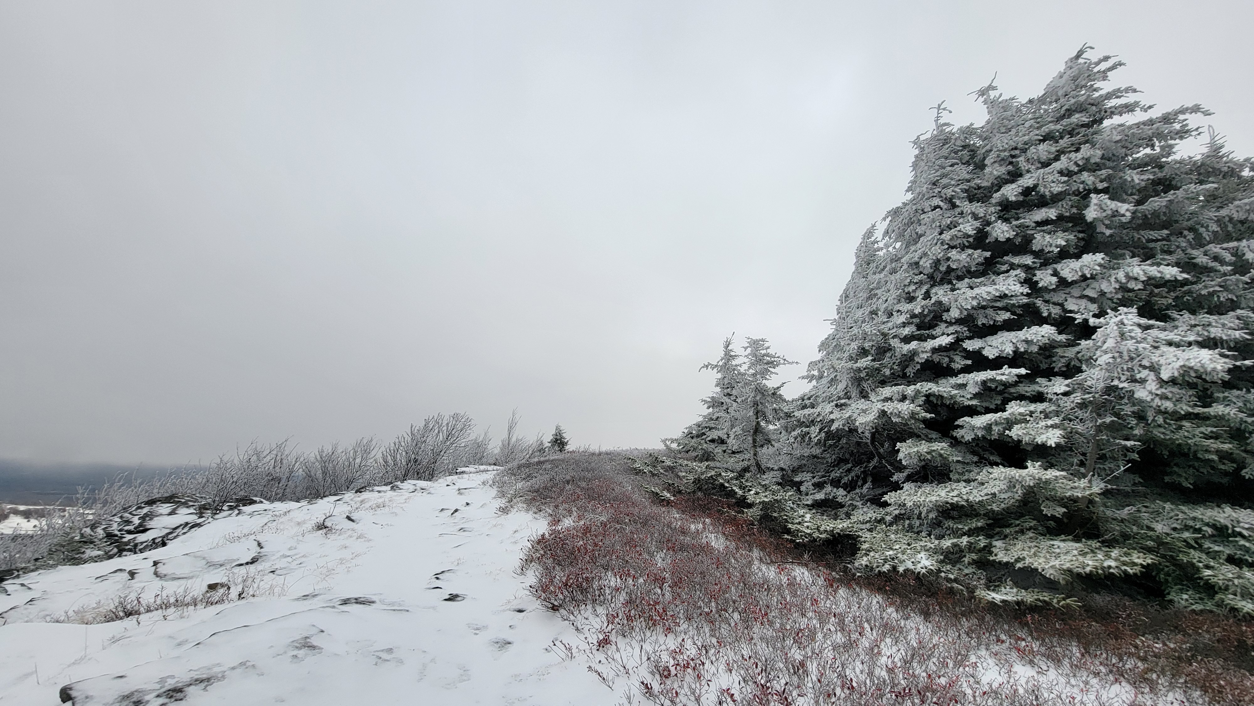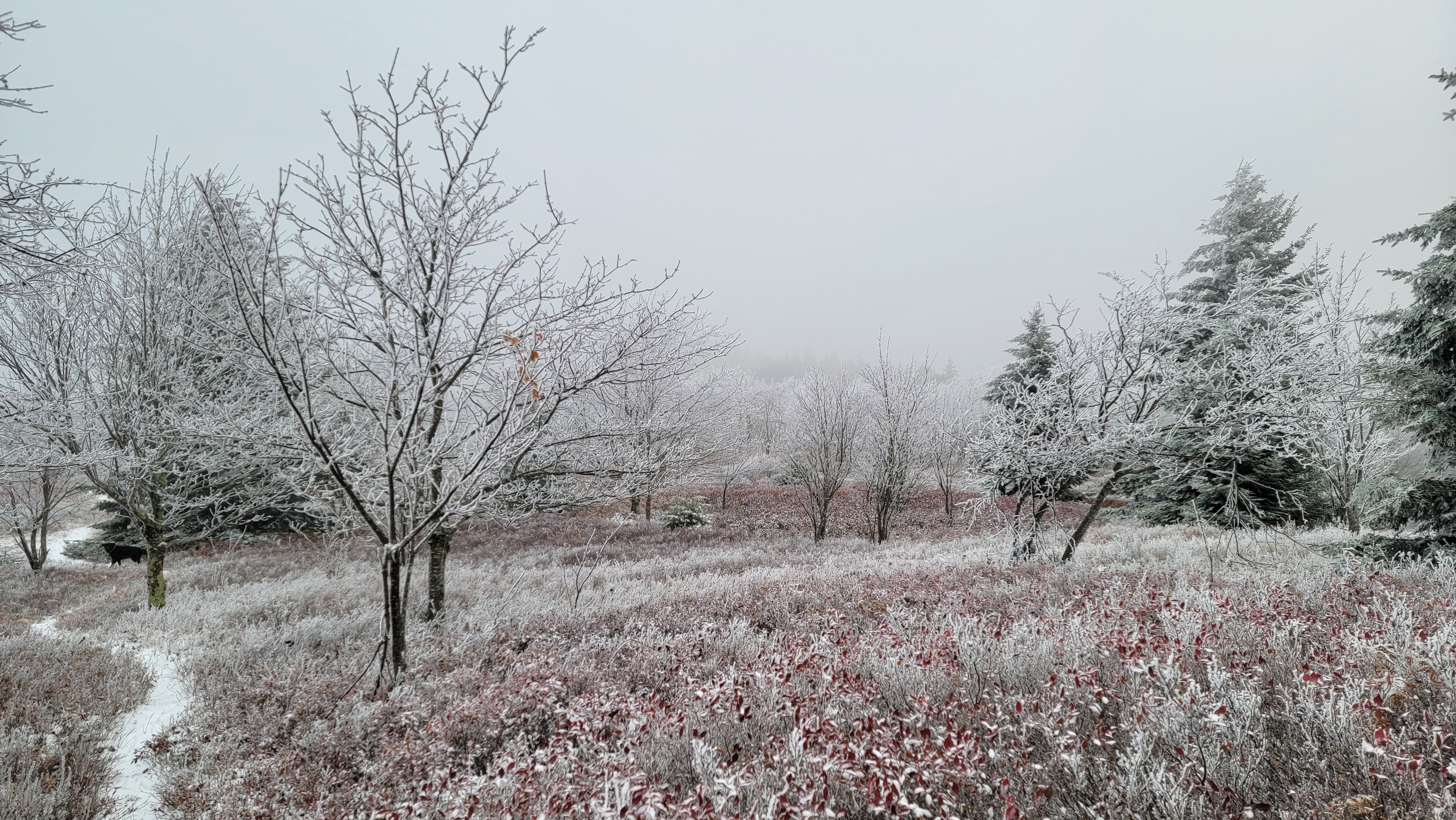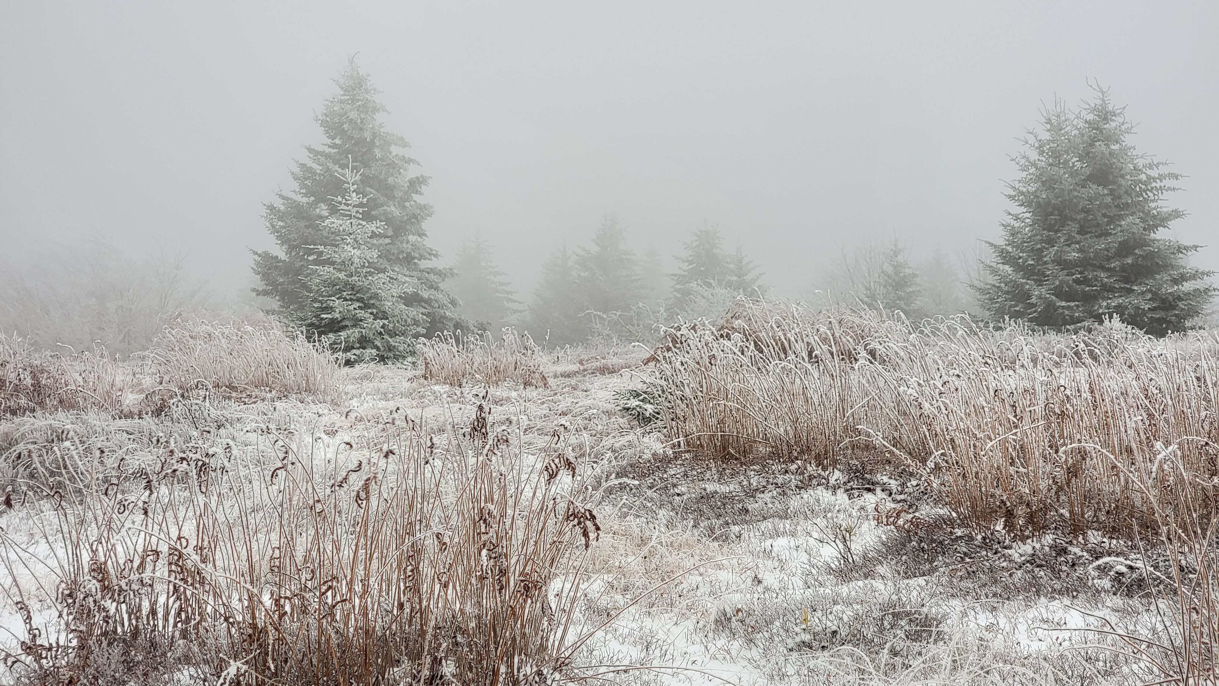 The day beginning with a few stray flakes, patchy freezingmistakes, high elevation fog/rime..