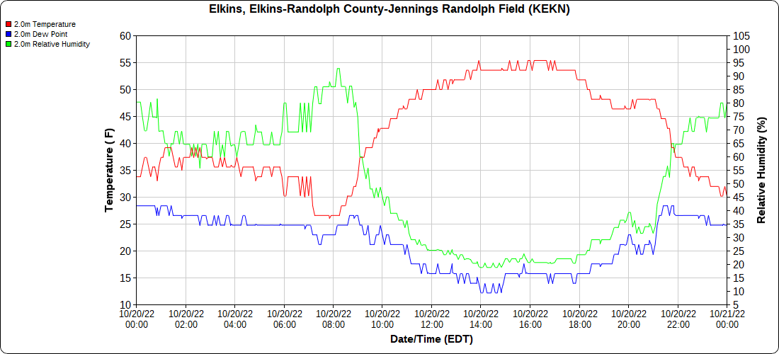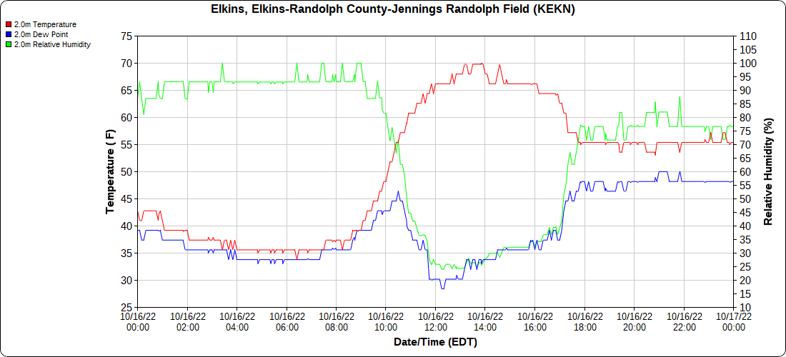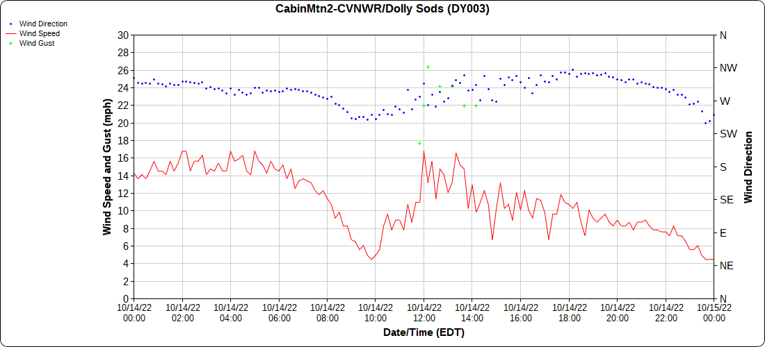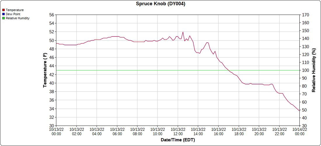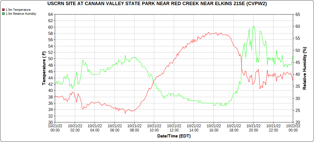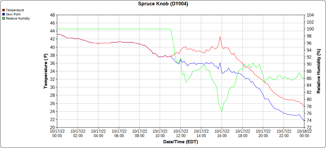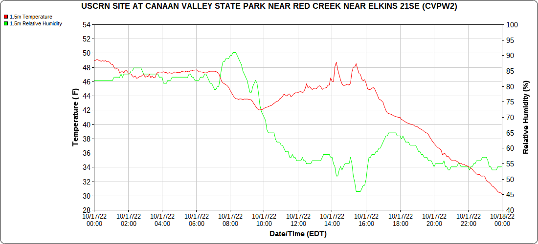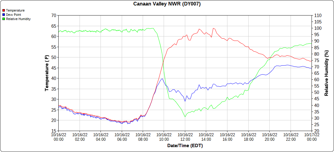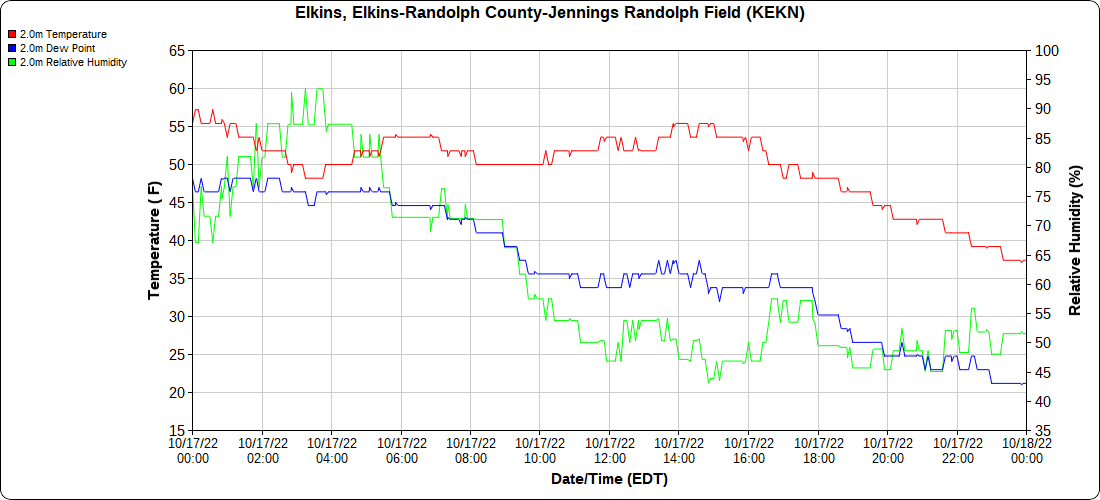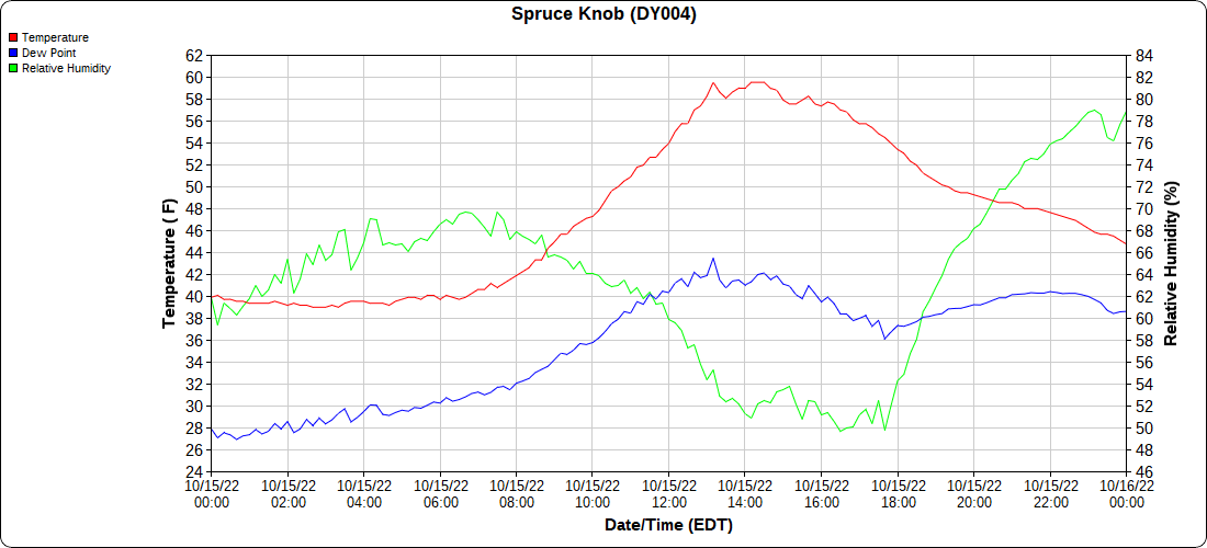 Dy007-Canaan Valley Refuge 3150′, Dy002-Cabin Mt at Bald Knob 4350′, Dy003-Cabin Mt-Western Sods 4035′, Dy004-Spruce Knob 4820′, Cvpw2-Climate Reference Network Canaan 3380′, KW99-Petersburg Grant County Airport 961, K2G4 Garrett County Airport 2933′, KCBE Cumberland Airport 774′, KEKN Elkins Airport 1985′, KMGW Morgantown Airport 1227′, PMN16-Mt.Davis 3038′