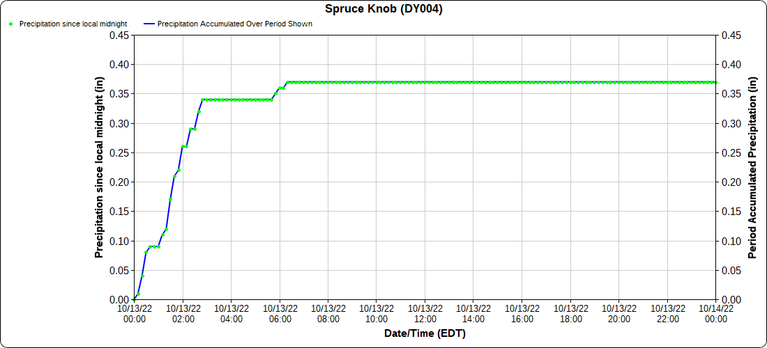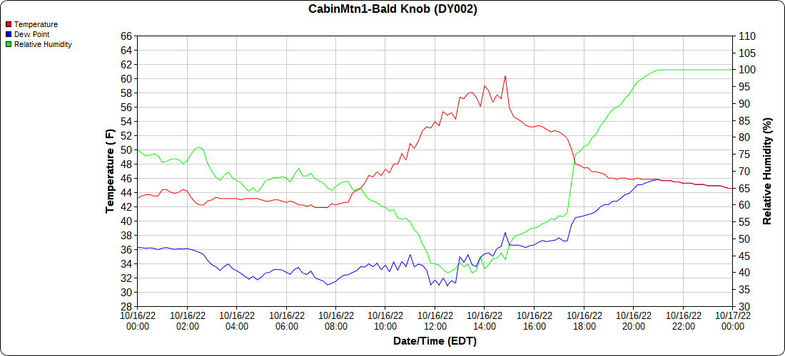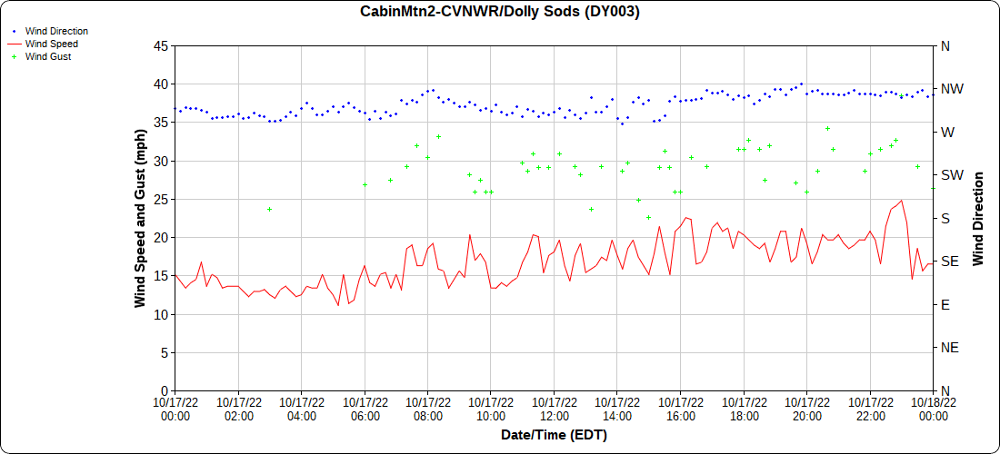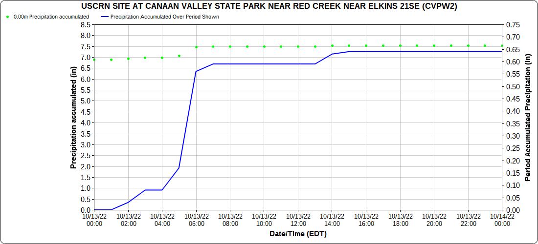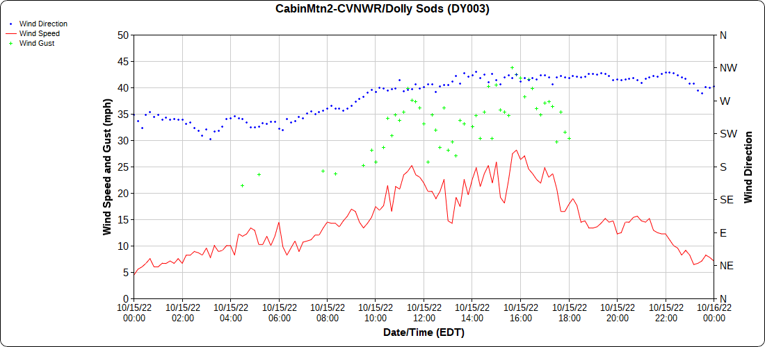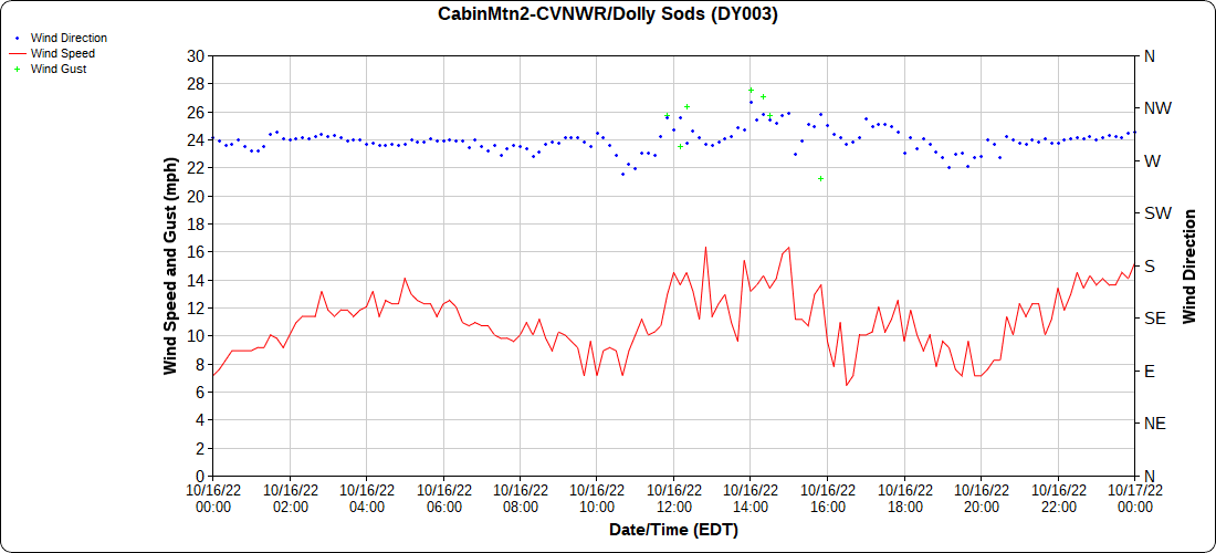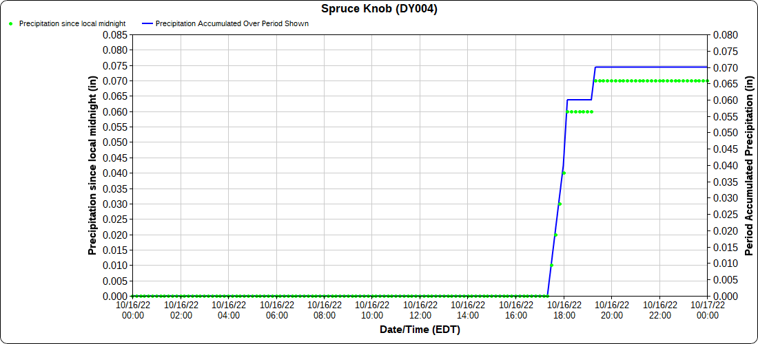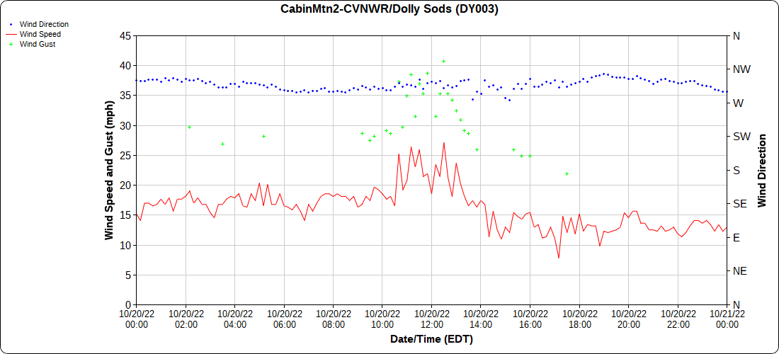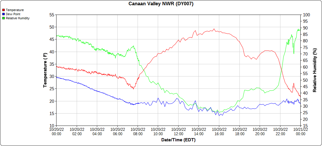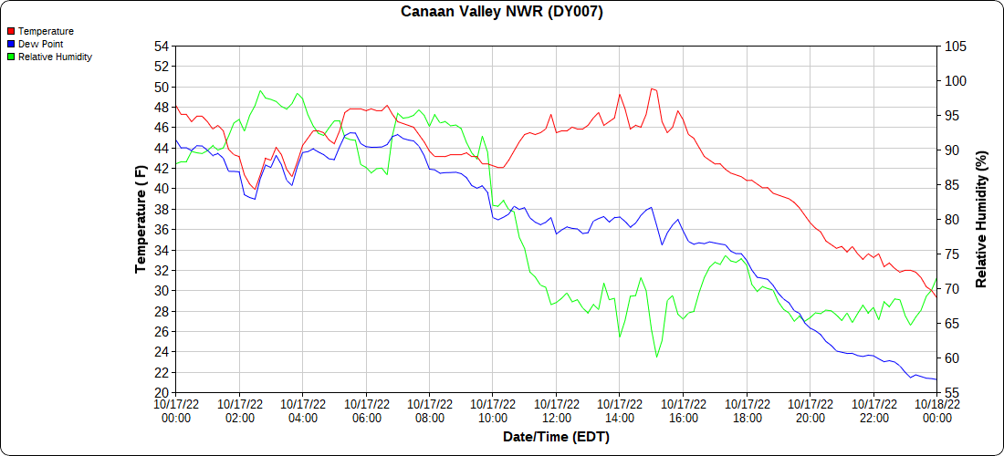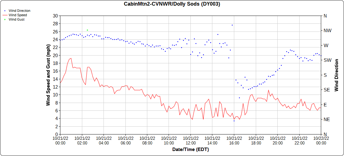 Dy007-Canaan Valley Refuge 3150′, Dy002-Cabin Mt at Bald Knob 4350′, Dy003-Cabin Mt-Western Sods 4035′, Dy004-Spruce Knob 4820′, Cvpw2-Climate Reference Network Canaan 3380′, KW99-Petersburg Grant County Airport 961, K2G4 Garrett County Airport 2933′, KCBE Cumberland Airport 774′, KEKN Elkins Airport 1985′, KMGW Morgantown Airport 1227′, PMN16-Mt.Davis 3038′