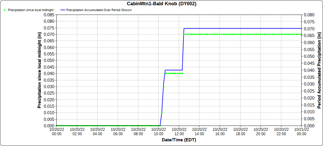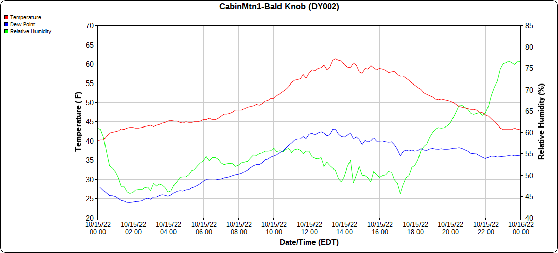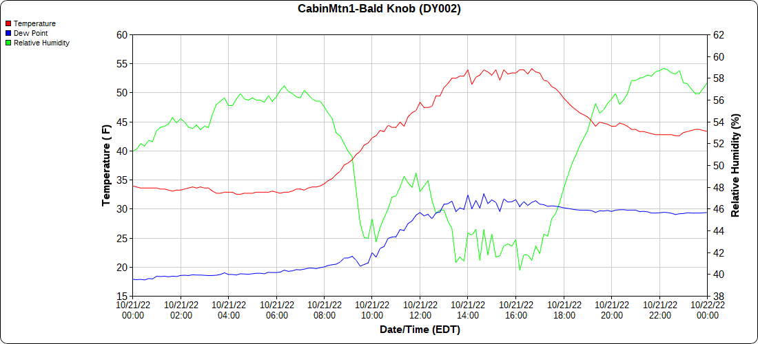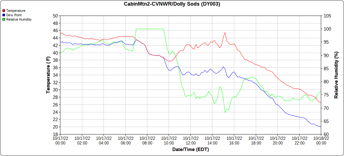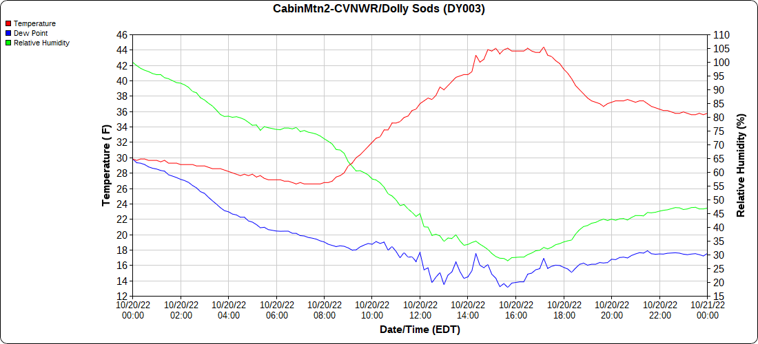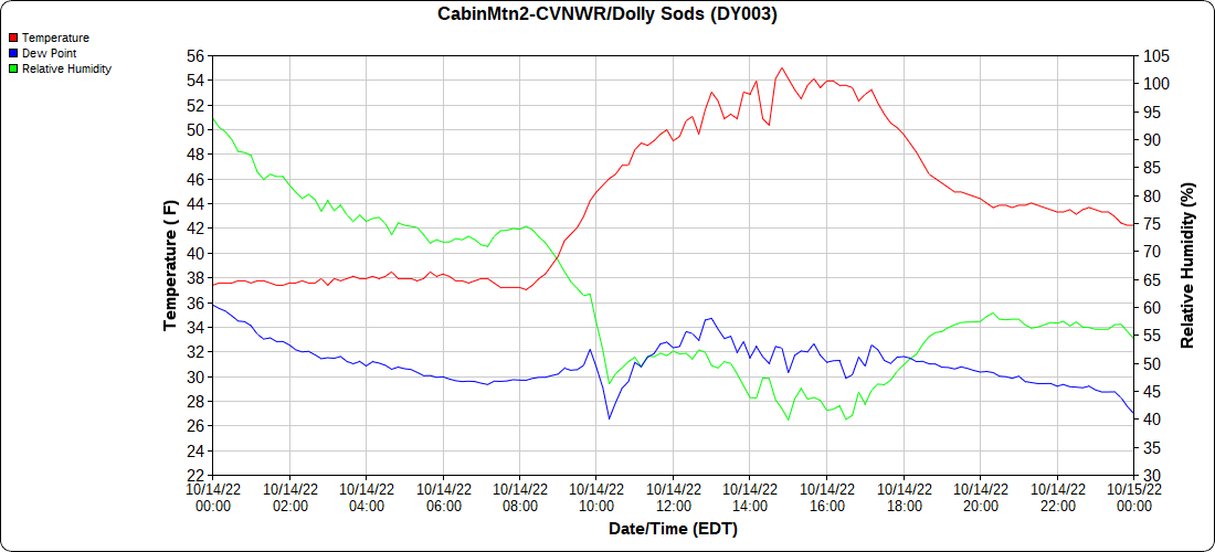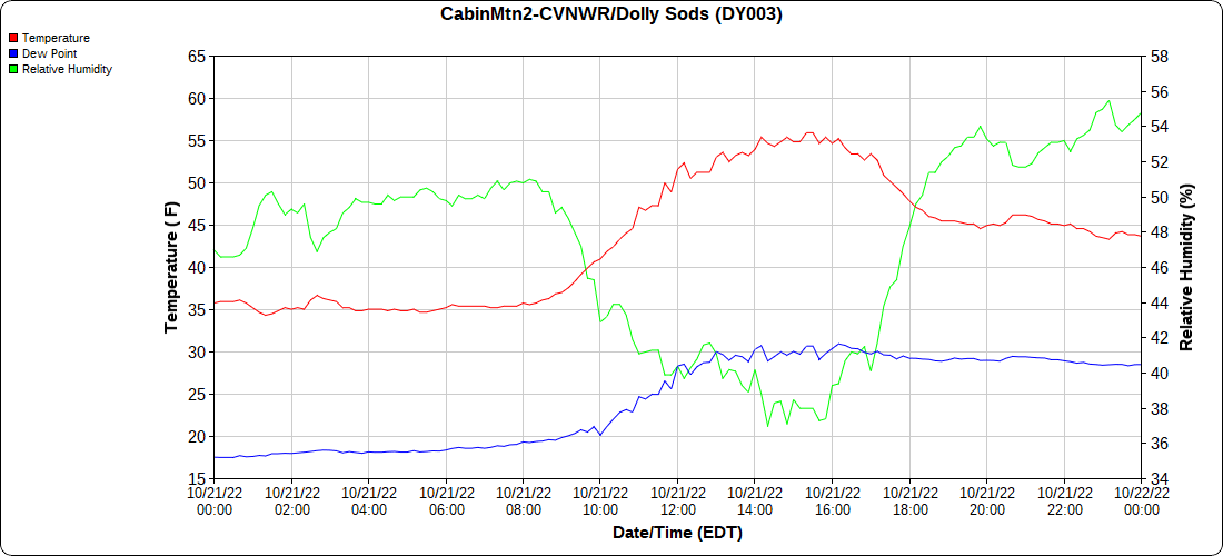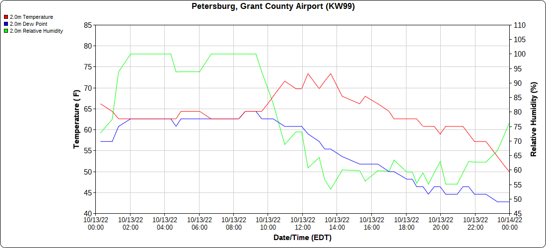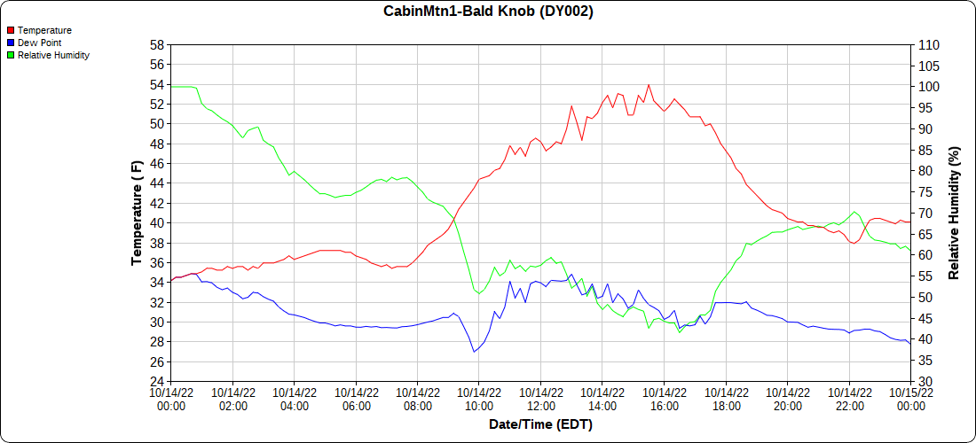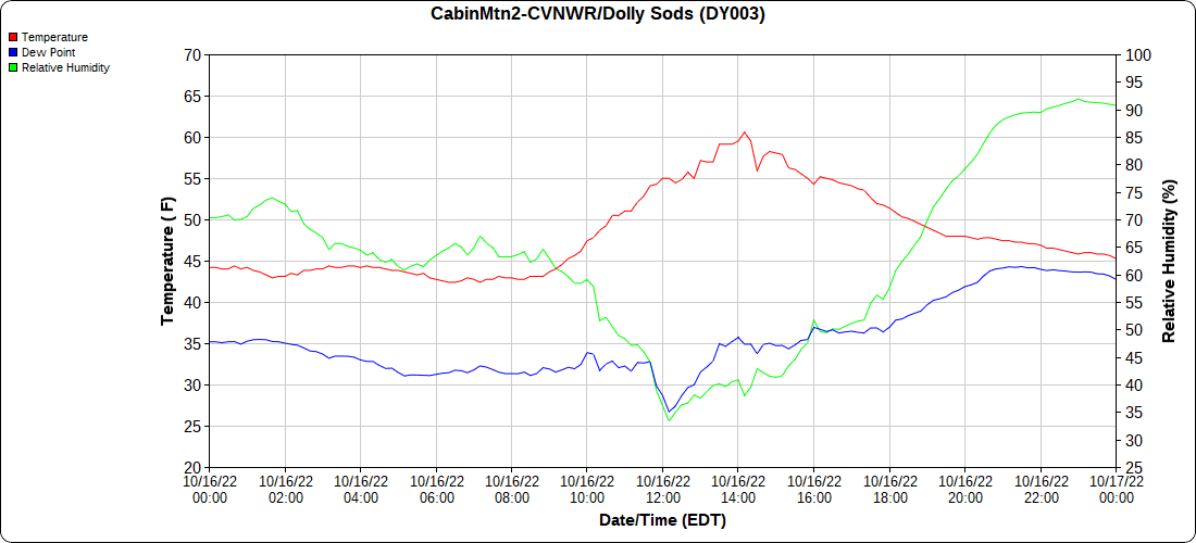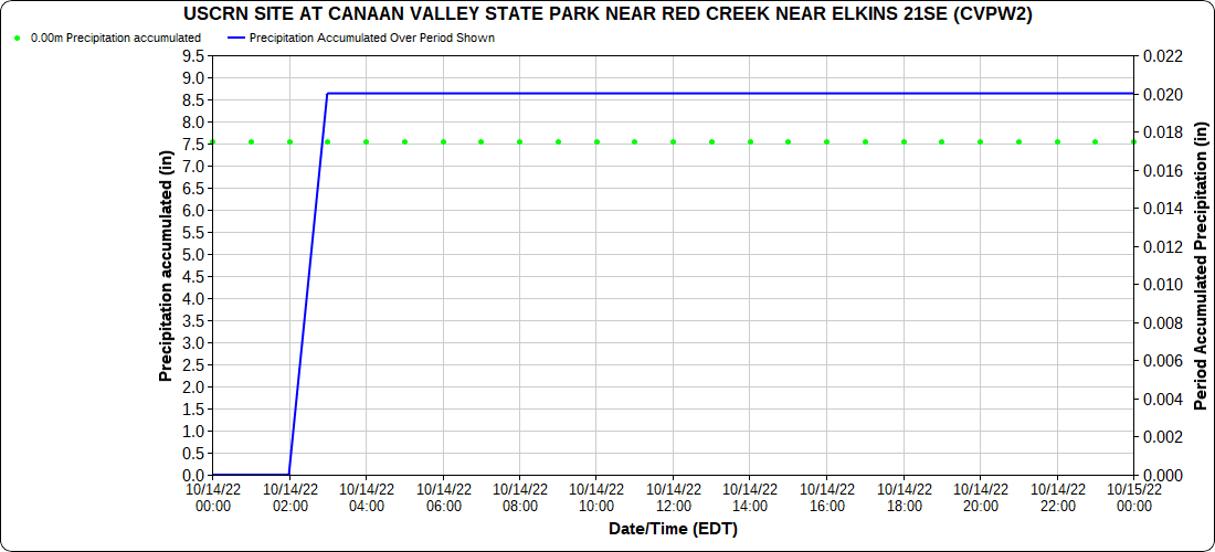 Dy007-Canaan Valley Refuge 3150′, Dy002-Cabin Mt at Bald Knob 4350′, Dy003-Cabin Mt-Western Sods 4035′, Dy004-Spruce Knob 4820′, Cvpw2-Climate Reference Network Canaan 3380′, KW99-Petersburg Grant County Airport 961, K2G4 Garrett County Airport 2933′, KCBE Cumberland Airport 774′, KEKN Elkins Airport 1985′, KMGW Morgantown Airport 1227′, PMN16-Mt.Davis 3038′