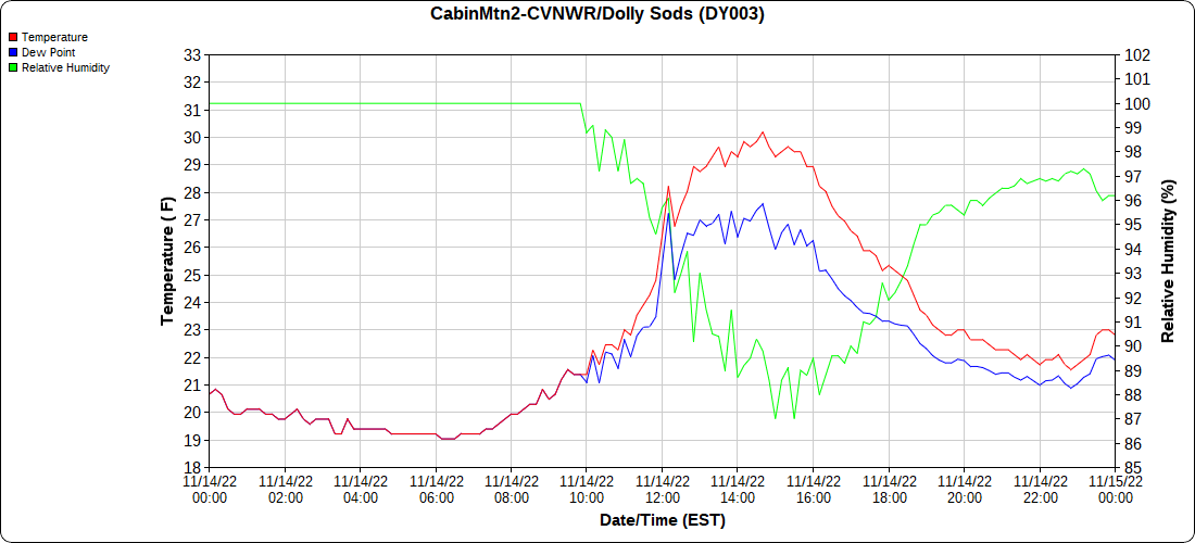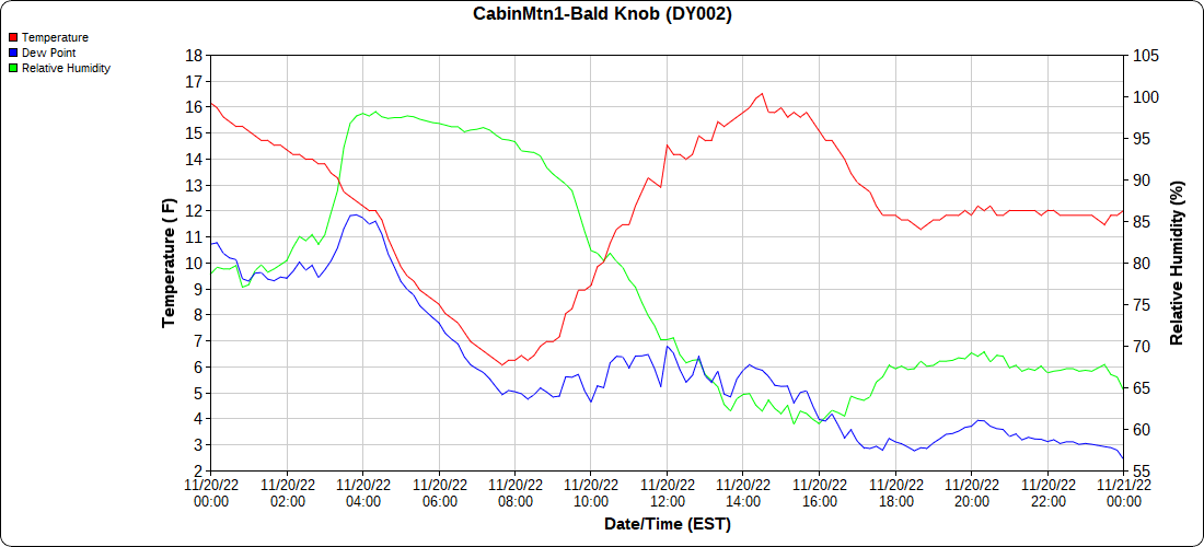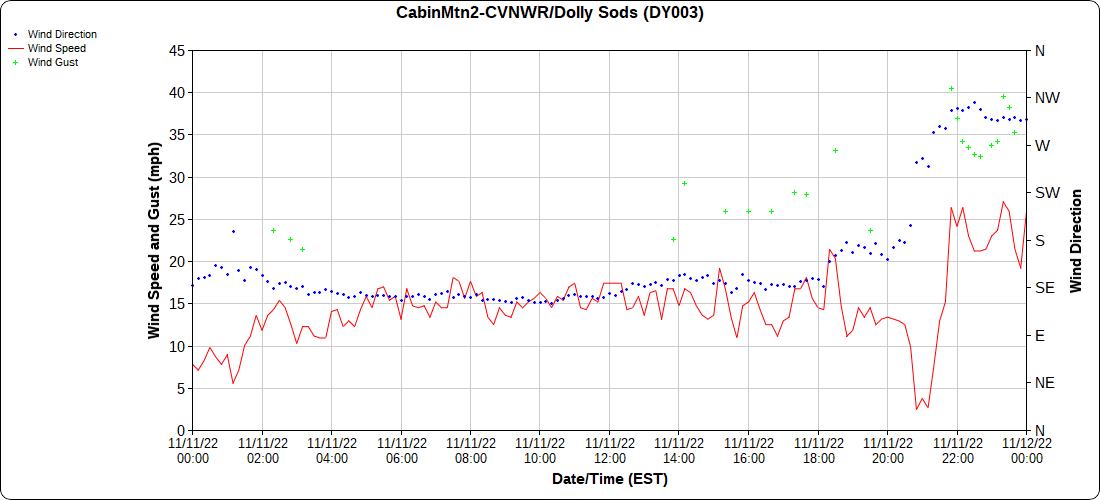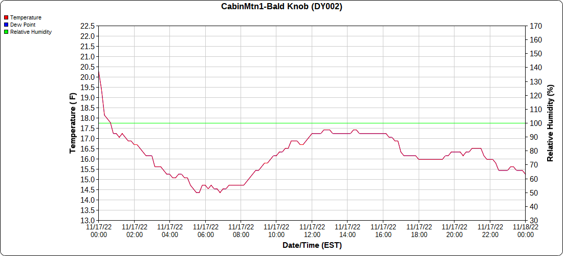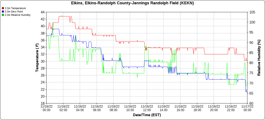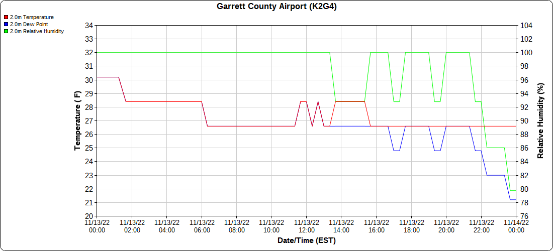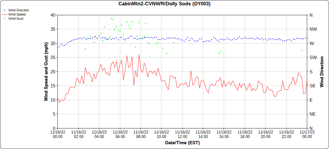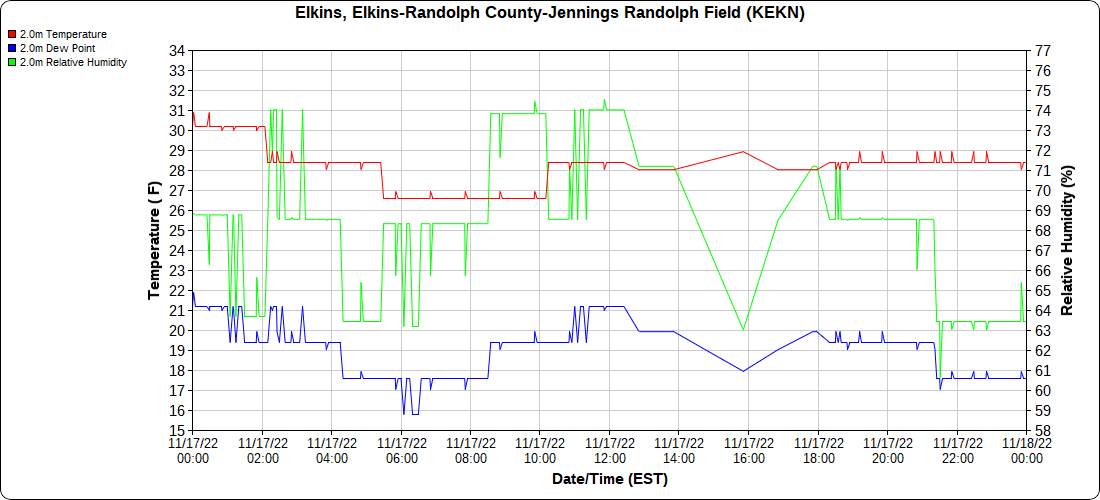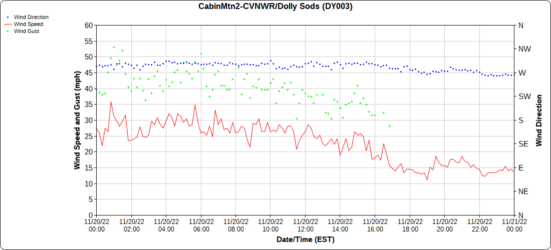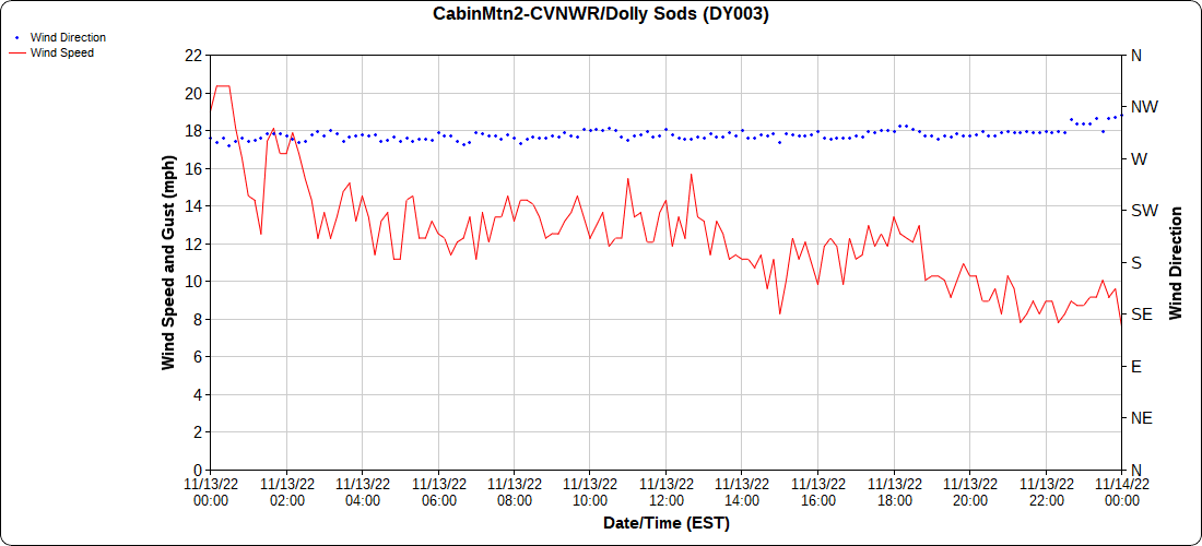 Dy007-Canaan Valley Refuge 3150′, Dy002-Cabin Mt at Bald Knob 4350′, Dy003-Cabin Mt-Western Sods 4035′, Dy004-Spruce Knob 4820′, Cvpw2-Climate Reference Network Canaan 3380′, KW99-Petersburg Grant County Airport 961, K2G4 Garrett County Airport 2933′, KCBE Cumberland Airport 774′, KEKN Elkins Airport 1985′, KMGW Morgantown Airport 1227′, PMN16-Mt.Davis 3038′