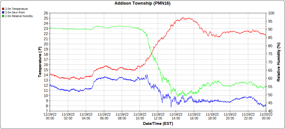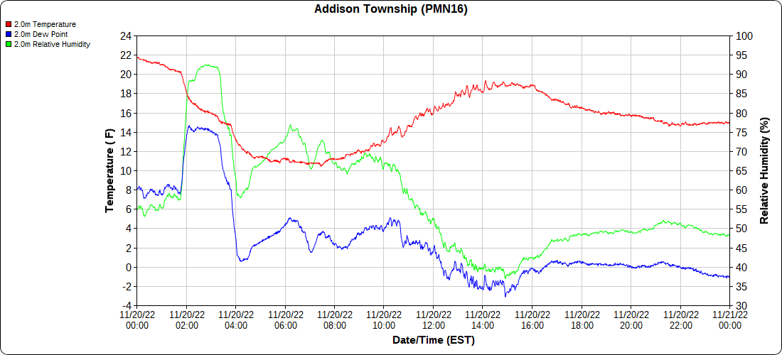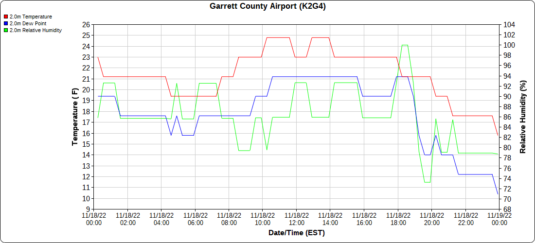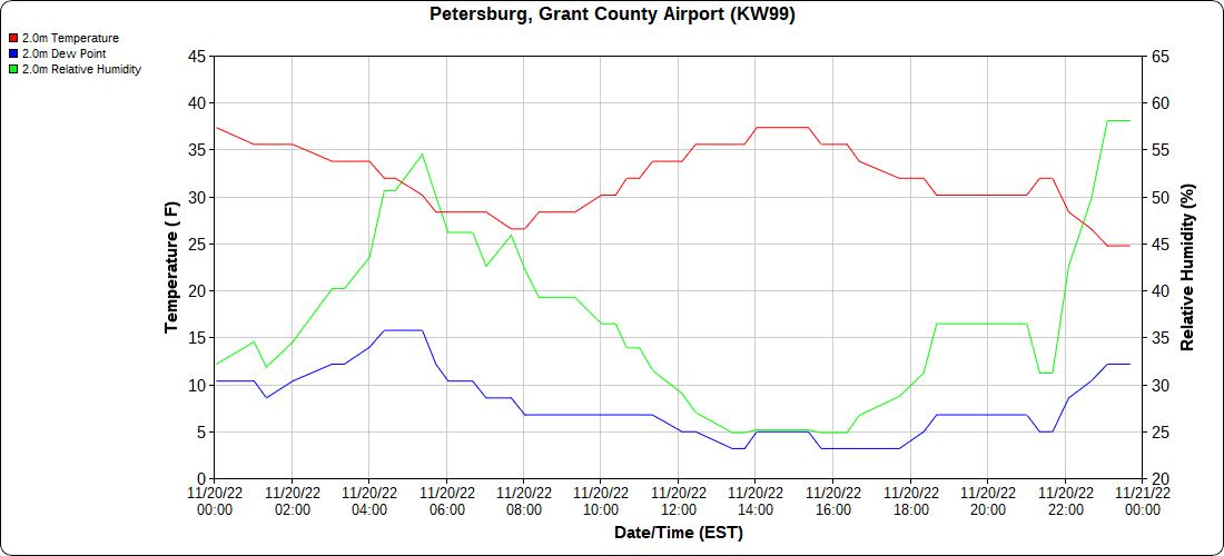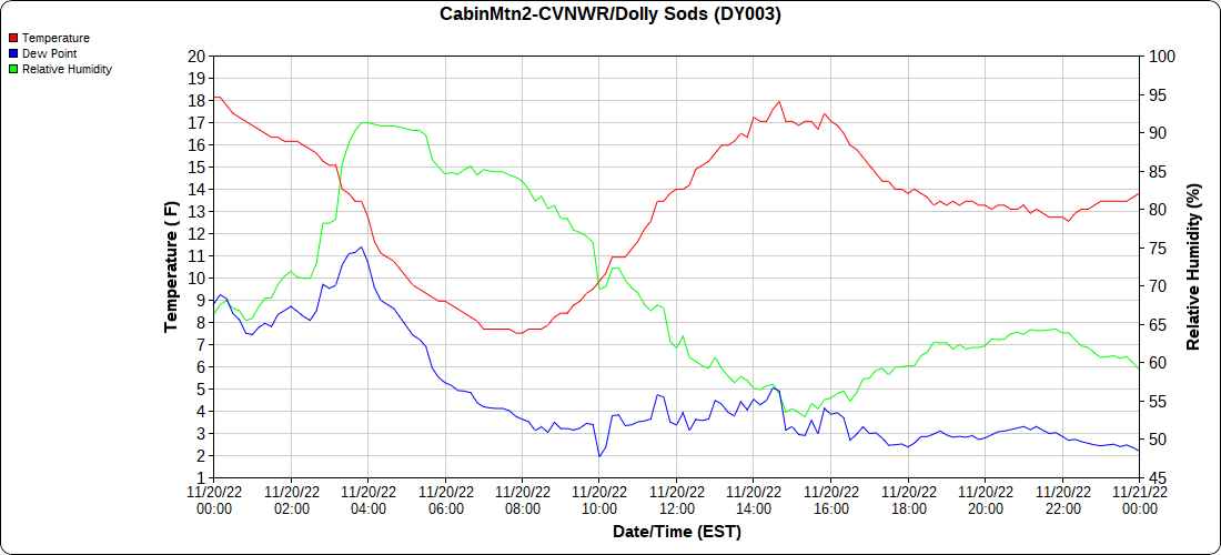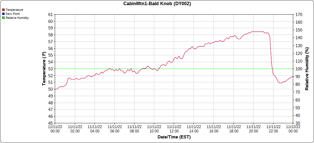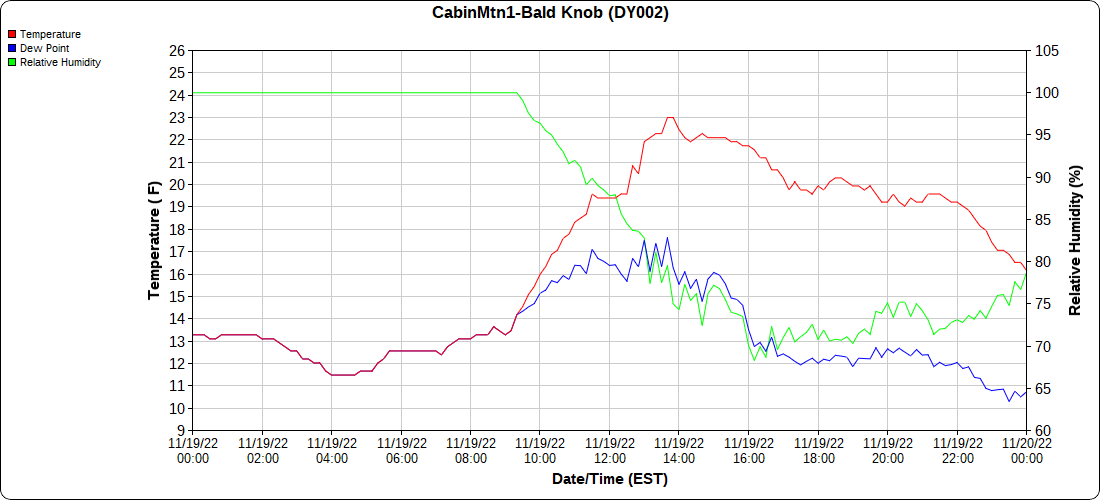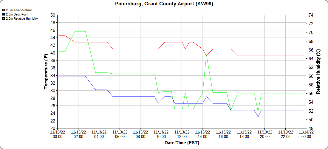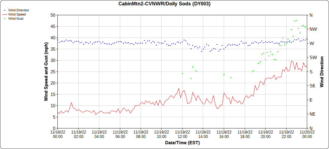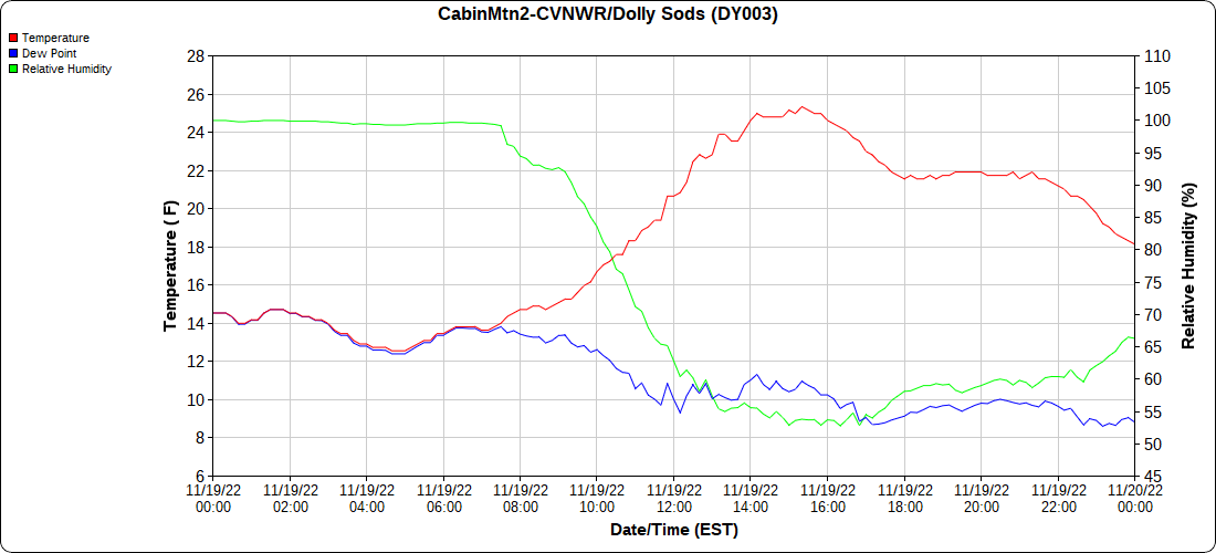 Dy007-Canaan Valley Refuge 3150′, Dy002-Cabin Mt at Bald Knob 4350′, Dy003-Cabin Mt-Western Sods 4035′, Dy004-Spruce Knob 4820′, Cvpw2-Climate Reference Network Canaan 3380′, KW99-Petersburg Grant County Airport 961, K2G4 Garrett County Airport 2933′, KCBE Cumberland Airport 774′, KEKN Elkins Airport 1985′, KMGW Morgantown Airport 1227′, PMN16-Mt.Davis 3038′
