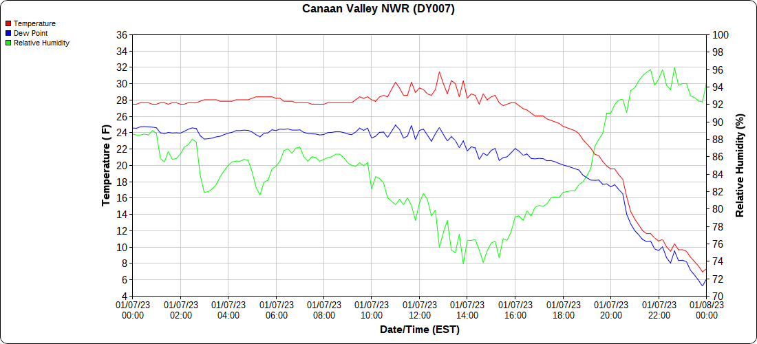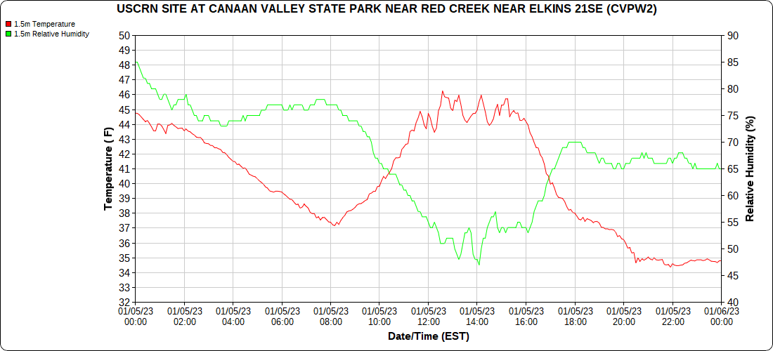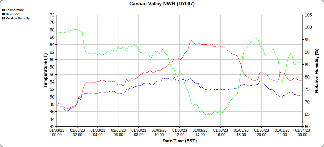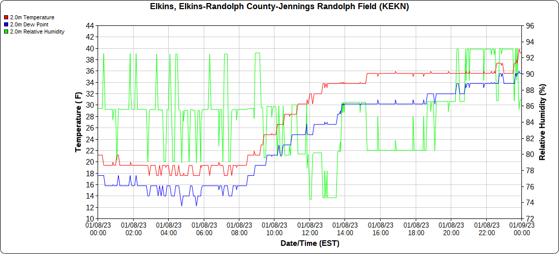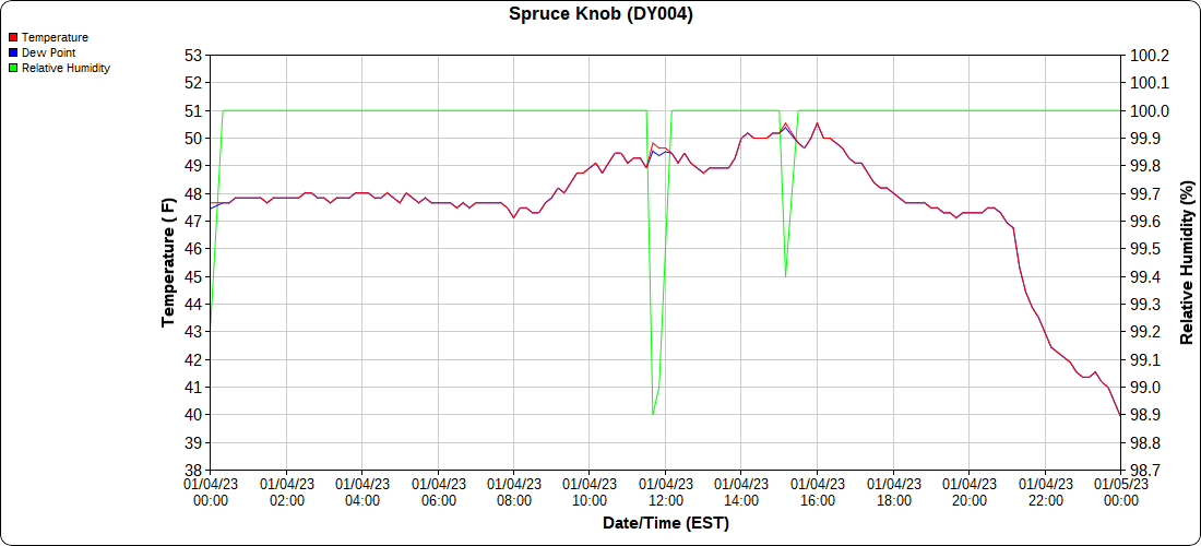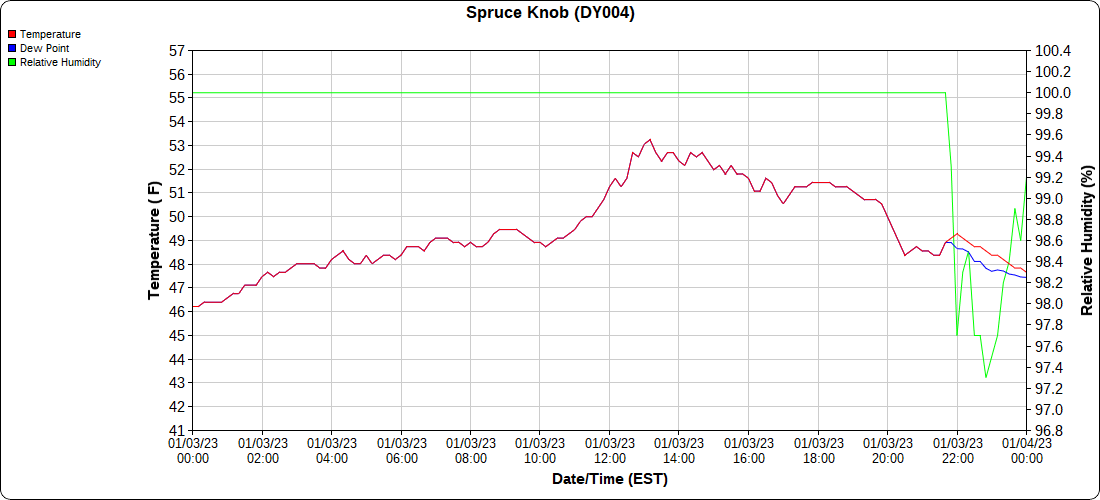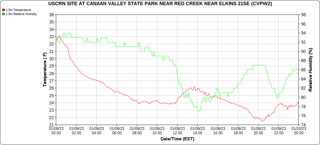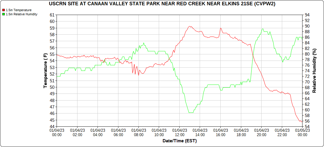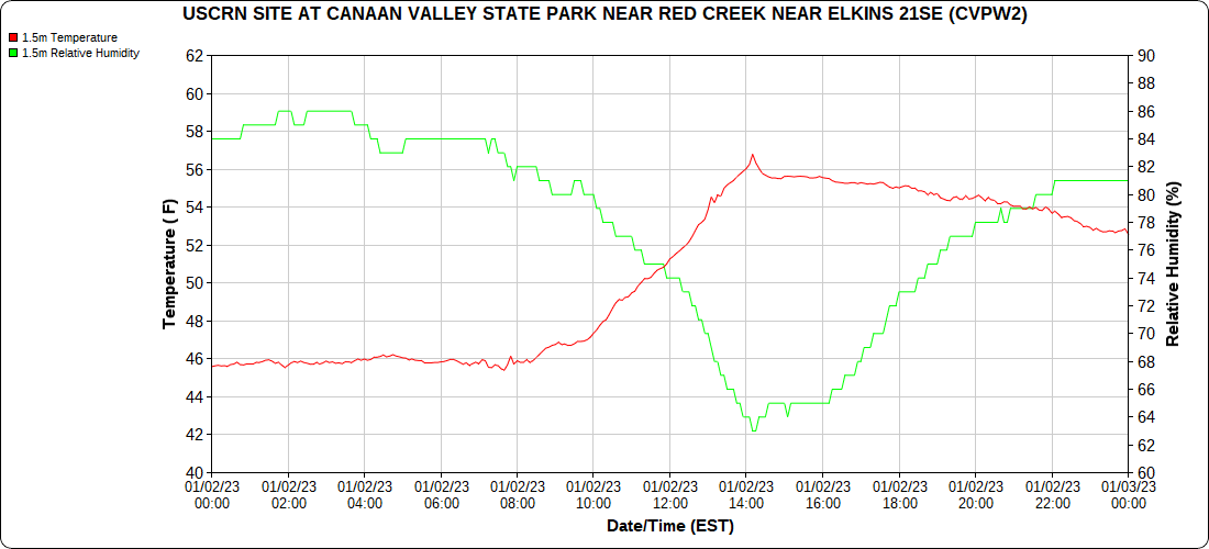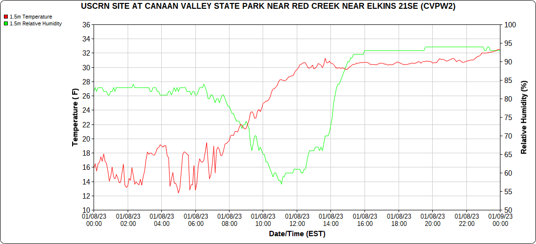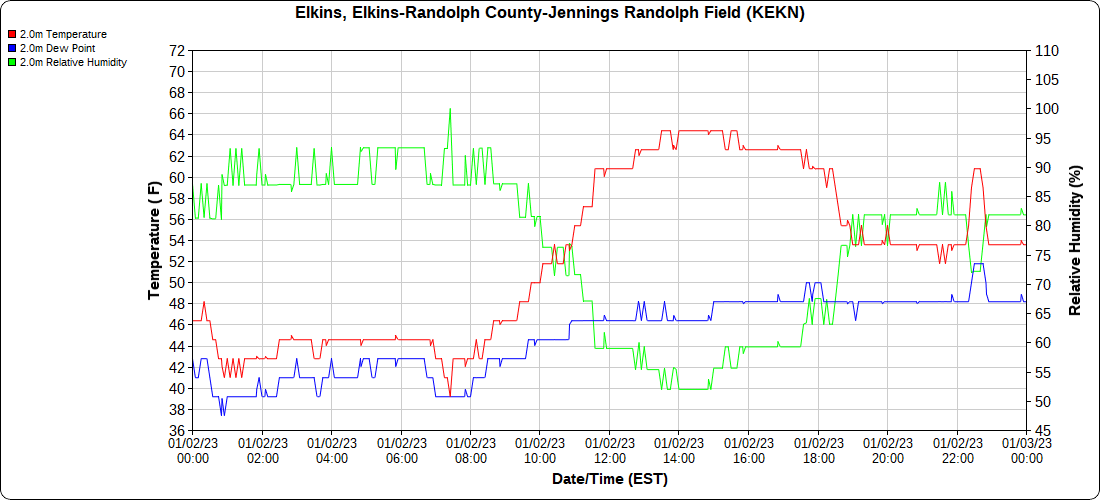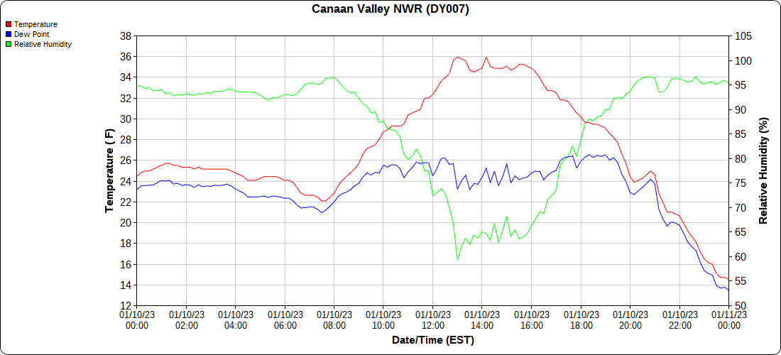 Dy007-Canaan Valley Refuge 3150′, Dy002-Cabin Mt at Bald Knob 4350′, Dy003-Cabin Mt-Western Sods 4035′, Dy004-Spruce Knob 4820′, Cvpw2-Climate Reference Network Canaan 3380′, KW99-Petersburg Grant County Airport 961, K2G4 Garrett County Airport 2933′, KCBE Cumberland Airport 774′, KEKN Elkins Airport 1985′, KMGW Morgantown Airport 1227′, PMN16-Mt.Davis 3038′, KDCA-Reagan National 15′