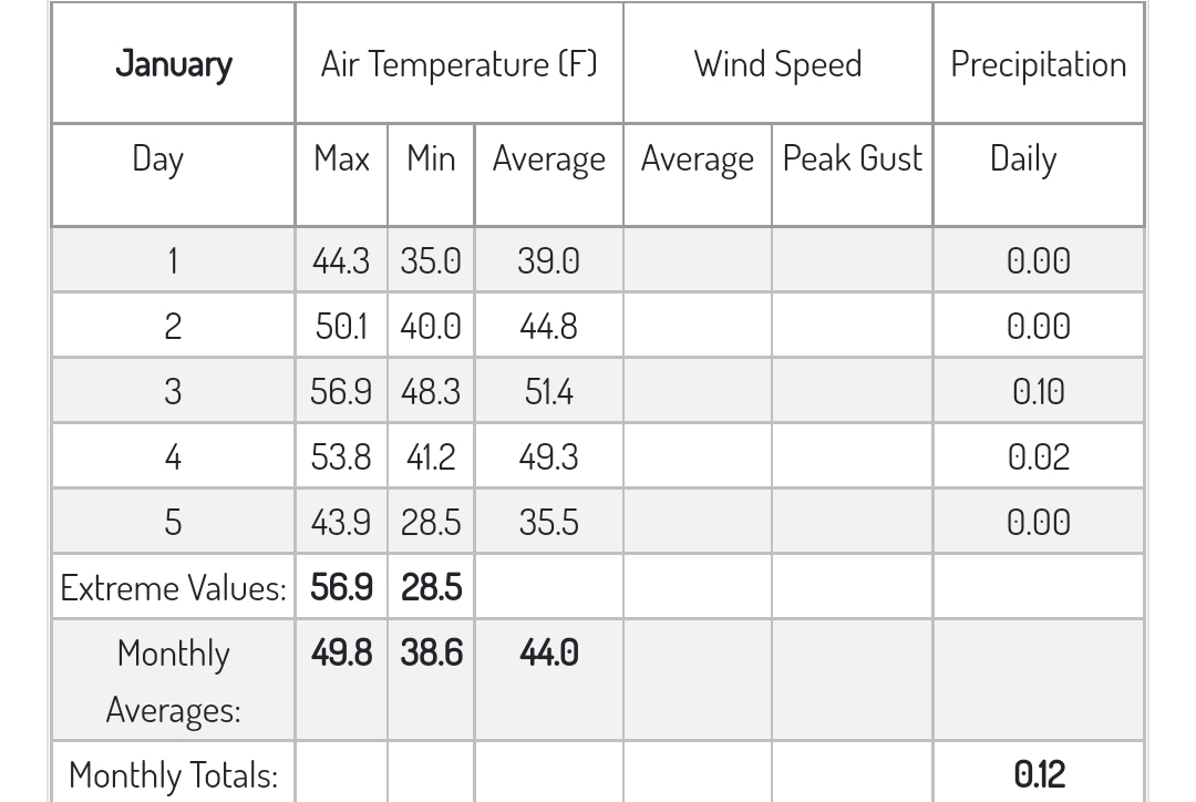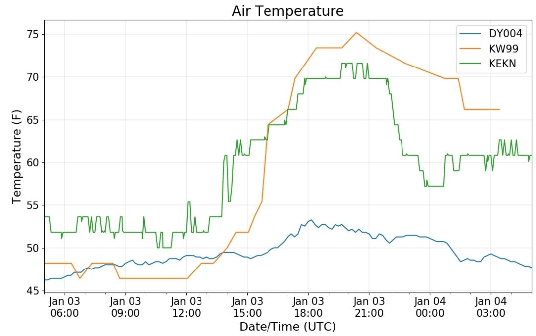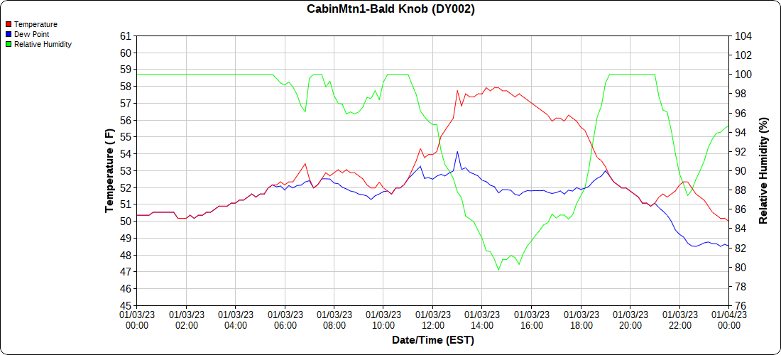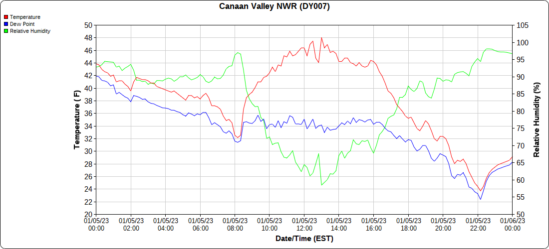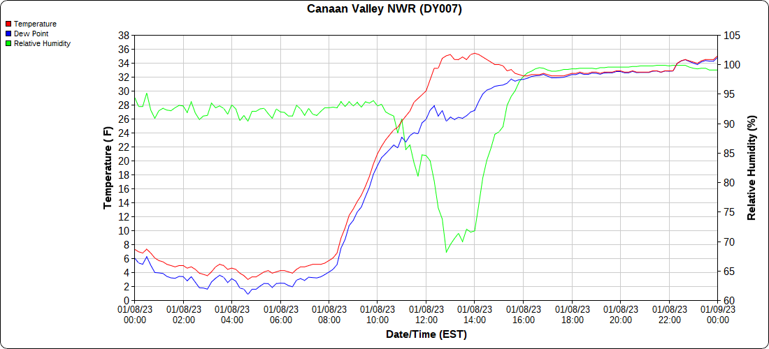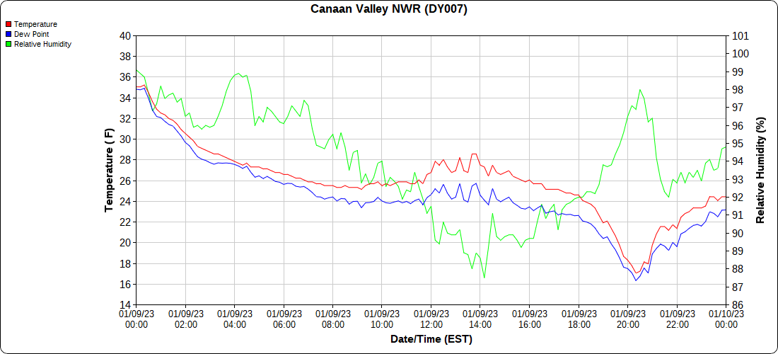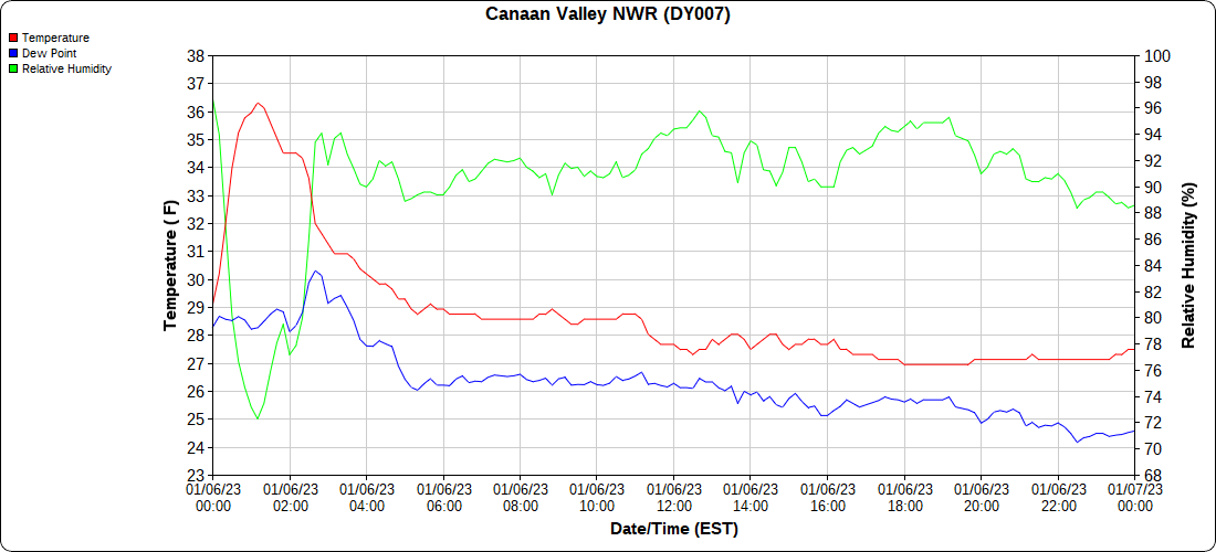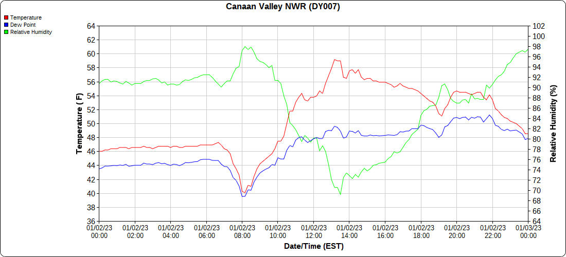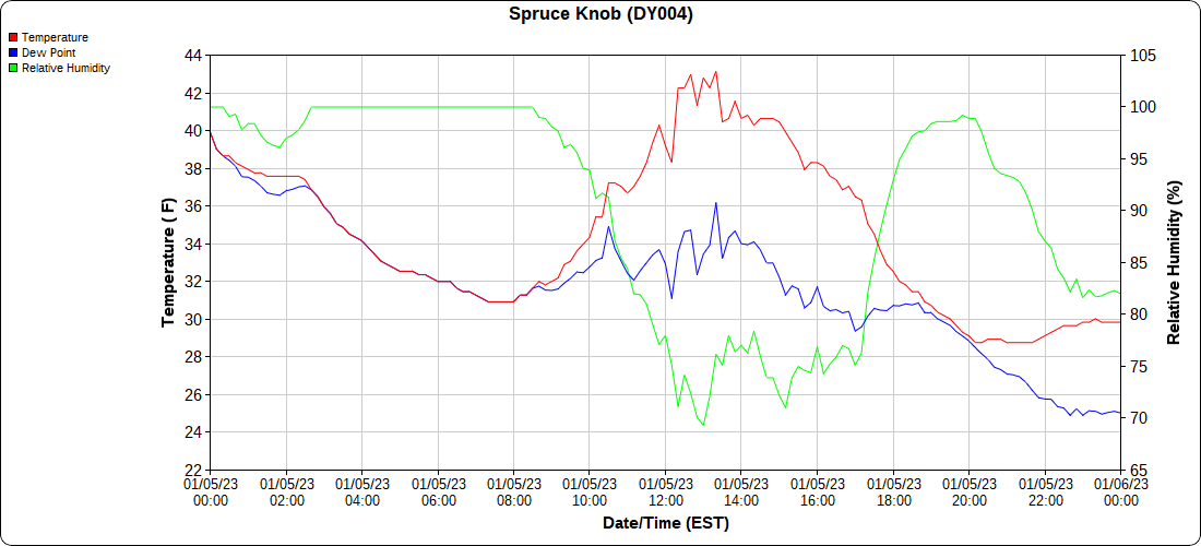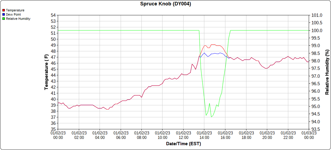 Dy007-Canaan Valley Refuge 3150′, Dy002-Cabin Mt at Bald Knob 4350′, Dy003-Cabin Mt-Western Sods 4035′, Dy004-Spruce Knob 4820′, Cvpw2-Climate Reference Network Canaan 3380′, KW99-Petersburg Grant County Airport 961, K2G4 Garrett County Airport 2933′, KCBE Cumberland Airport 774′, KEKN Elkins Airport 1985′, KMGW Morgantown Airport 1227′, PMN16-Mt.Davis 3038′, KDCA-Reagan National 15′
