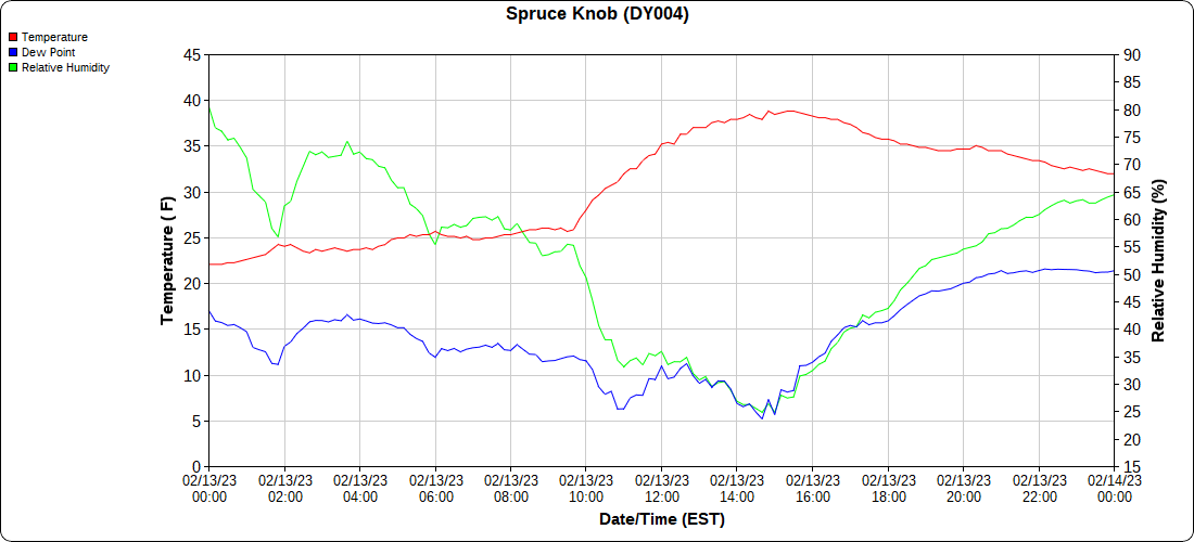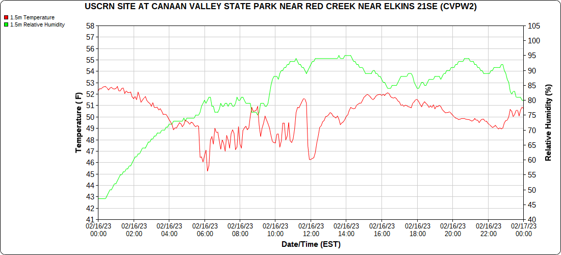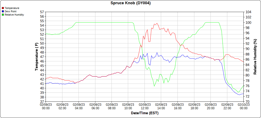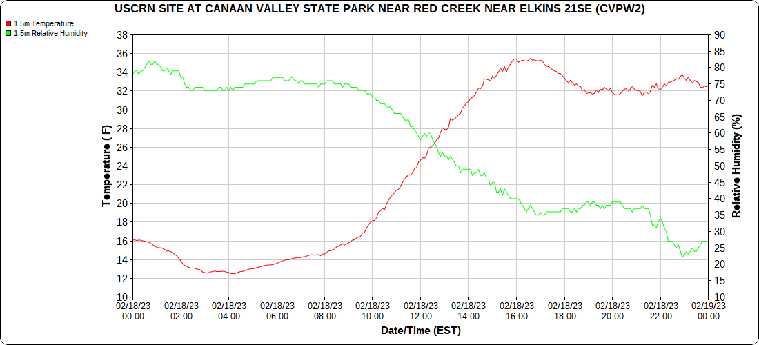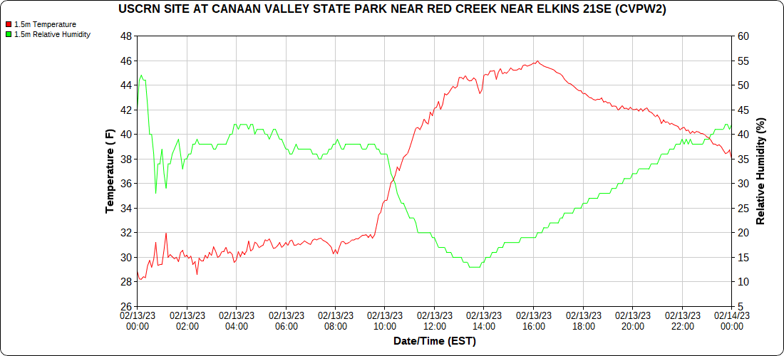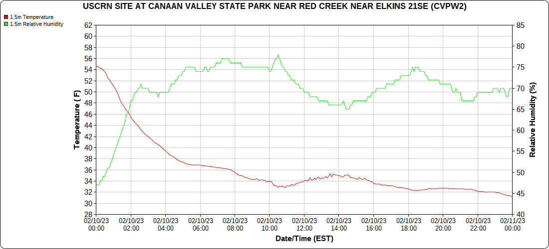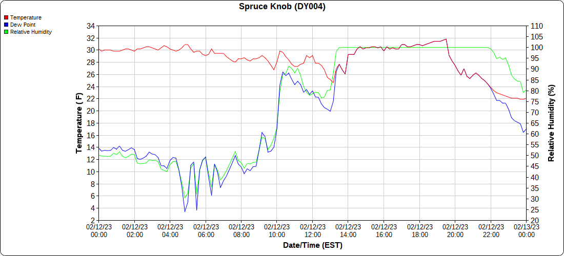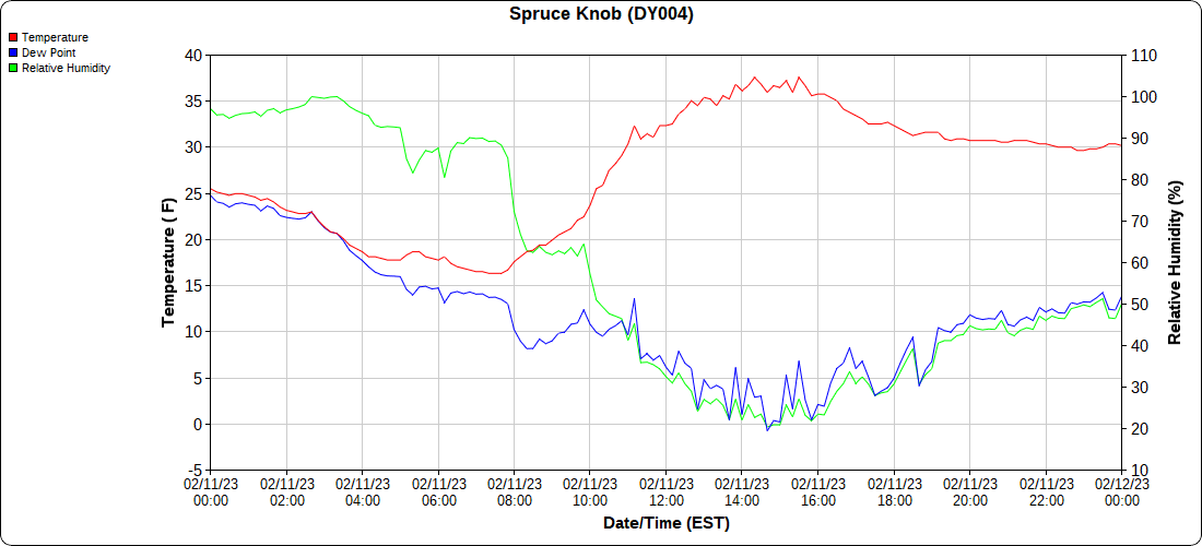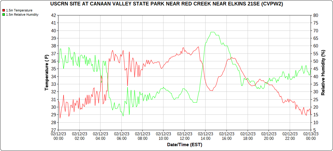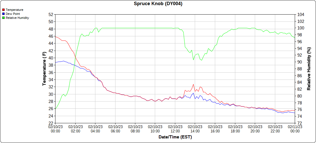 Dy007-Canaan Valley Refuge 3150′, Dy002-Cabin Mt at Bald Knob 4350′, Dy003-Cabin Mt-Western Sods 4035′, Dy004-Spruce Knob 4820′, Cvpw2-Climate Reference Network Canaan 3380′, KW99-Petersburg Grant County Airport 961, K2G4 Garrett County Airport 2933′, KCBE Cumberland Airport 774′, KEKN Elkins Airport 1985′, KMGW Morgantown Airport 1227′, PMN16-Mt.Davis 3038′, KDCA-Reagan National 15′, G1472 Snowshoe 4500′, F0183 Burkes Garden 3050′
