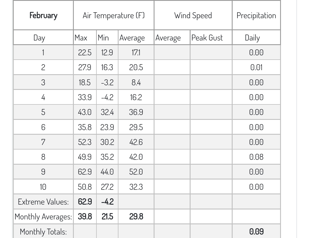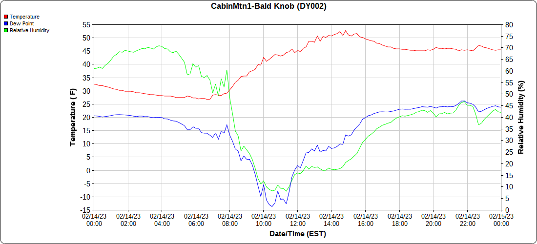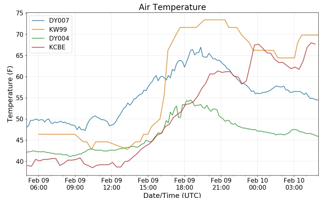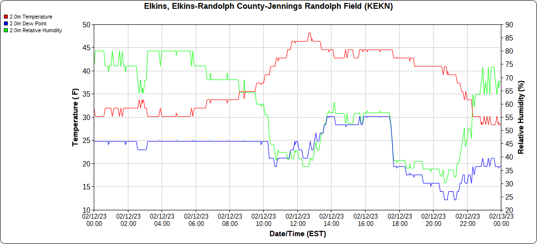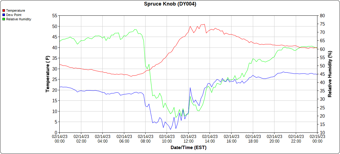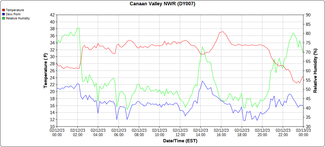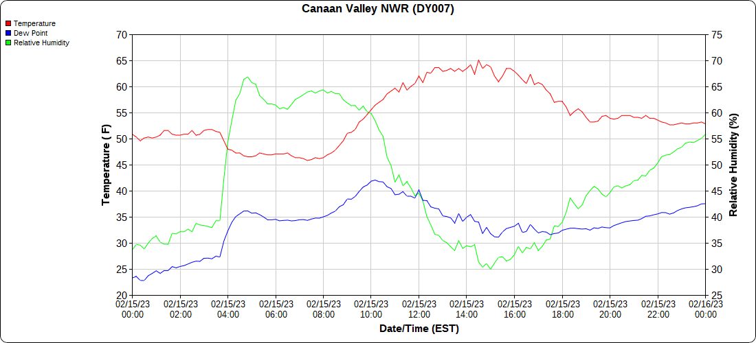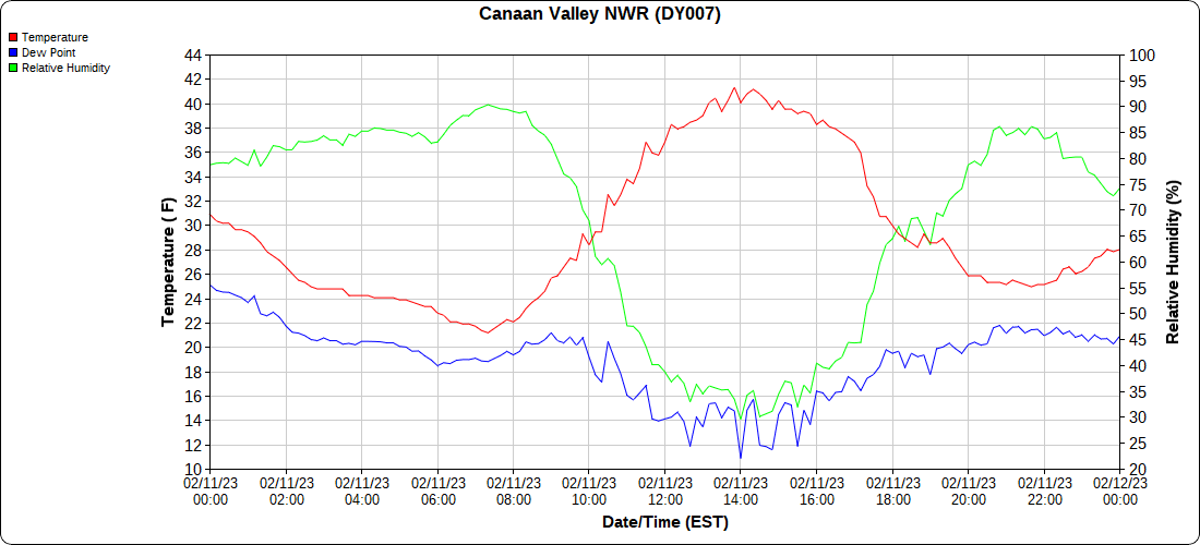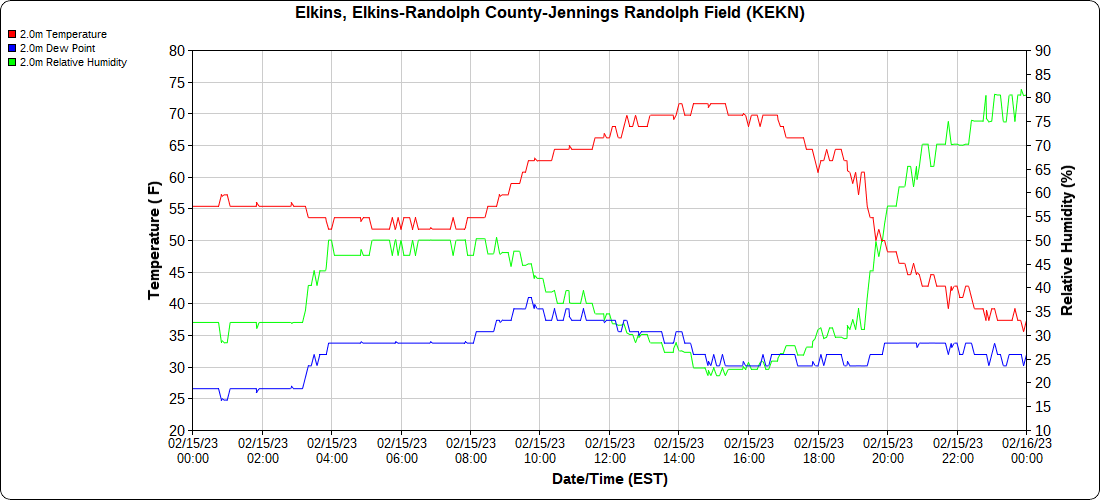 Dy007-Canaan Valley Refuge 3150′, Dy002-Cabin Mt at Bald Knob 4350′, Dy003-Cabin Mt-Western Sods 4035′, Dy004-Spruce Knob 4820′, Cvpw2-Climate Reference Network Canaan 3380′, KW99-Petersburg Grant County Airport 961, K2G4 Garrett County Airport 2933′, KCBE Cumberland Airport 774′, KEKN Elkins Airport 1985′, KMGW Morgantown Airport 1227′, PMN16-Mt.Davis 3038′, KDCA-Reagan National 15′, G1472 Snowshoe 4500′, F0183 Burkes Garden 3050′