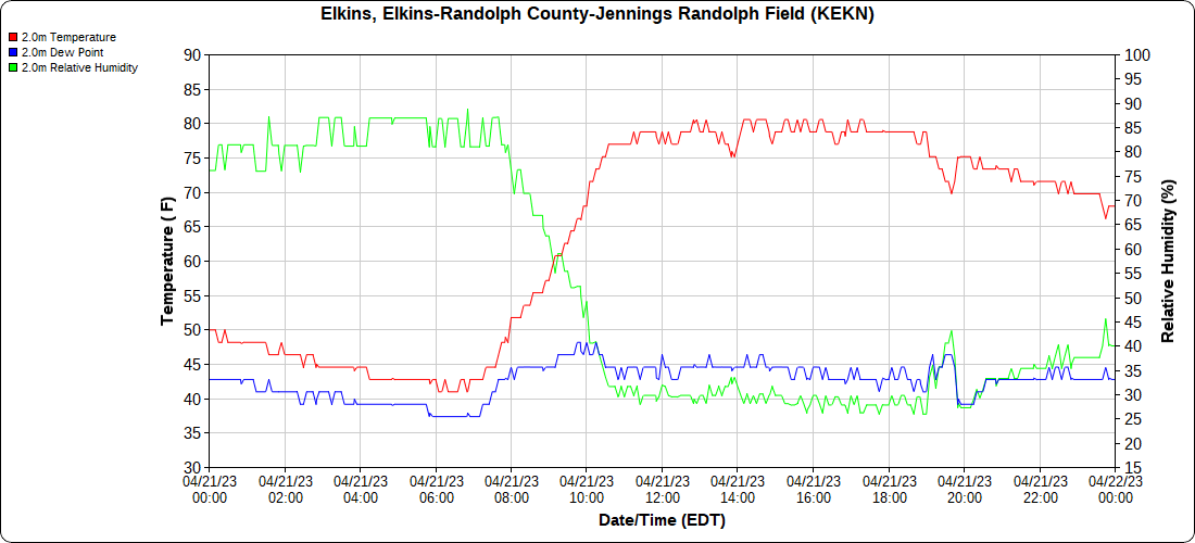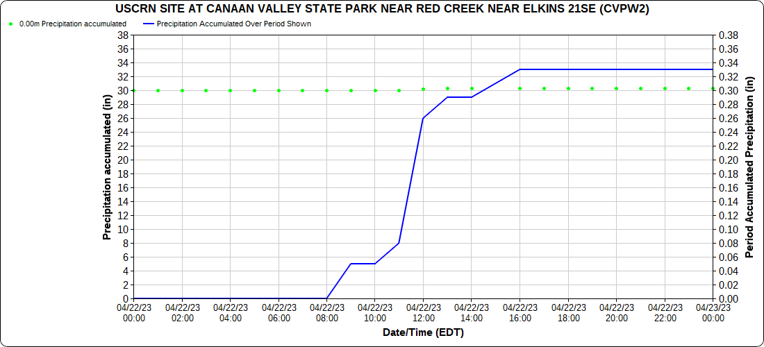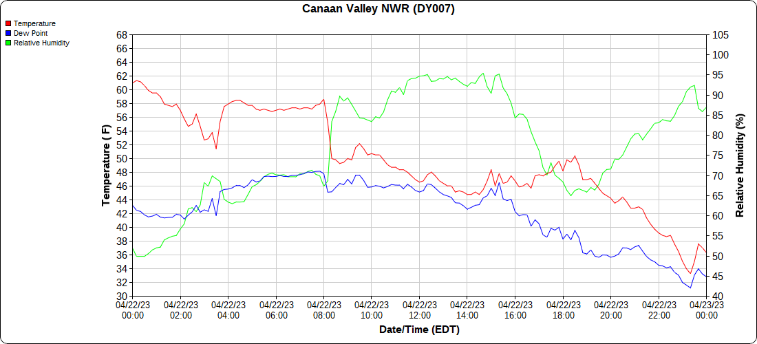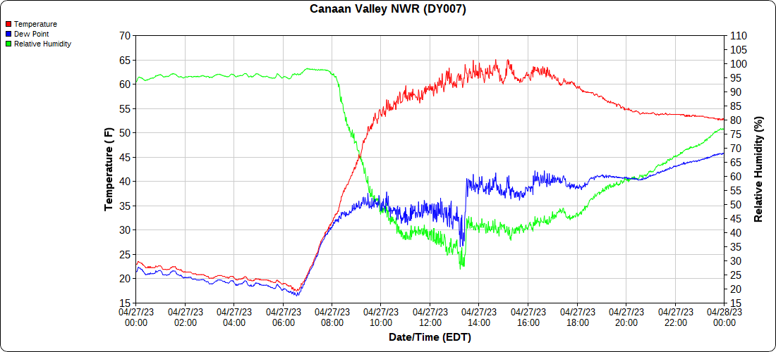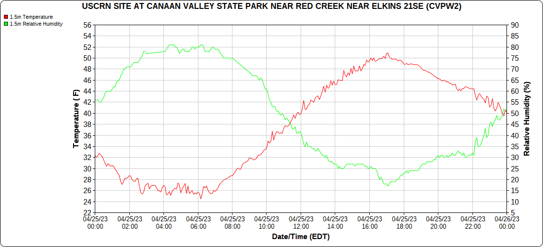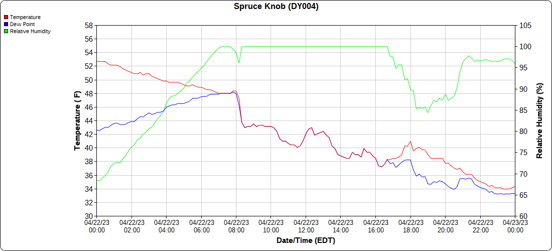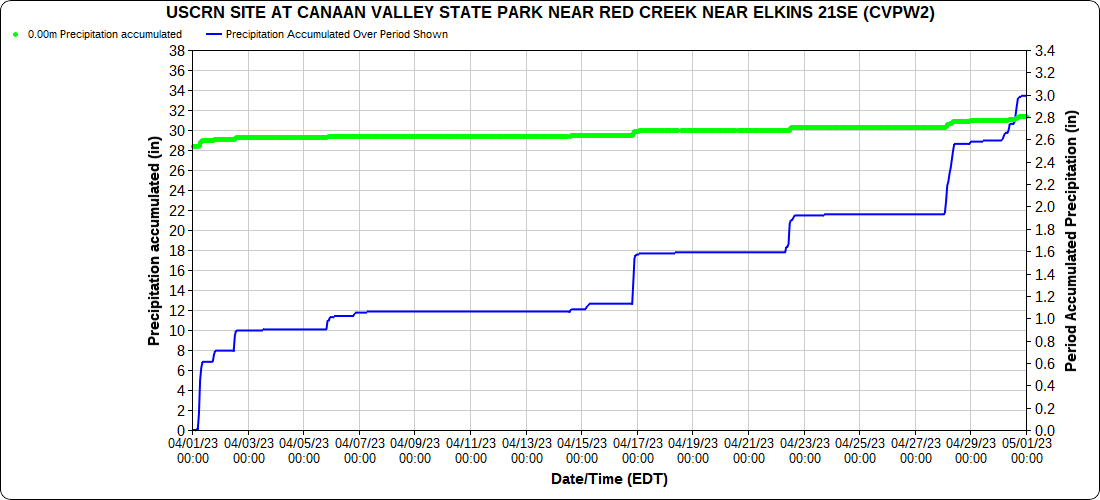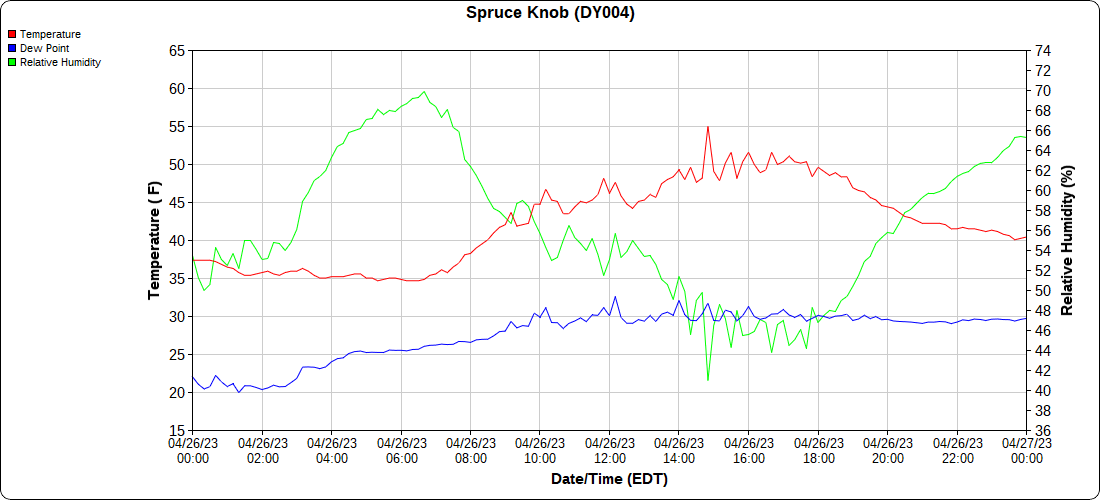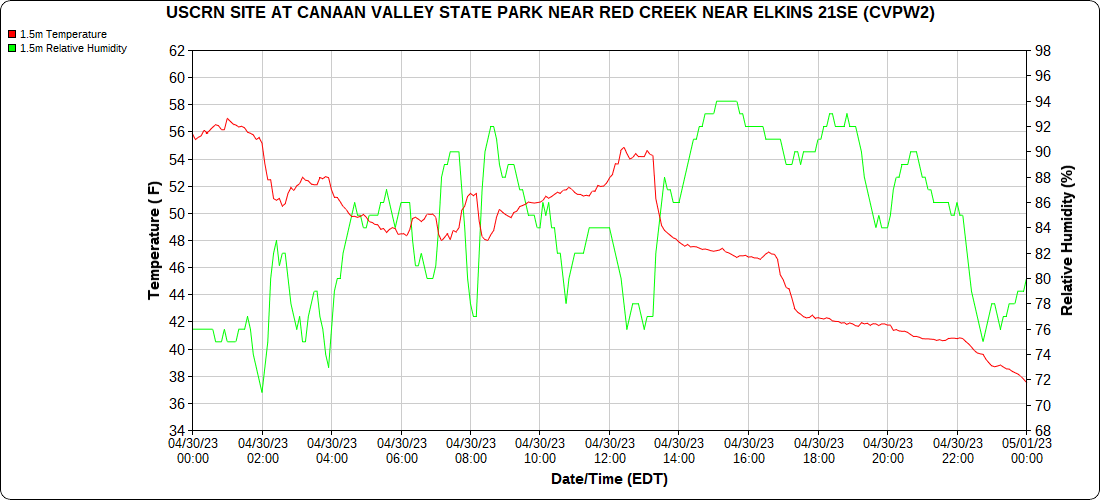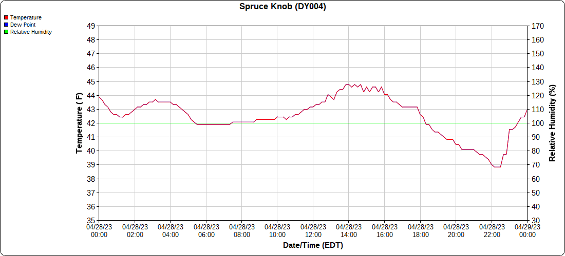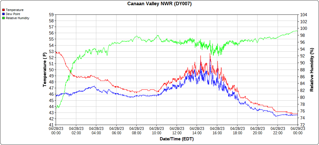 Dy007-Canaan Valley Refuge 3150′, Dy002-Cabin Mt at Bald Knob 4350′, Dy003-Cabin Mt-Western Sods 4035′, Dy004-Spruce Knob 4820′, Cvpw2-Climate Reference Network Canaan 3380′, KW99-Petersburg Grant County Airport 961, K2G4 Garrett County Airport 2933′, KCBE Cumberland Airport 774′, KEKN Elkins Airport 1985′, KMGW Morgantown Airport 1227′, PMN16-Mt.Davis 3038′, KDCA-Reagan National 15′, G1472 Snowshoe 4500′, F0183 Burkes Garden 3050′