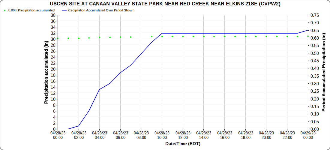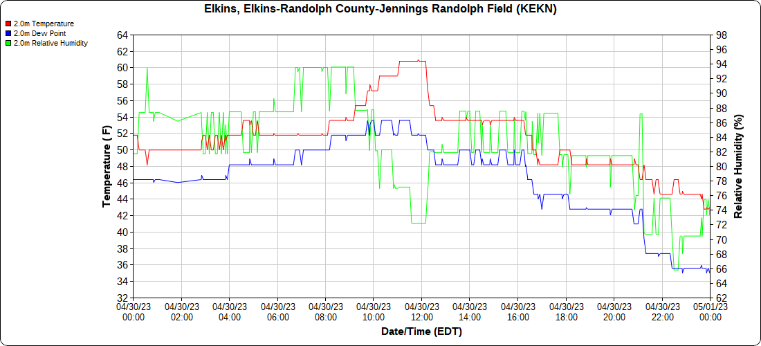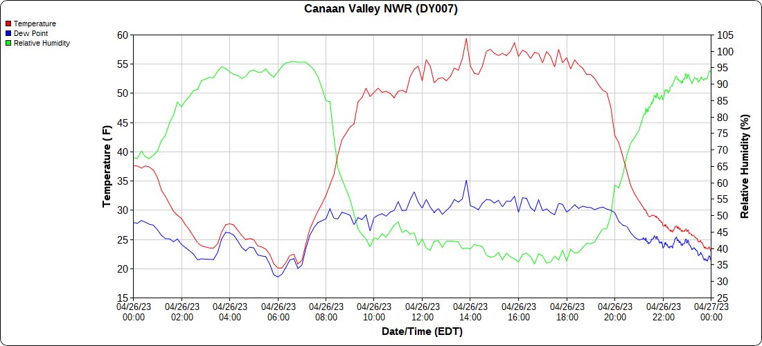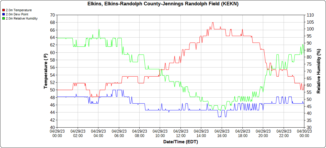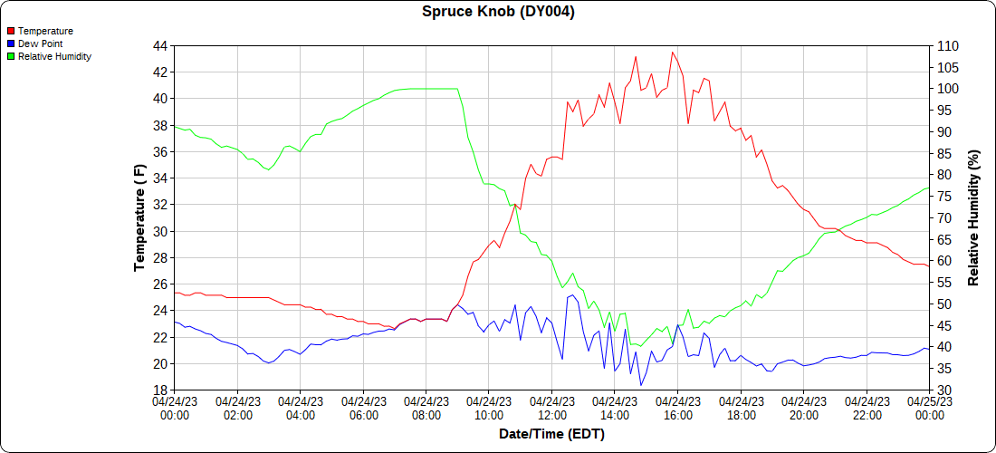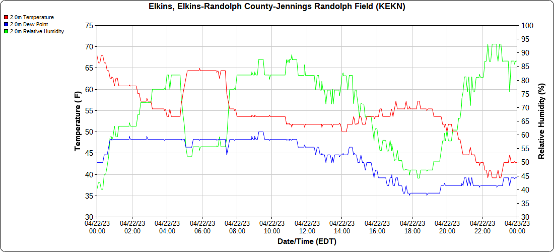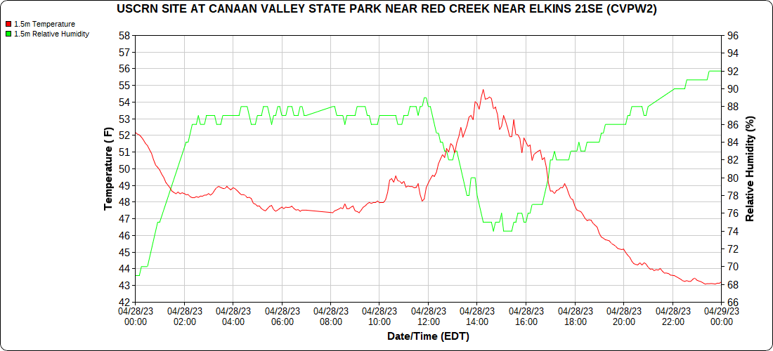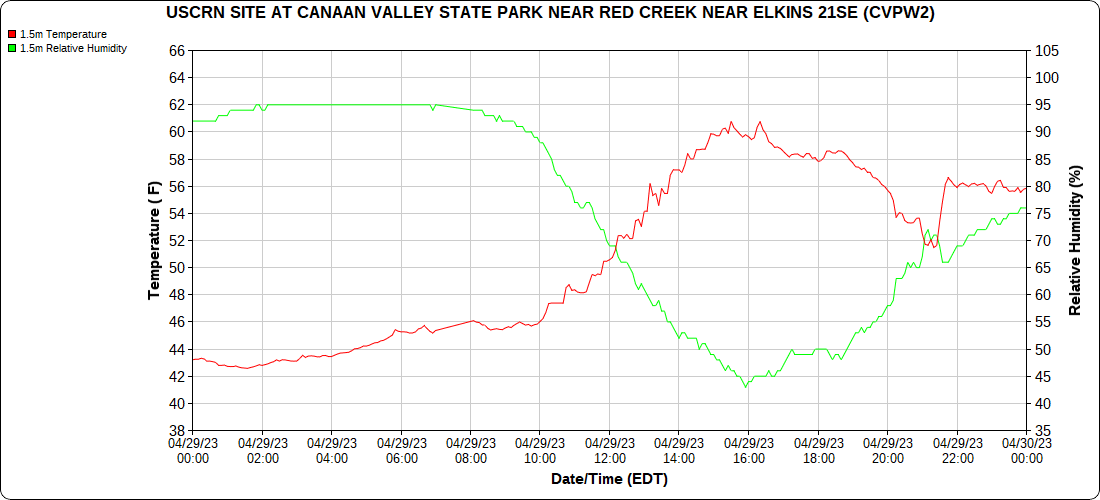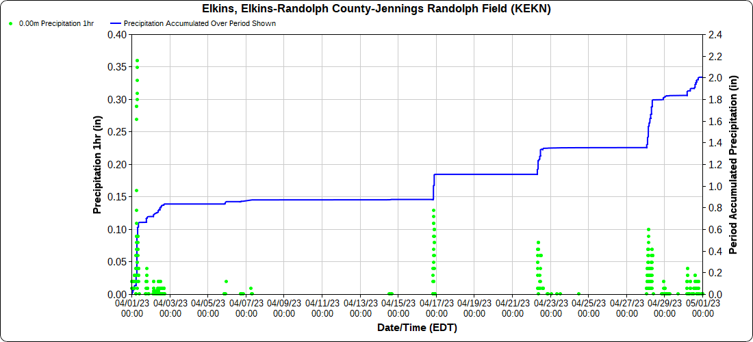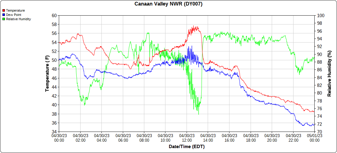 Dy007-Canaan Valley Refuge 3150′, Dy002-Cabin Mt at Bald Knob 4350′, Dy003-Cabin Mt-Western Sods 4035′, Dy004-Spruce Knob 4820′, Cvpw2-Climate Reference Network Canaan 3380′, KW99-Petersburg Grant County Airport 961, K2G4 Garrett County Airport 2933′, KCBE Cumberland Airport 774′, KEKN Elkins Airport 1985′, KMGW Morgantown Airport 1227′, PMN16-Mt.Davis 3038′, KDCA-Reagan National 15′, G1472 Snowshoe 4500′, F0183 Burkes Garden 3050′