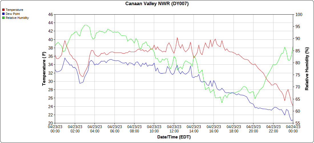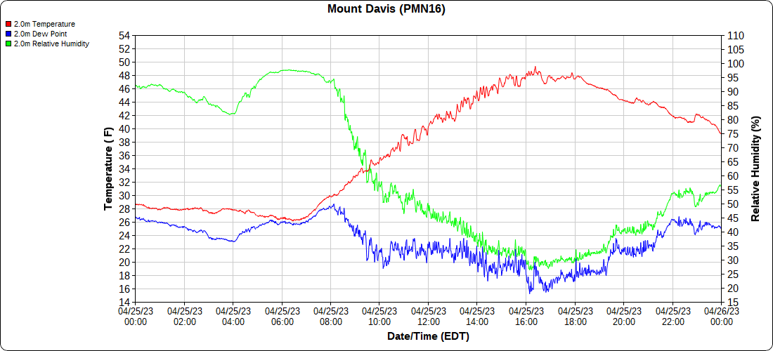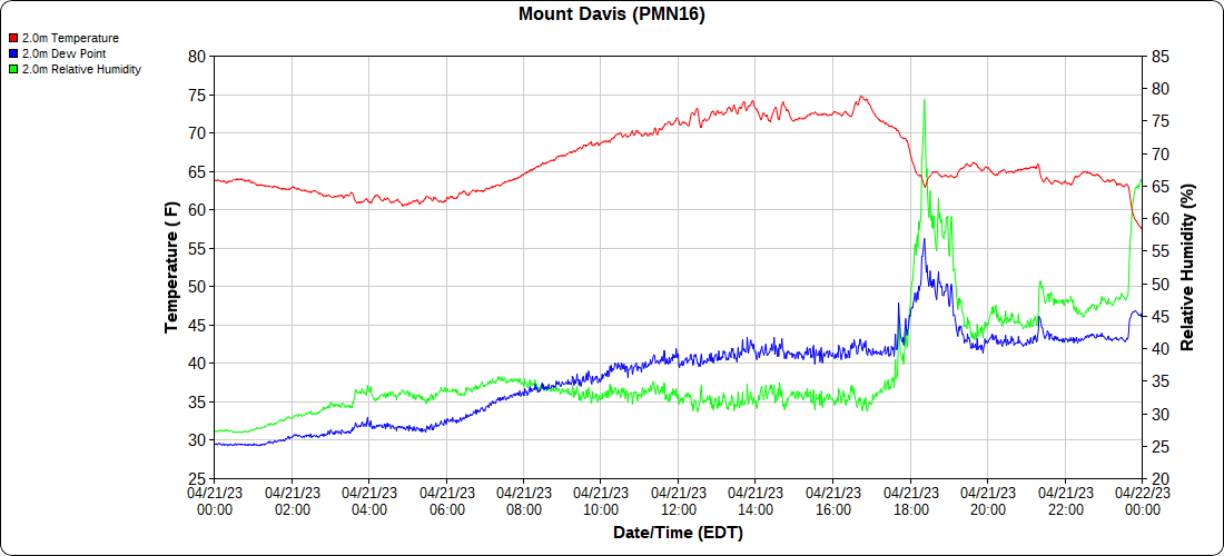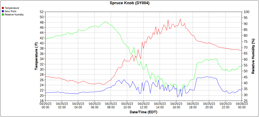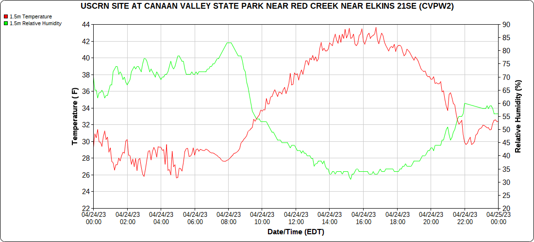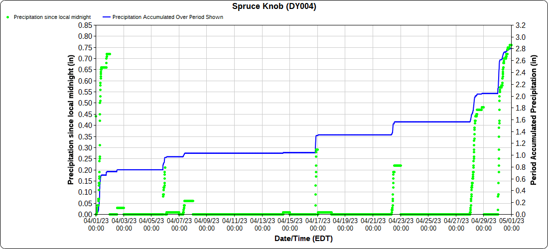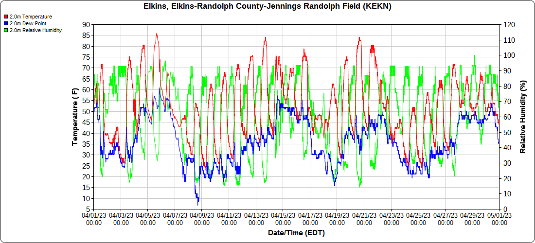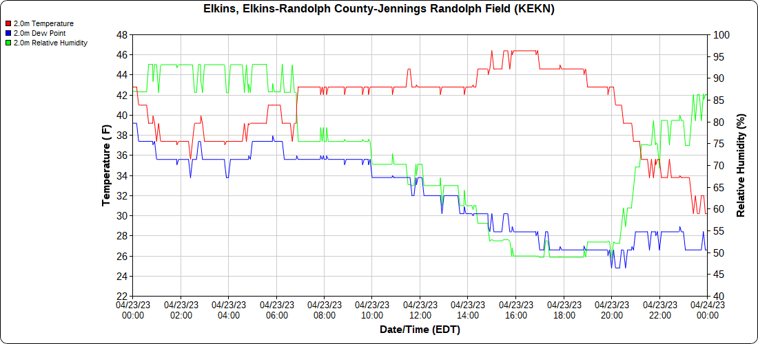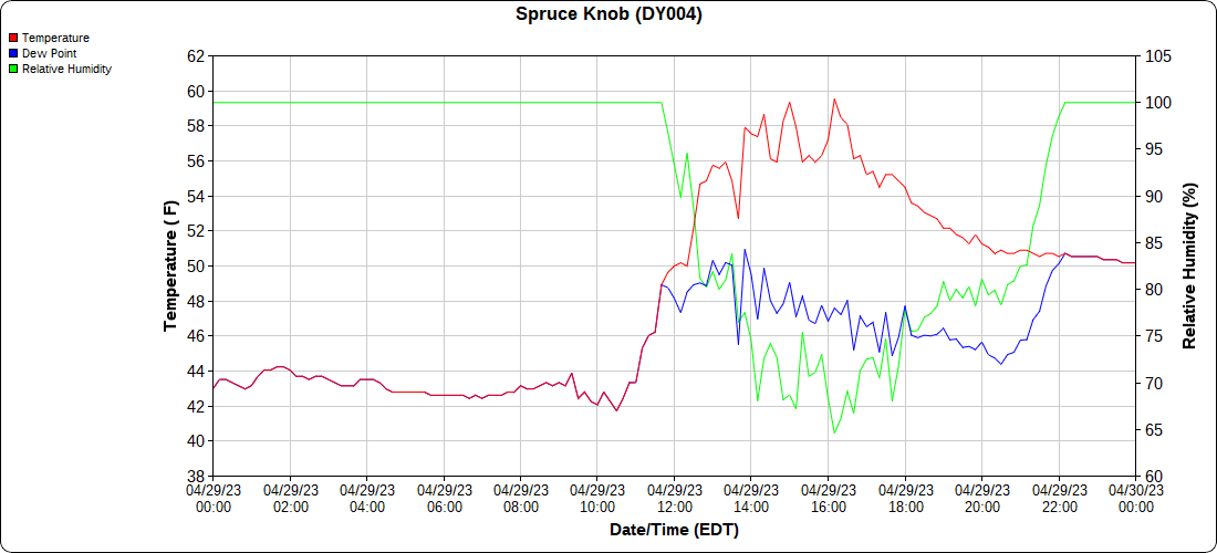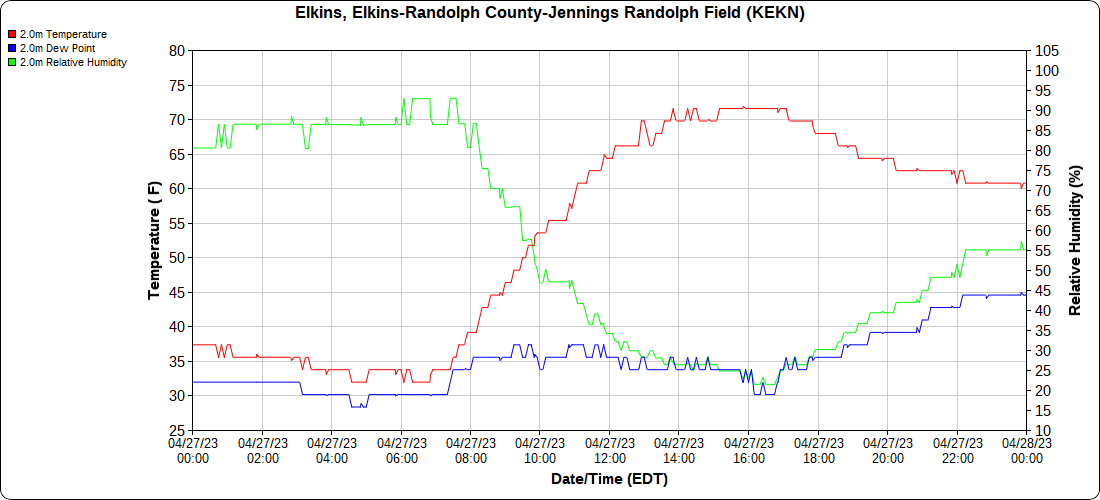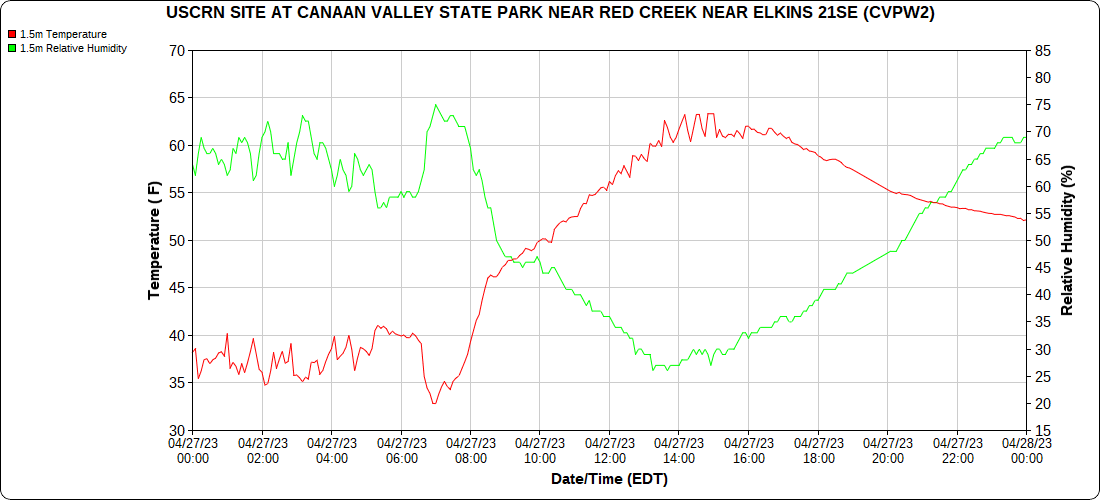 Dy007-Canaan Valley Refuge 3150′, Dy002-Cabin Mt at Bald Knob 4350′, Dy003-Cabin Mt-Western Sods 4035′, Dy004-Spruce Knob 4820′, Cvpw2-Climate Reference Network Canaan 3380′, KW99-Petersburg Grant County Airport 961, K2G4 Garrett County Airport 2933′, KCBE Cumberland Airport 774′, KEKN Elkins Airport 1985′, KMGW Morgantown Airport 1227′, PMN16-Mt.Davis 3038′, KDCA-Reagan National 15′, G1472 Snowshoe 4500′, F0183 Burkes Garden 3050′