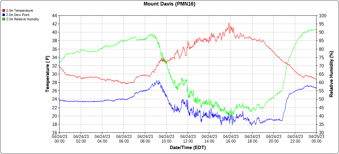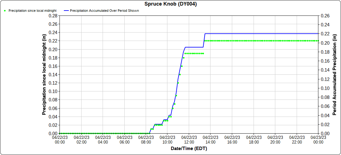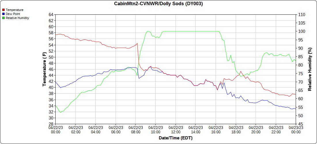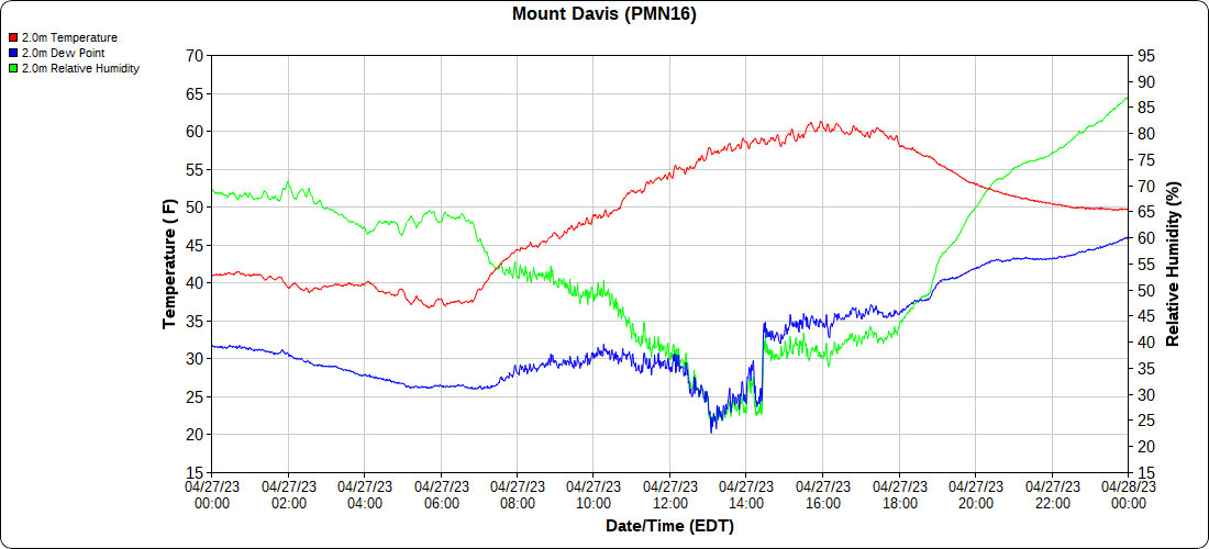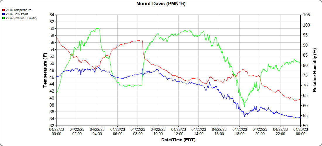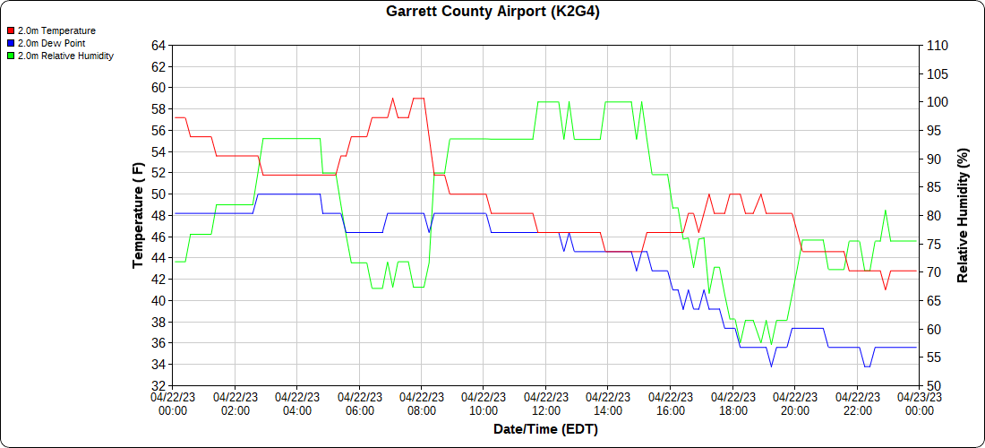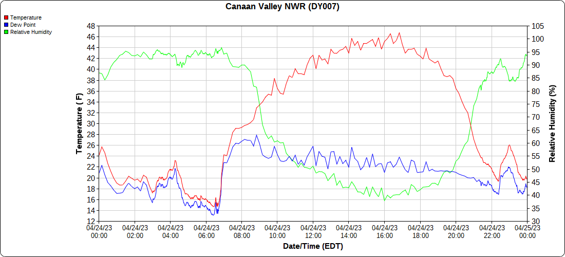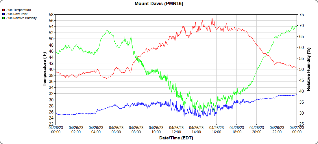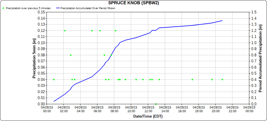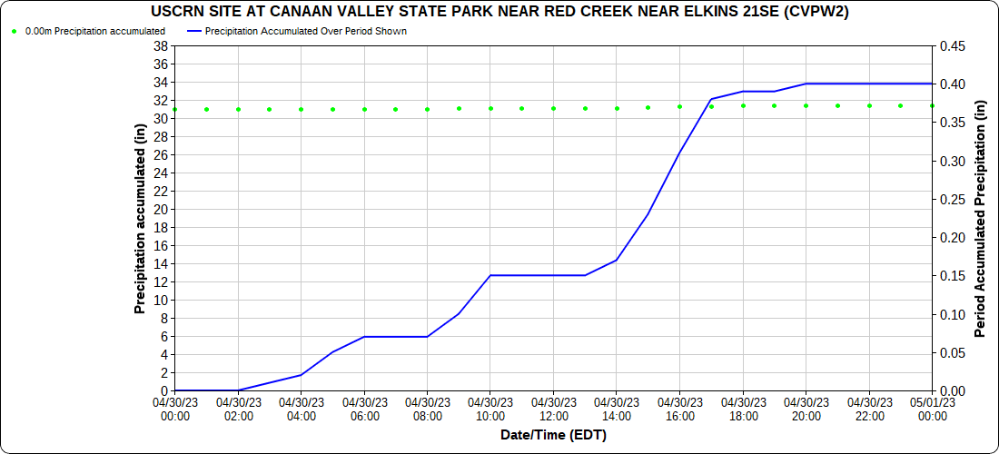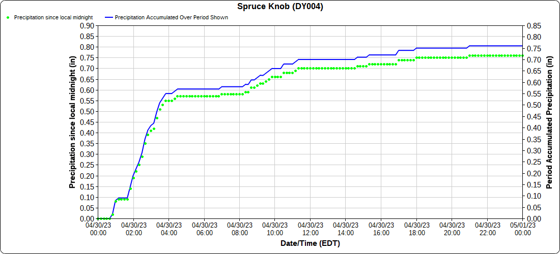 Dy007-Canaan Valley Refuge 3150′, Dy002-Cabin Mt at Bald Knob 4350′, Dy003-Cabin Mt-Western Sods 4035′, Dy004-Spruce Knob 4820′, Cvpw2-Climate Reference Network Canaan 3380′, KW99-Petersburg Grant County Airport 961, K2G4 Garrett County Airport 2933′, KCBE Cumberland Airport 774′, KEKN Elkins Airport 1985′, KMGW Morgantown Airport 1227′, PMN16-Mt.Davis 3038′, KDCA-Reagan National 15′, G1472 Snowshoe 4500′, F0183 Burkes Garden 3050′