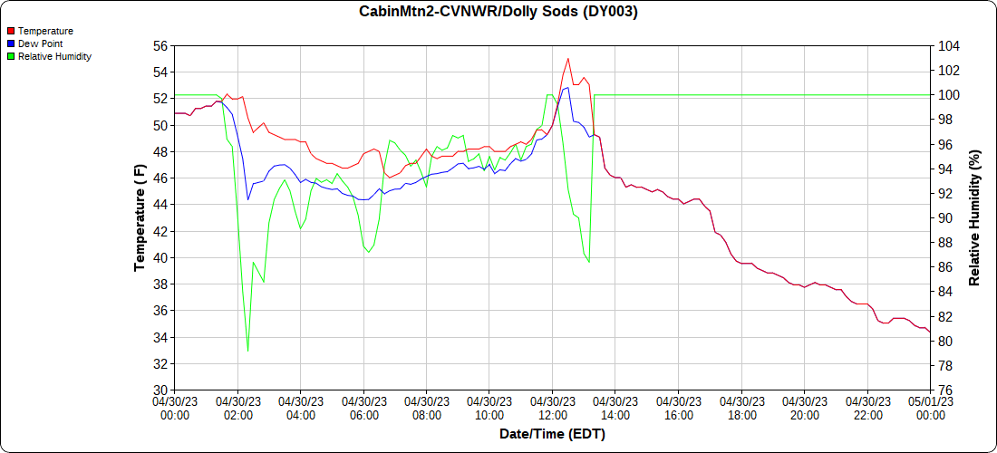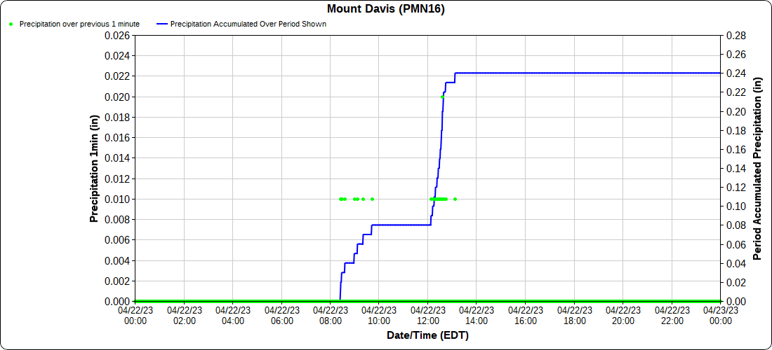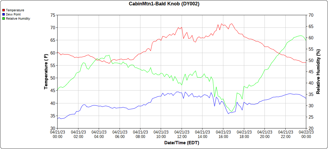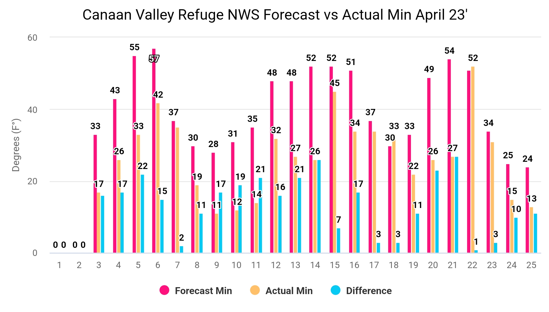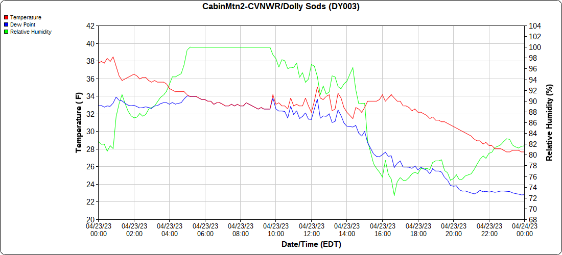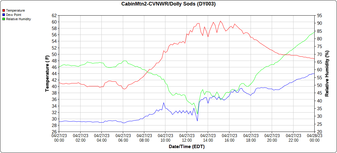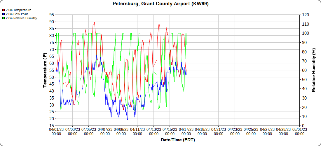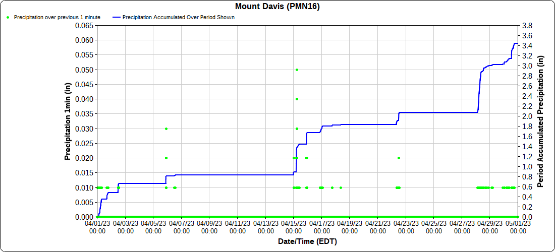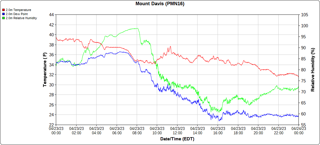 Dy007-Canaan Valley Refuge 3150′, Dy002-Cabin Mt at Bald Knob 4350′, Dy003-Cabin Mt-Western Sods 4035′, Dy004-Spruce Knob 4820′, Cvpw2-Climate Reference Network Canaan 3380′, KW99-Petersburg Grant County Airport 961, K2G4 Garrett County Airport 2933′, KCBE Cumberland Airport 774′, KEKN Elkins Airport 1985′, KMGW Morgantown Airport 1227′, PMN16-Mt.Davis 3038′, KDCA-Reagan National 15′, G1472 Snowshoe 4500′, F0183 Burkes Garden 3050′