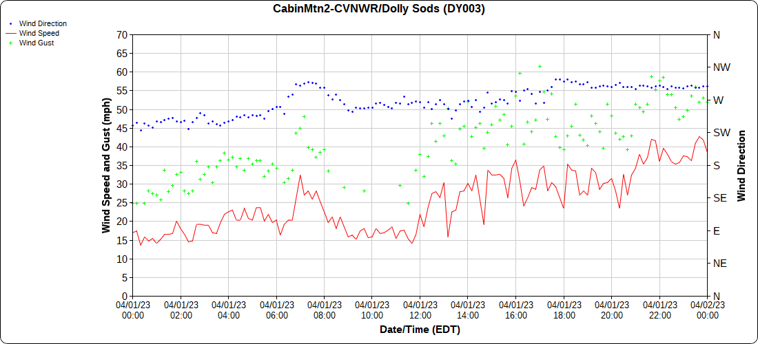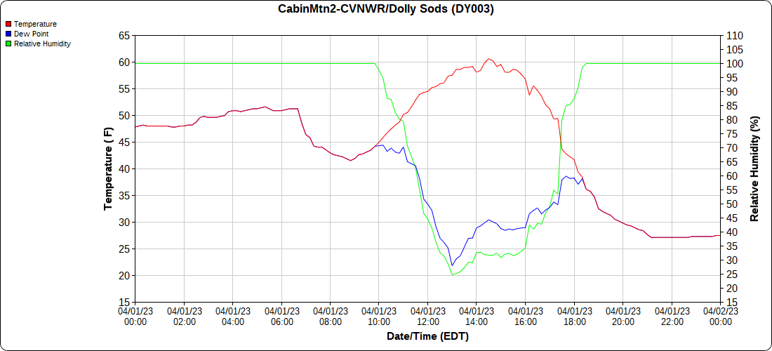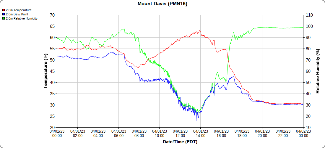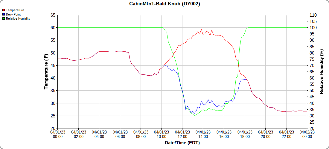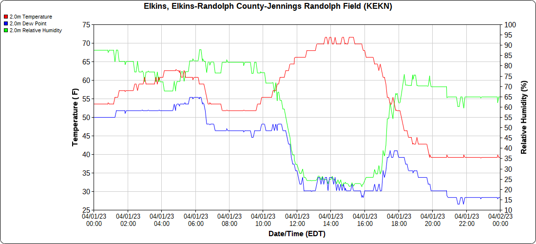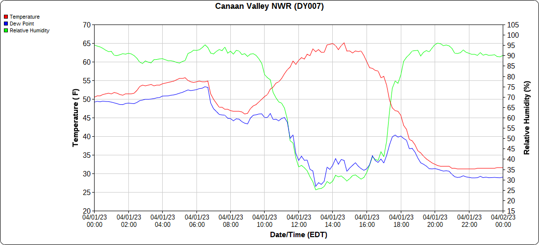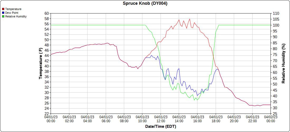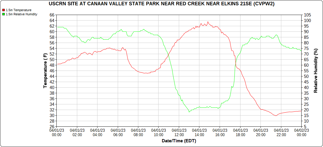 Dy007-Canaan Valley Refuge 3150′, Dy002-Cabin Mt at Bald Knob 4350′, Dy003-Cabin Mt-Western Sods 4035′, Dy004-Spruce Knob 4820′, Cvpw2-Climate Reference Network Canaan 3380′, KW99-Petersburg Grant County Airport 961, K2G4 Garrett County Airport 2933′, KCBE Cumberland Airport 774′, KEKN Elkins Airport 1985′, KMGW Morgantown Airport 1227′, PMN16-Mt.Davis 3038′, KDCA-Reagan National 15′, G1472 Snowshoe 4500′, F0183 Burkes Garden 3050′
