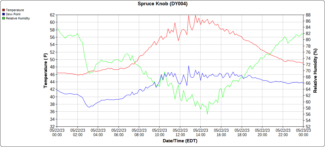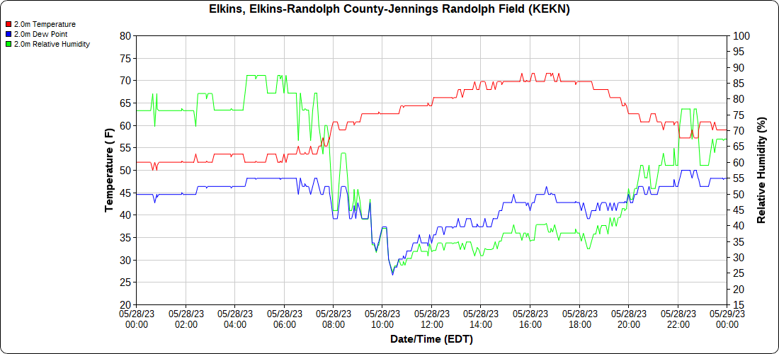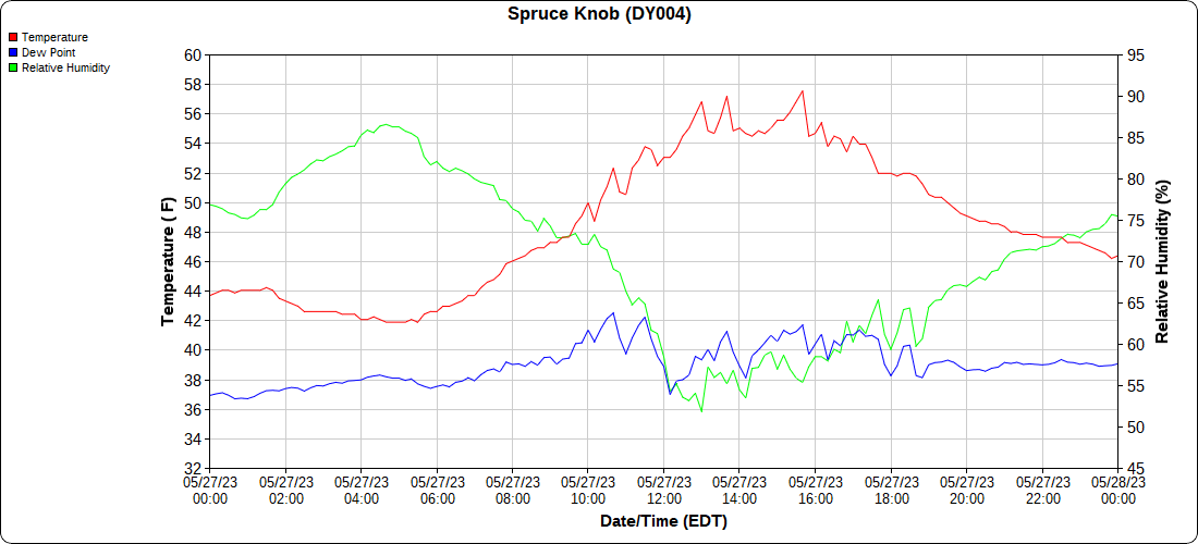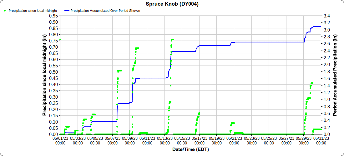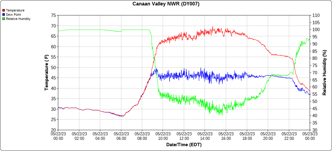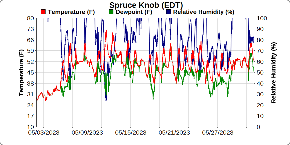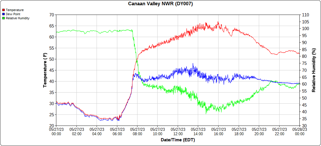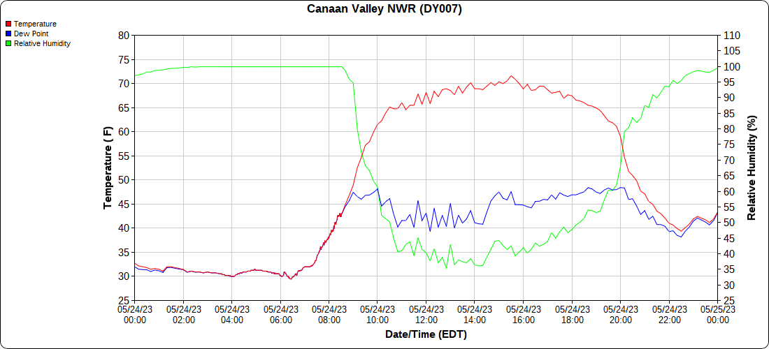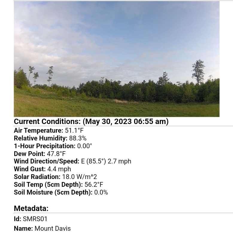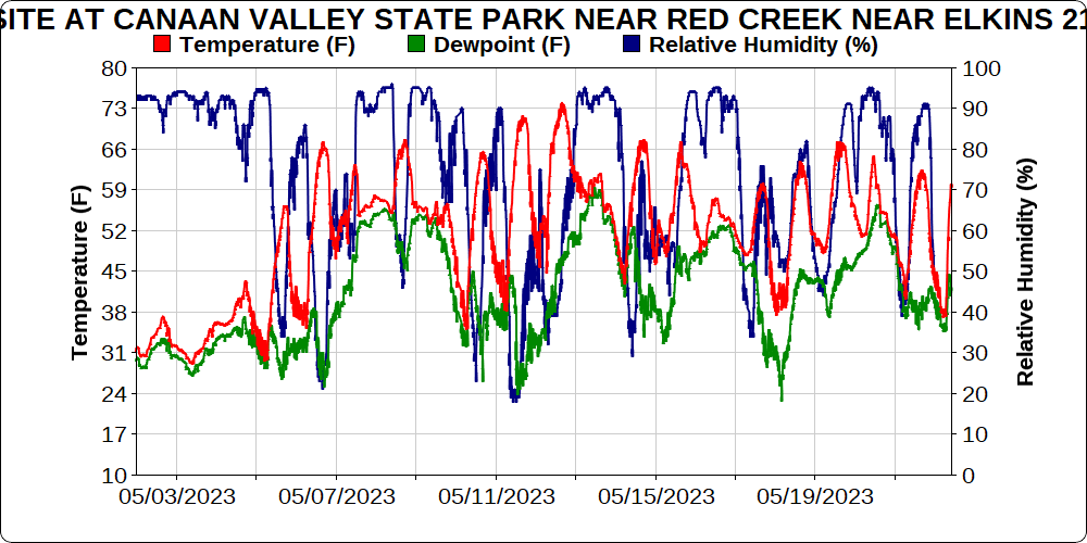 Dy007-Canaan Valley Refuge 3150′, Dy002-Cabin Mt at Bald Knob 4350′, Dy003-Cabin Mt-Western Sods 4035′, Dy004-Spruce Knob 4820′, Cvpw2-Climate Reference Network Canaan 3380′, KW99-Petersburg Grant County Airport 961, K2G4 Garrett County Airport 2933′, KCBE Cumberland Airport 774′, KEKN Elkins Airport 1985′, KMGW Morgantown Airport 1227′, PMN16-Mt.Davis 3038′, KDCA-Reagan National 15′, G1472 Snowshoe 4500′, F0183 Burkes Garden 3050′